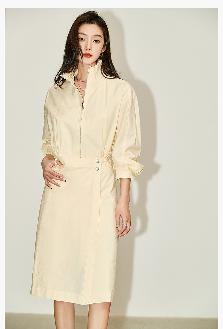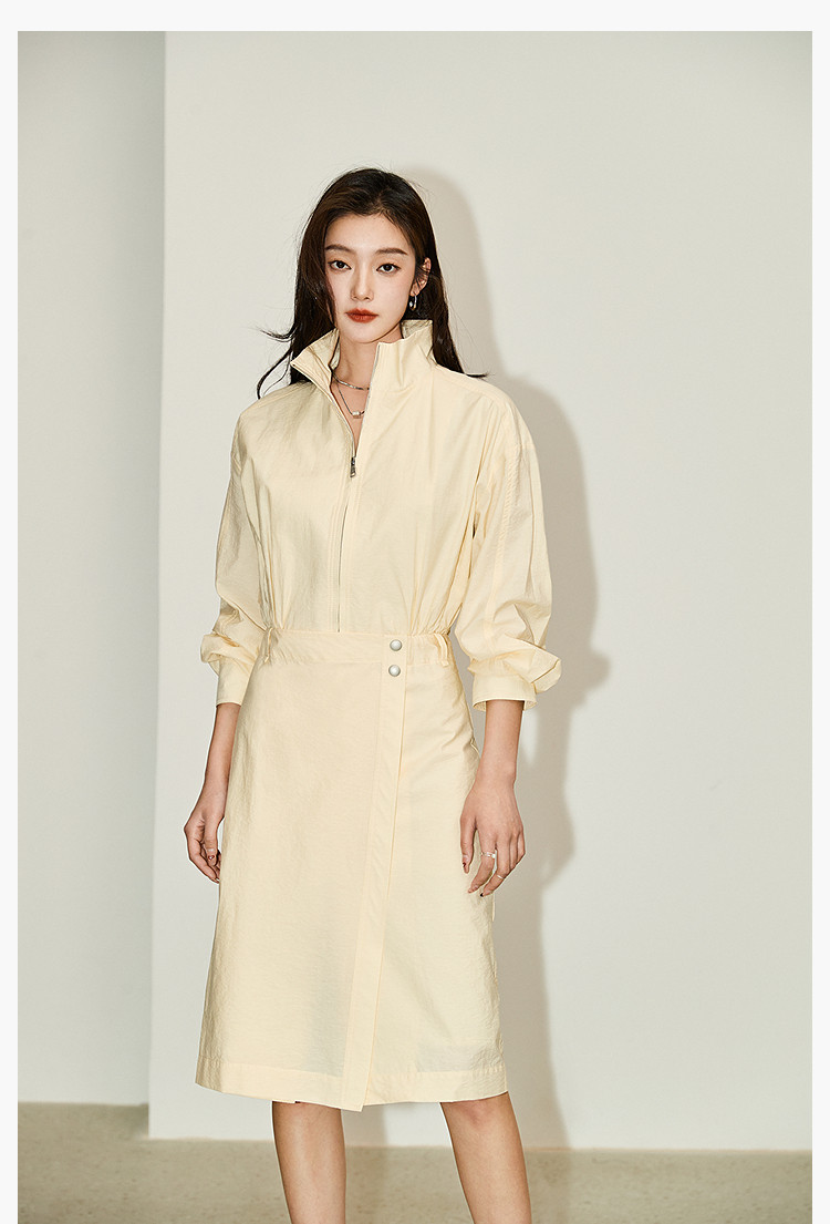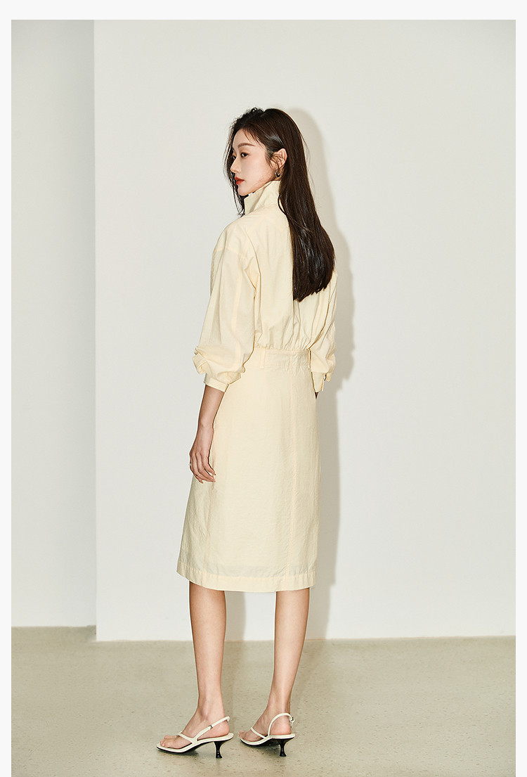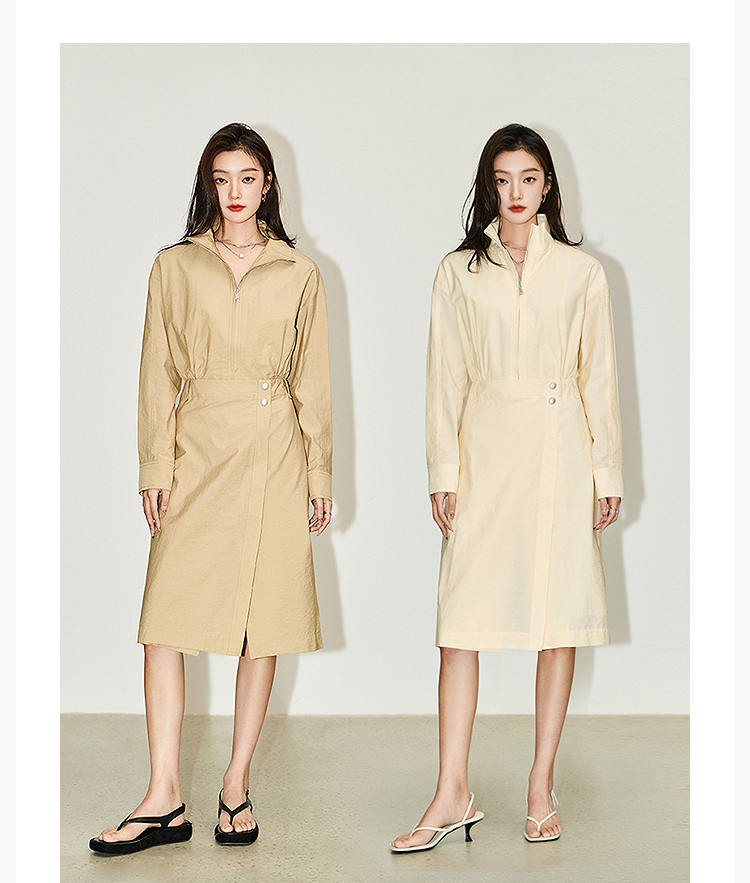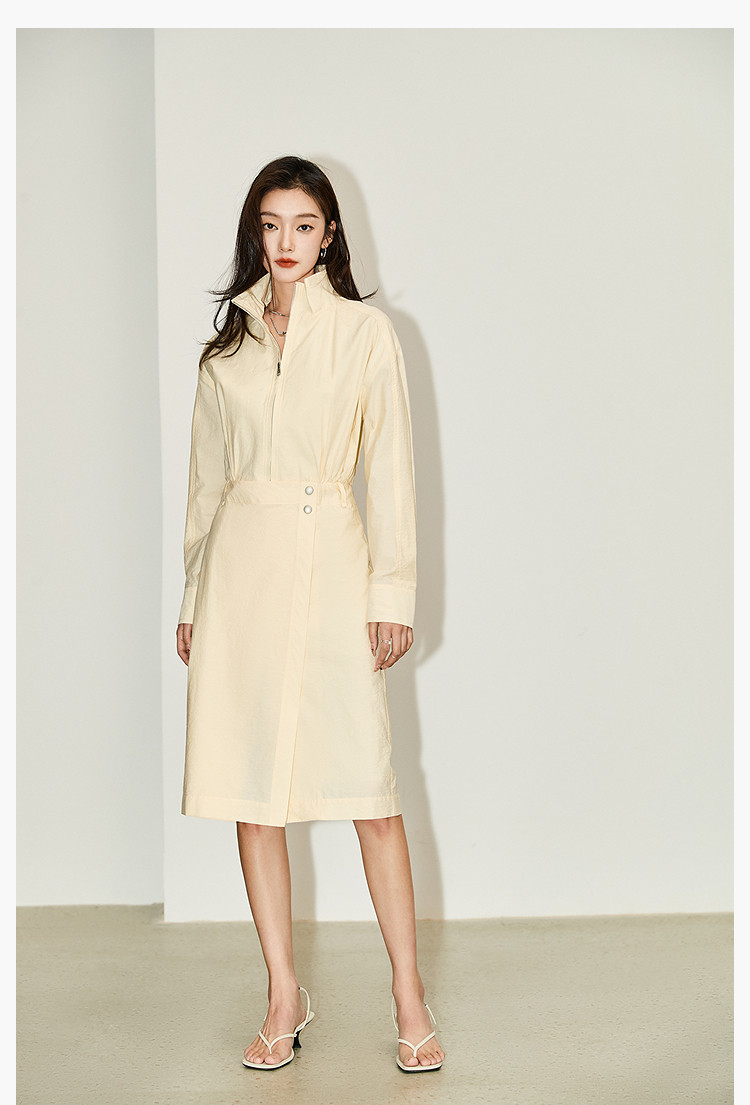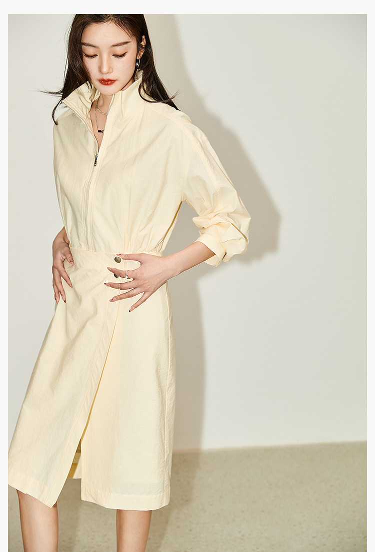 时尚都市通勤款纯色显瘦长款高腰风衣式连衣裙 156827