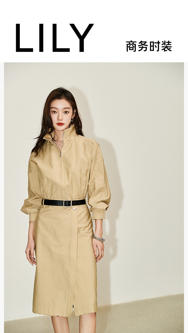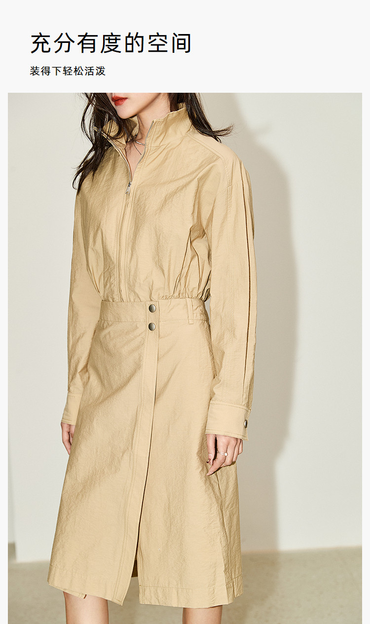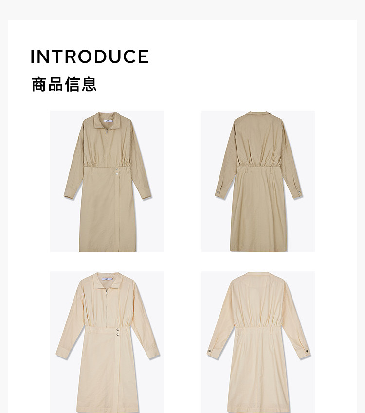 商品名称:时尚都市通勤款纯色显瘦长款高腰风衣式连衣裙 156827