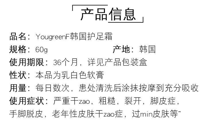 商品名称:韩国护足霜 脚裂膏YouGreenF 60G 网红膏