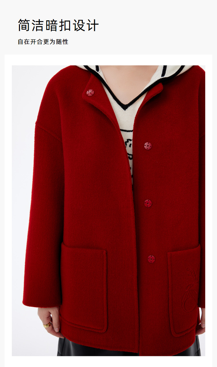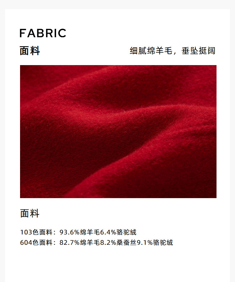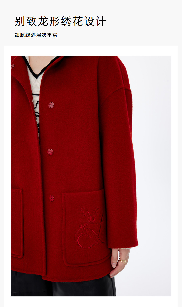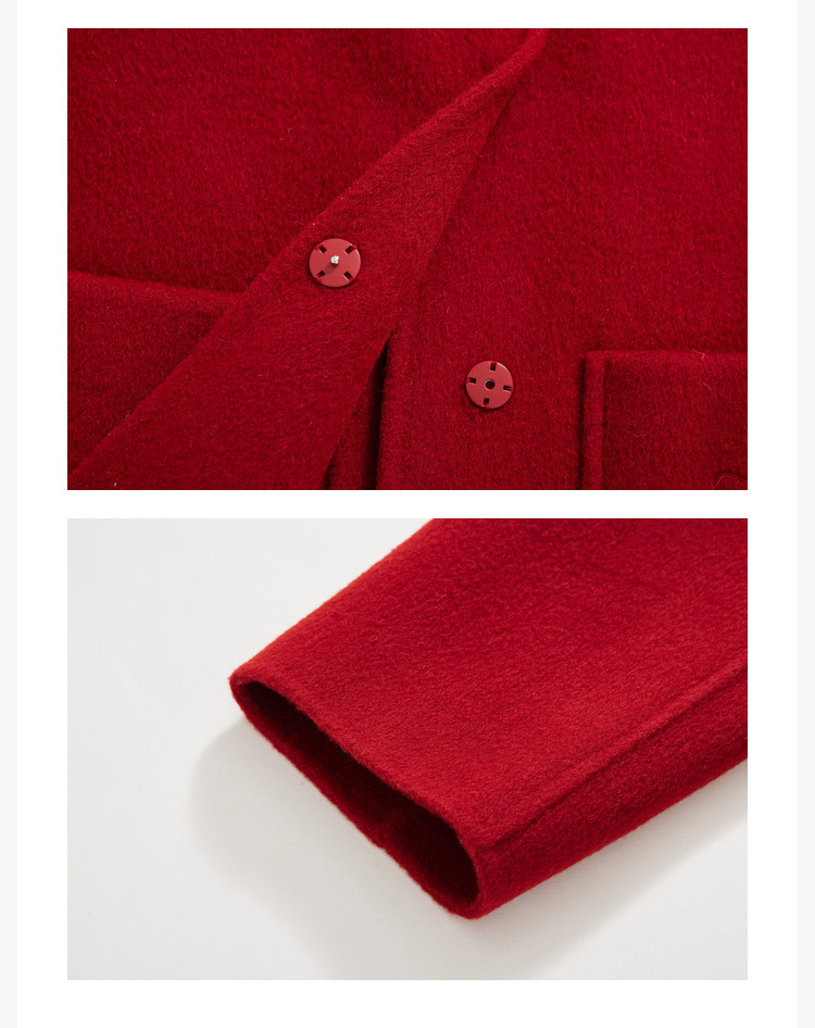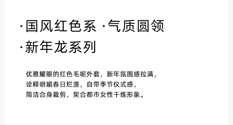 商品名称:冬季氛围感新年红色大衣女含绵羊毛优雅气质中长款毛呢大衣外套女 368603