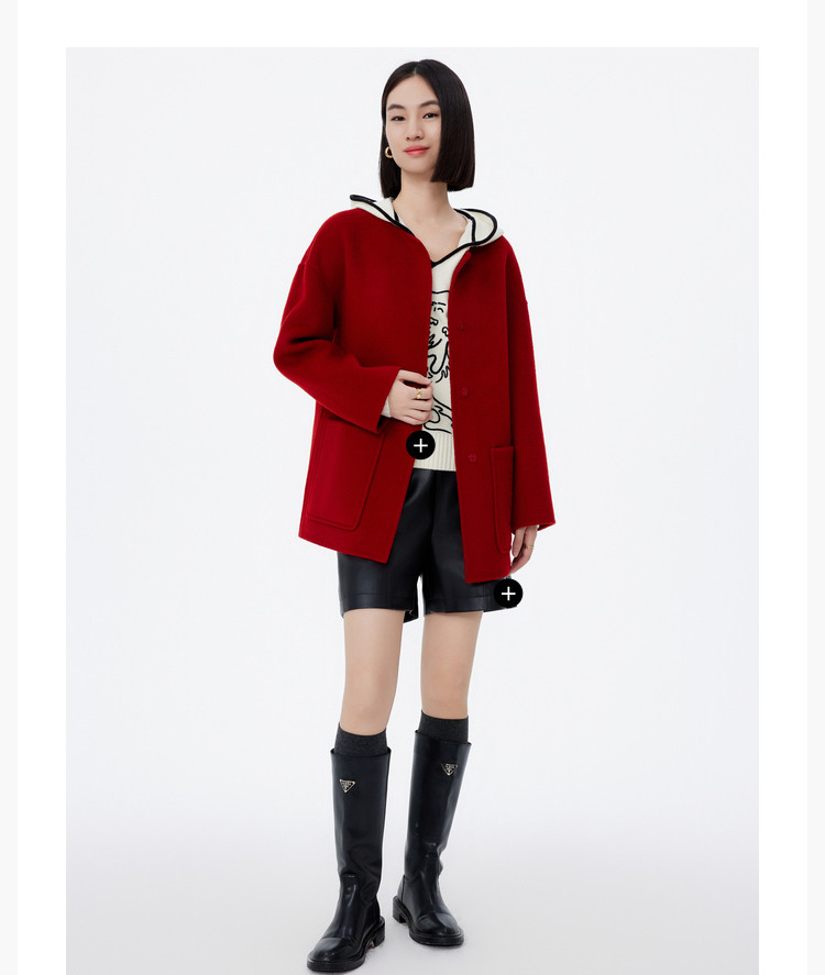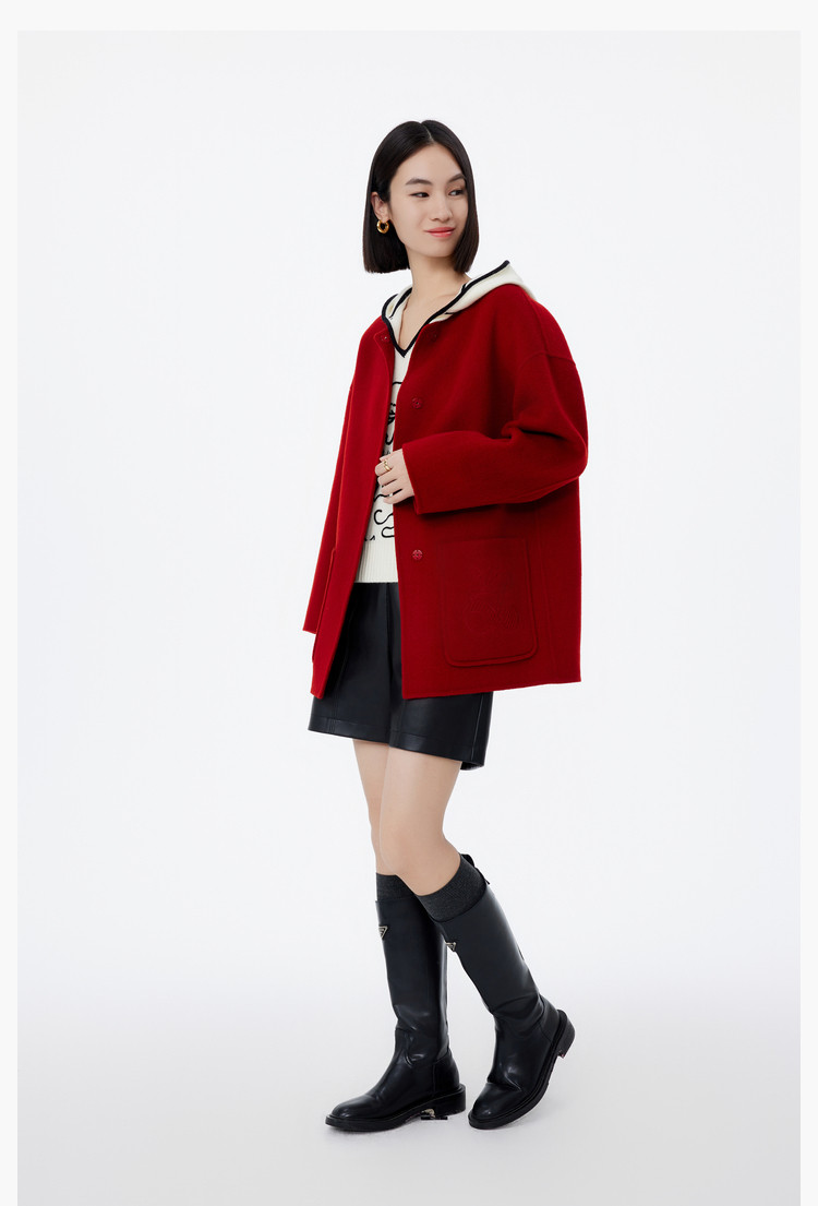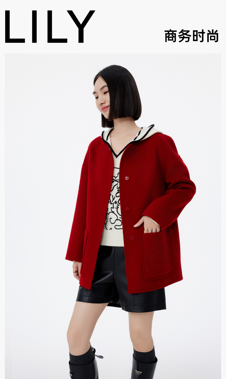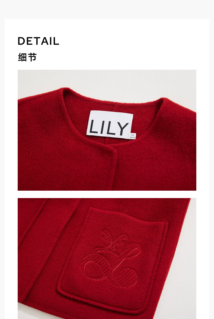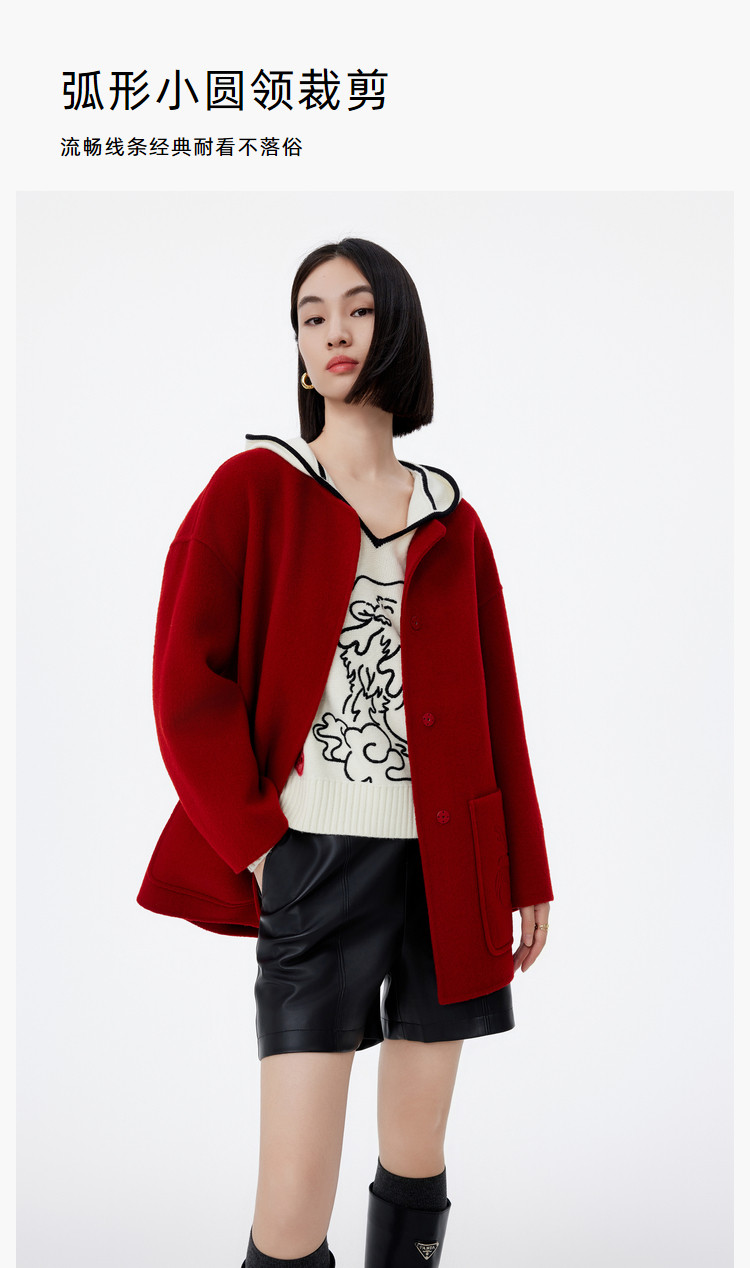 商品名称:冬季氛围感新年红色大衣女含绵羊毛优雅气质中长款毛呢大衣外套女 368603