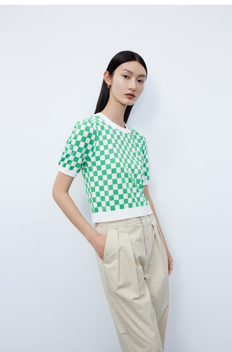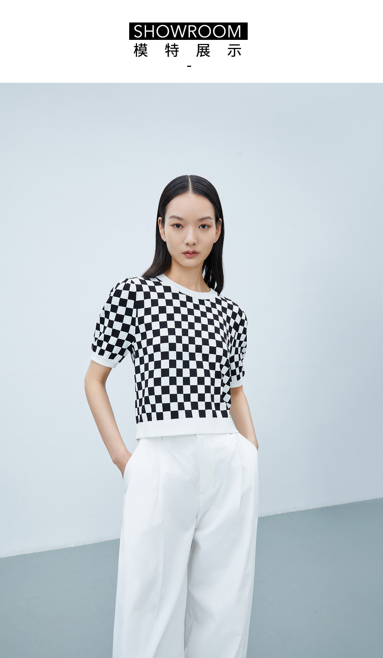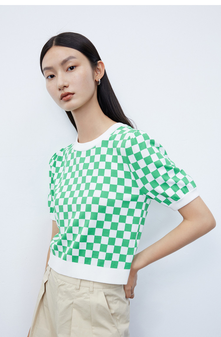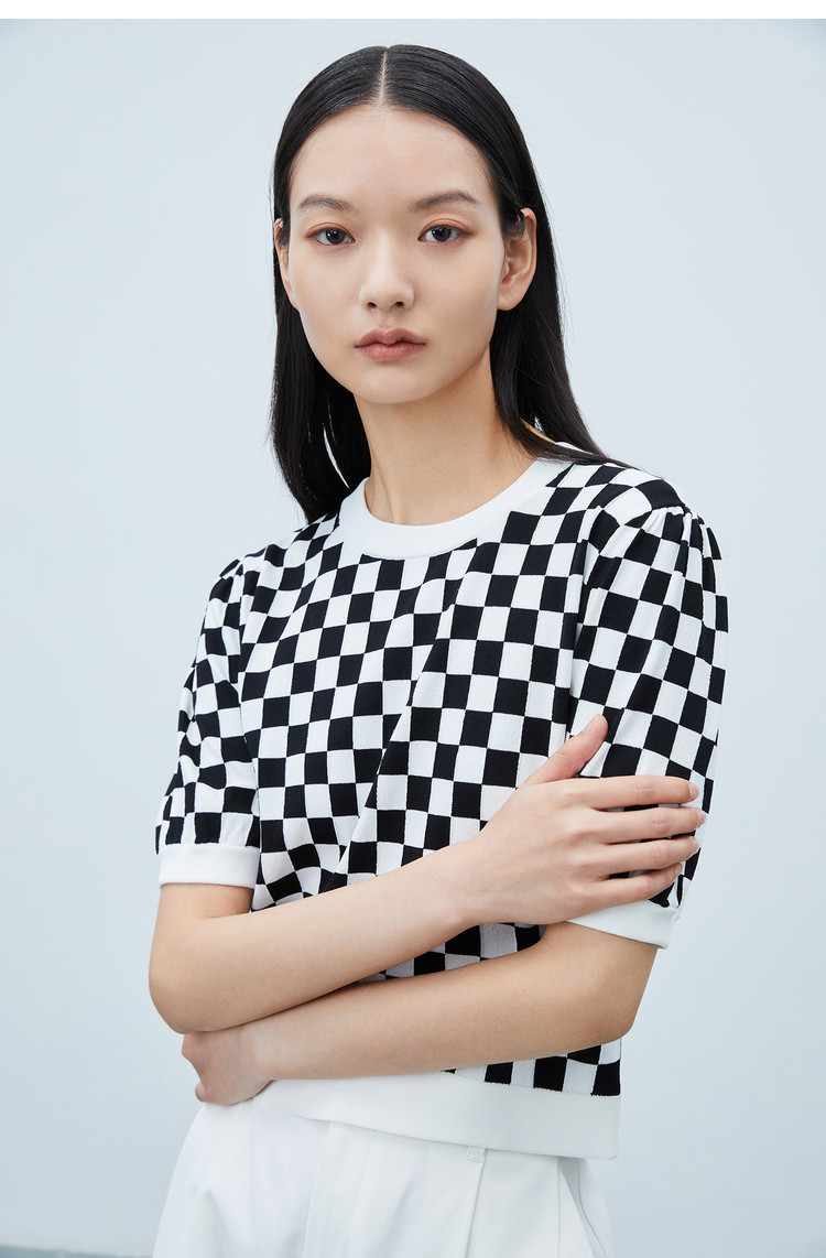 商品名称:【商场同款】春季款复古棋盘格纹短袖毛针织衫小上衣 892891