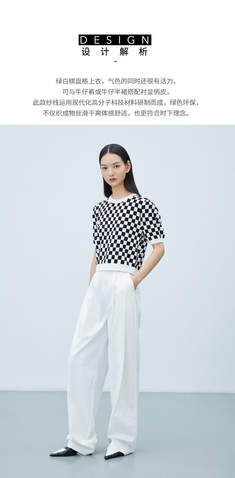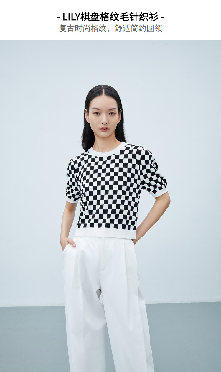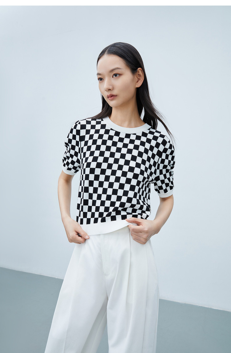 商品名称:【商场同款】春季款复古棋盘格纹短袖毛针织衫小上衣 892891