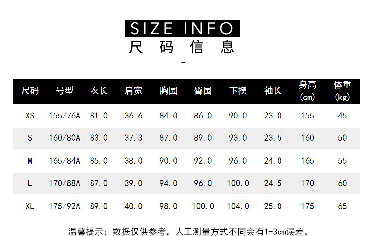 | 尺码 | 裙长(cm) | 肩宽(cm) | 臀围(cm) | 袖长(cm) | 胸围(cm) | 下摆围(cm) | 号型 |