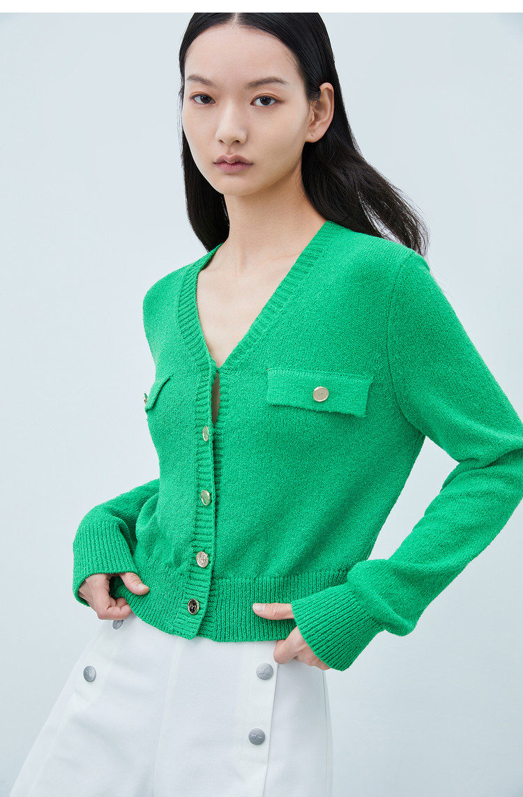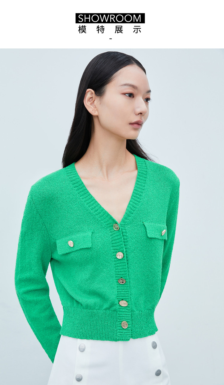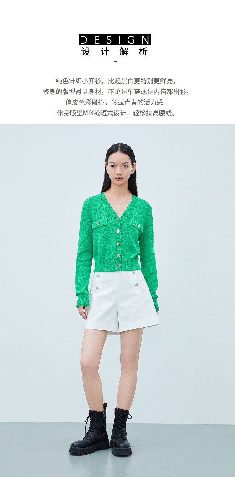 商品名称:薄荷曼波春季款时尚纯色通勤款修身短款毛针织衫 888795