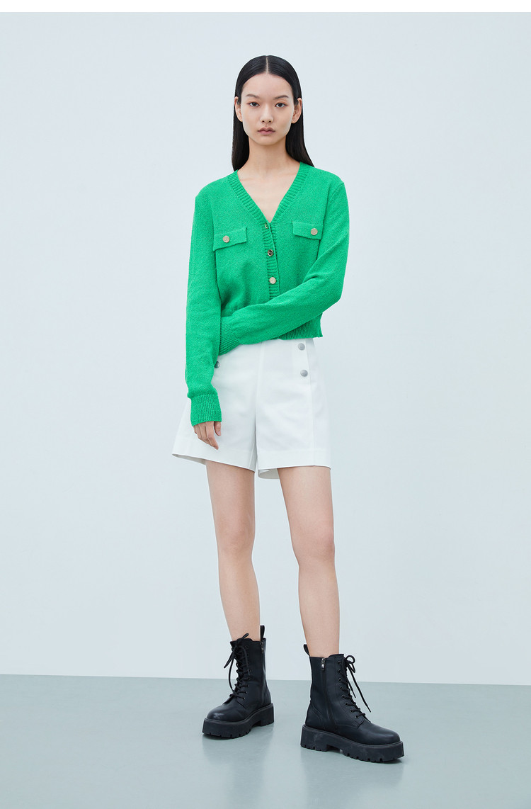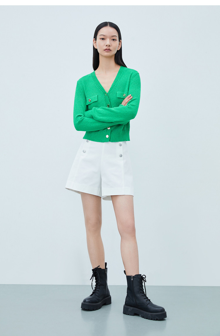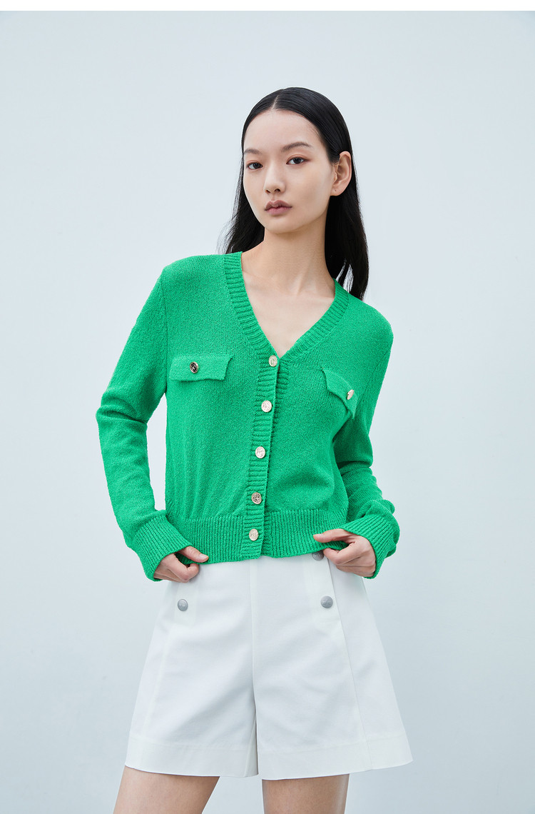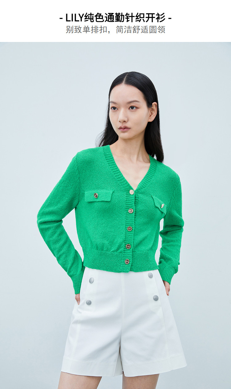 商品名称:薄荷曼波春季款时尚纯色通勤款修身短款毛针织衫 888795
