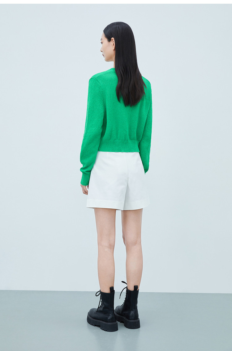薄荷曼波春季款时尚纯色通勤款修身短款毛针织衫 888795