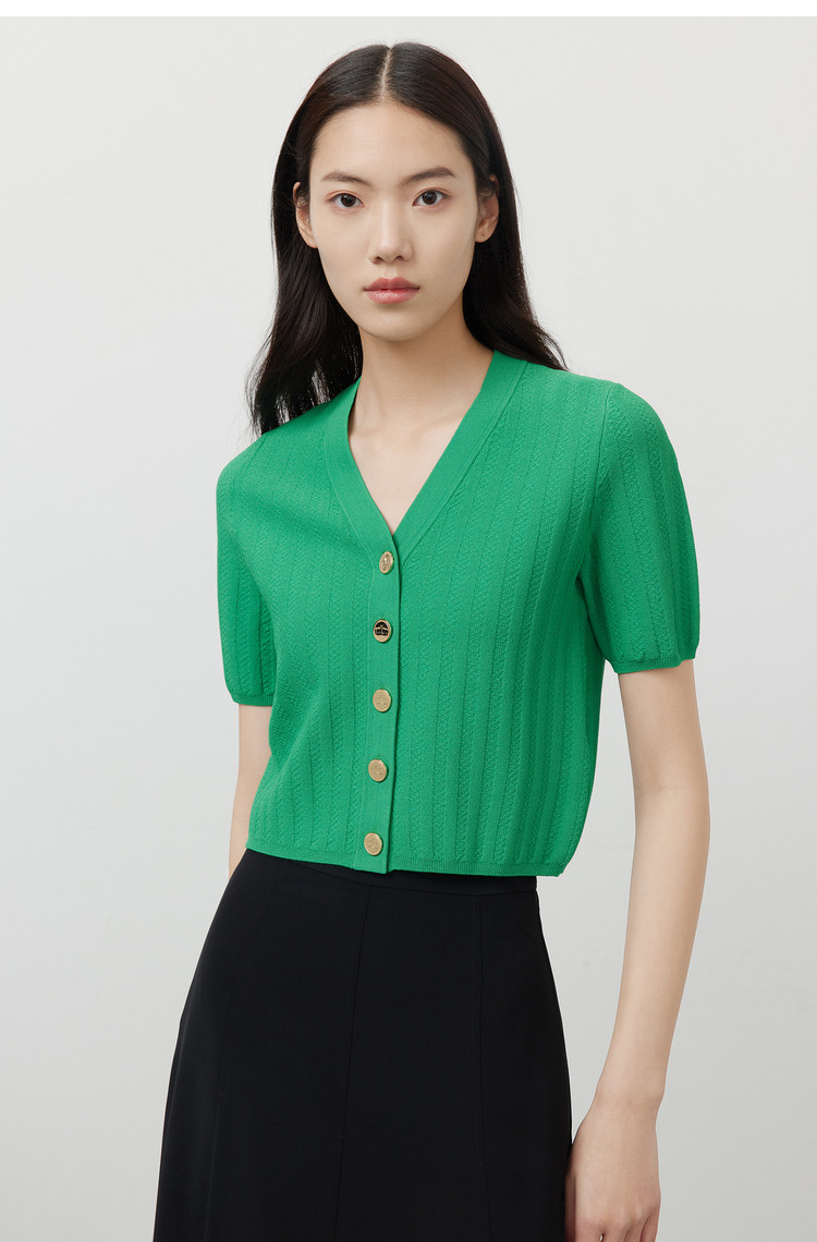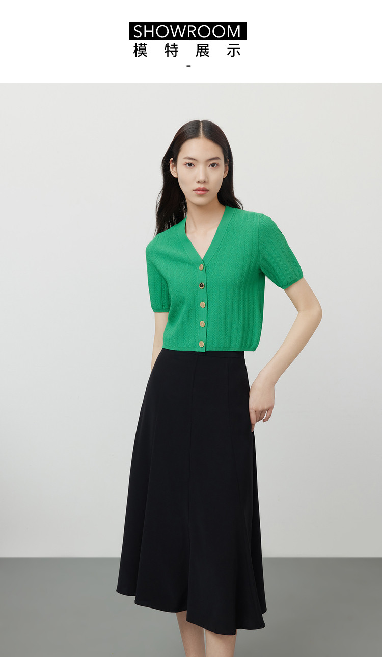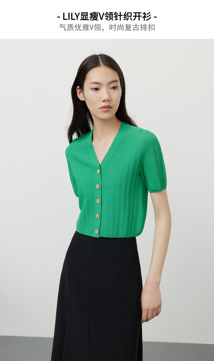 商品名称:【商场同款】【薄荷曼波】春季复古chic叠穿V领针织开衫女 661659