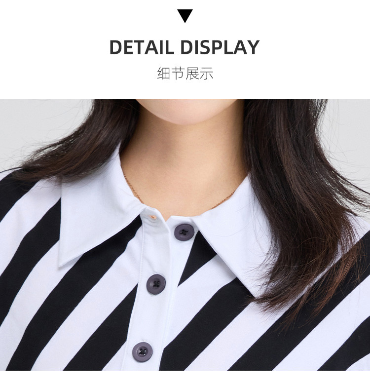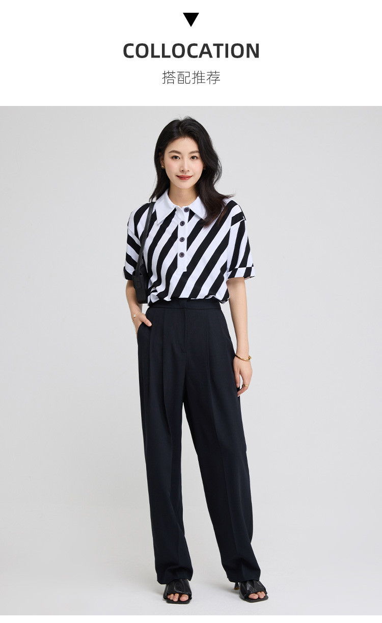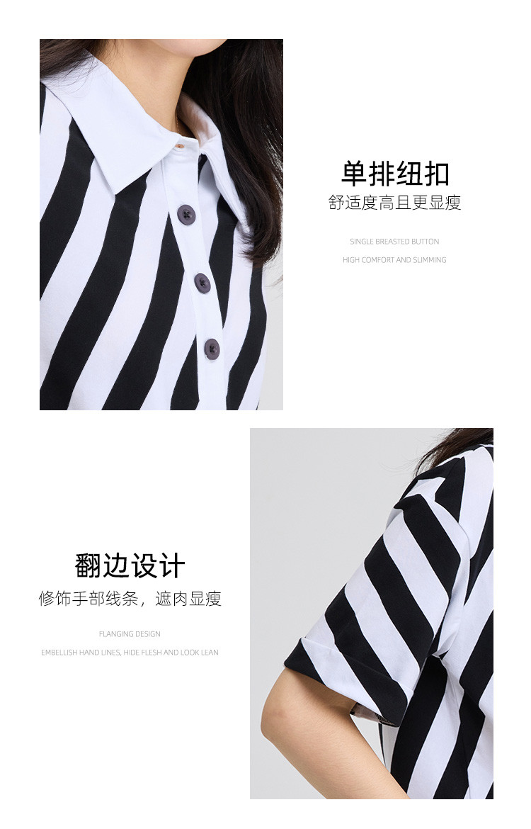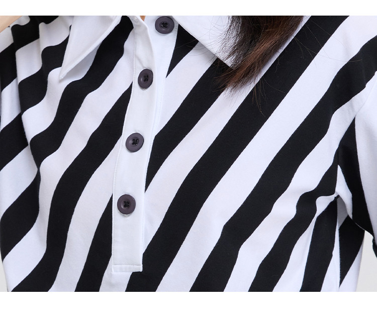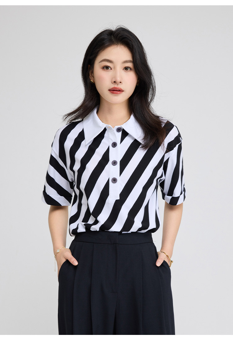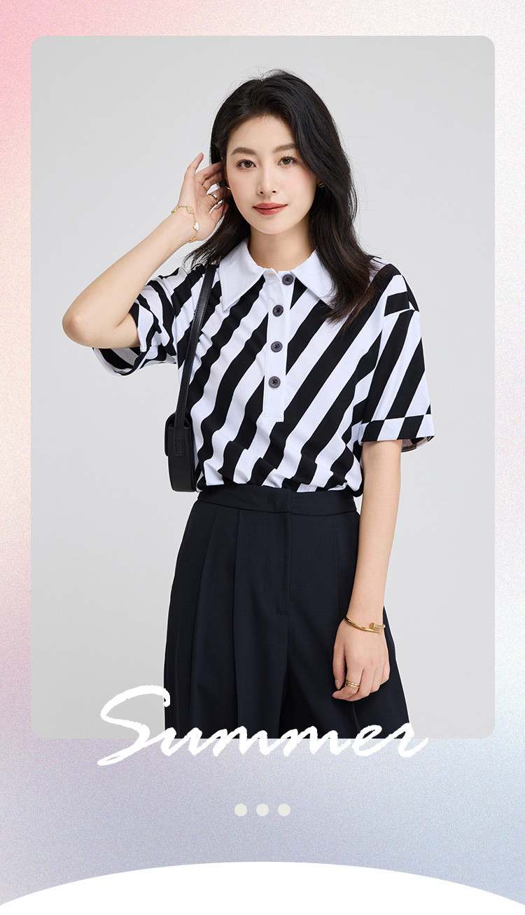 商品名称:黑白条纹短袖t恤女夏季polo衫宽松别致翻领上衣 911320