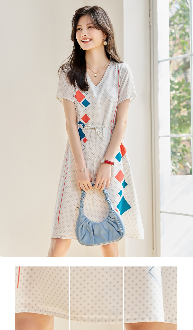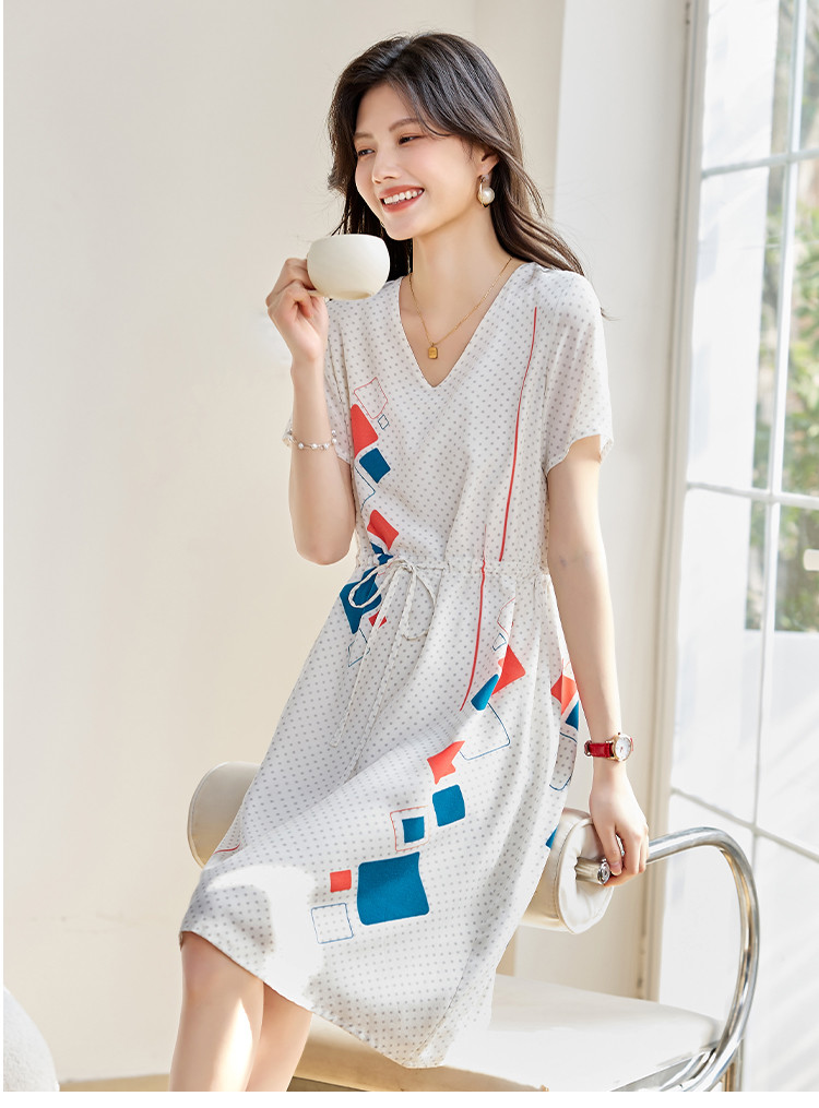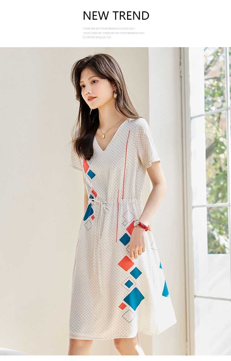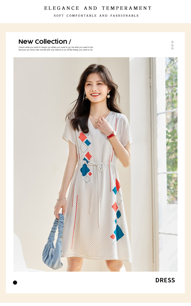 商品名称:2025春夏女装优雅时尚V领淑女气质桑蚕丝真丝连衣裙 696792