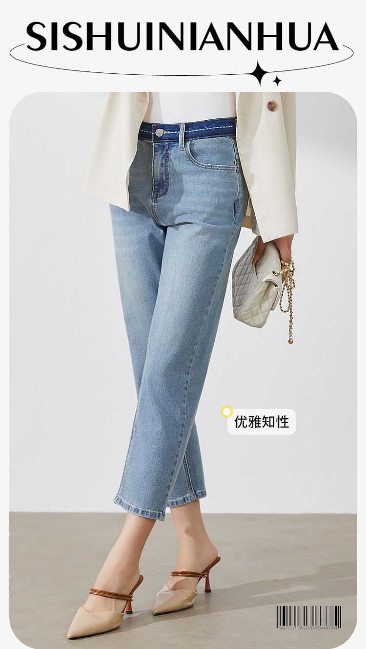 商品名称:【绣花八分裤】春日穿搭小个子时尚显瘦女式牛仔裤 963160