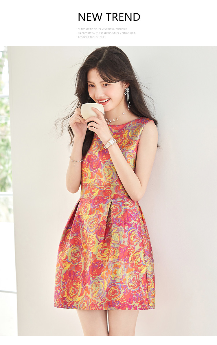 2025春装女装淑女风时尚名媛气质提花圆领修身连衣裙 973400