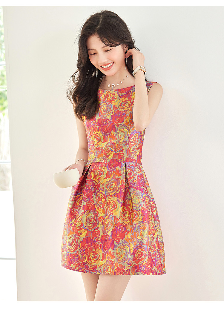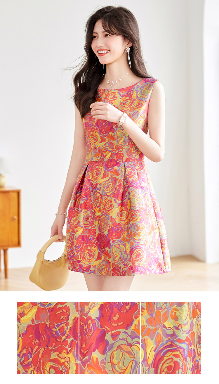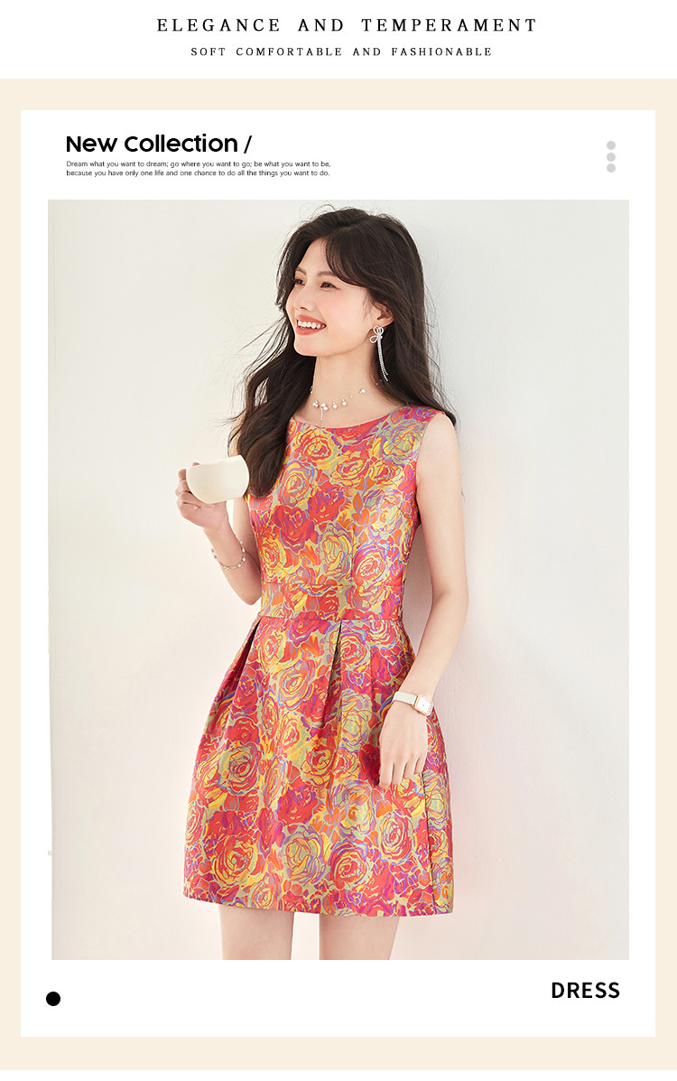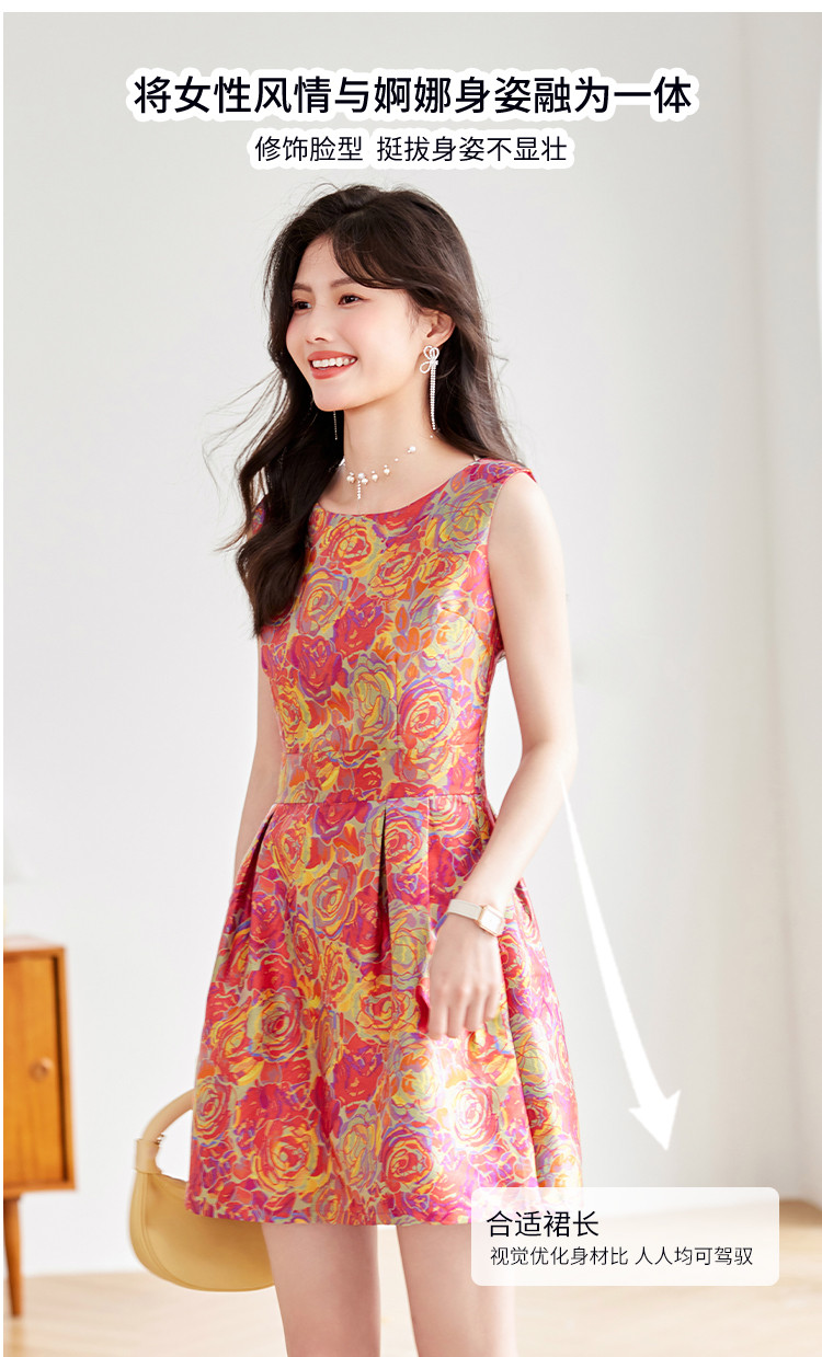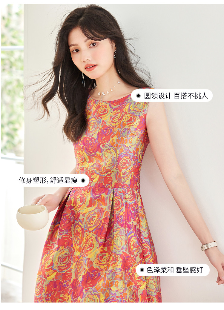 2025春夏女装真丝时尚优雅淑女桑蚕丝印花连衣裙 732056