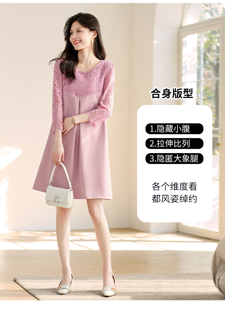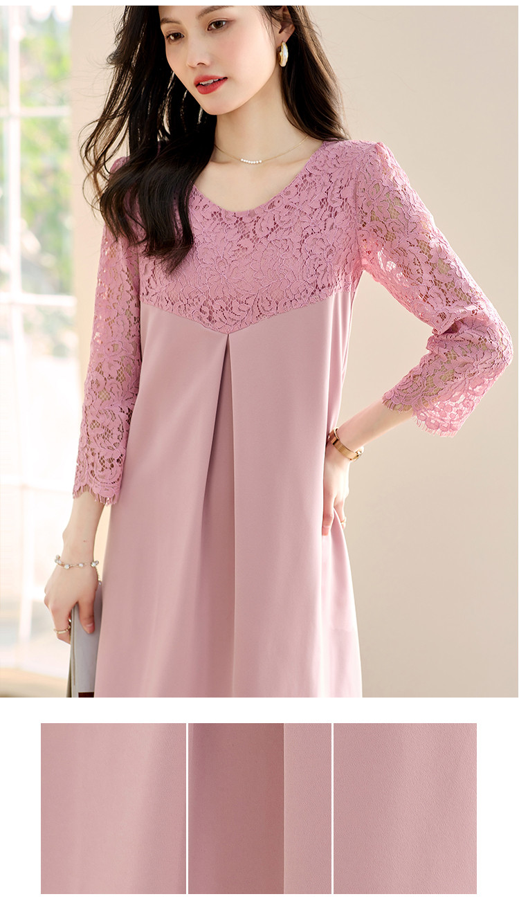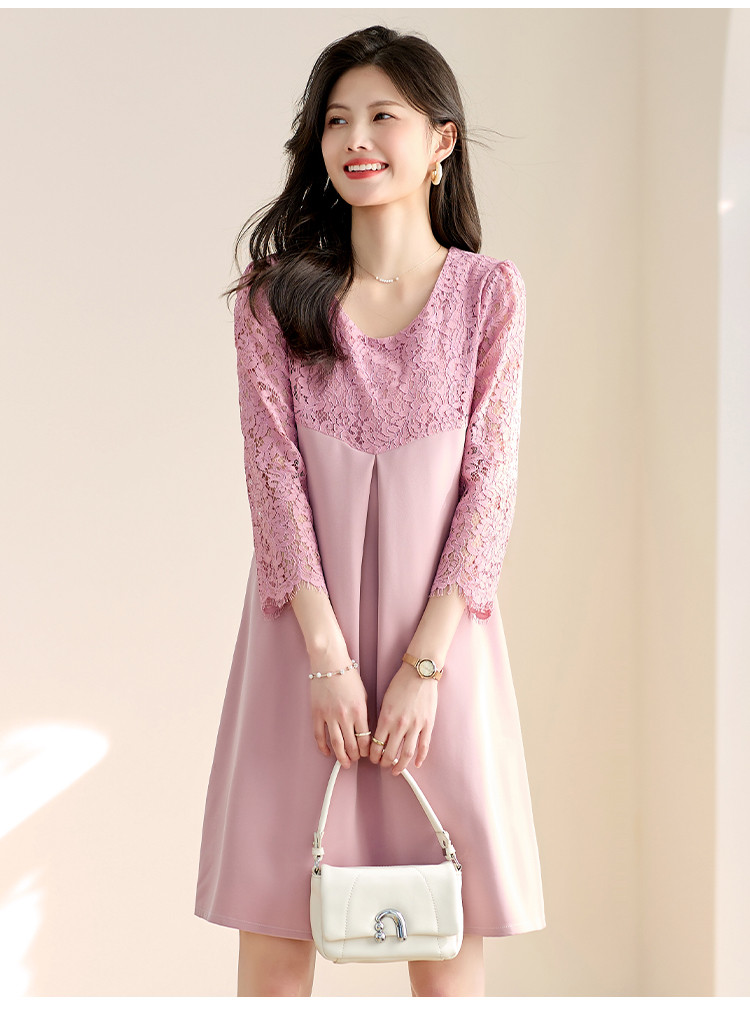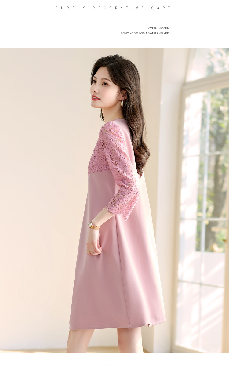 春装七分袖女装蕾丝拼接修身显瘦气质休闲连衣裙 458456