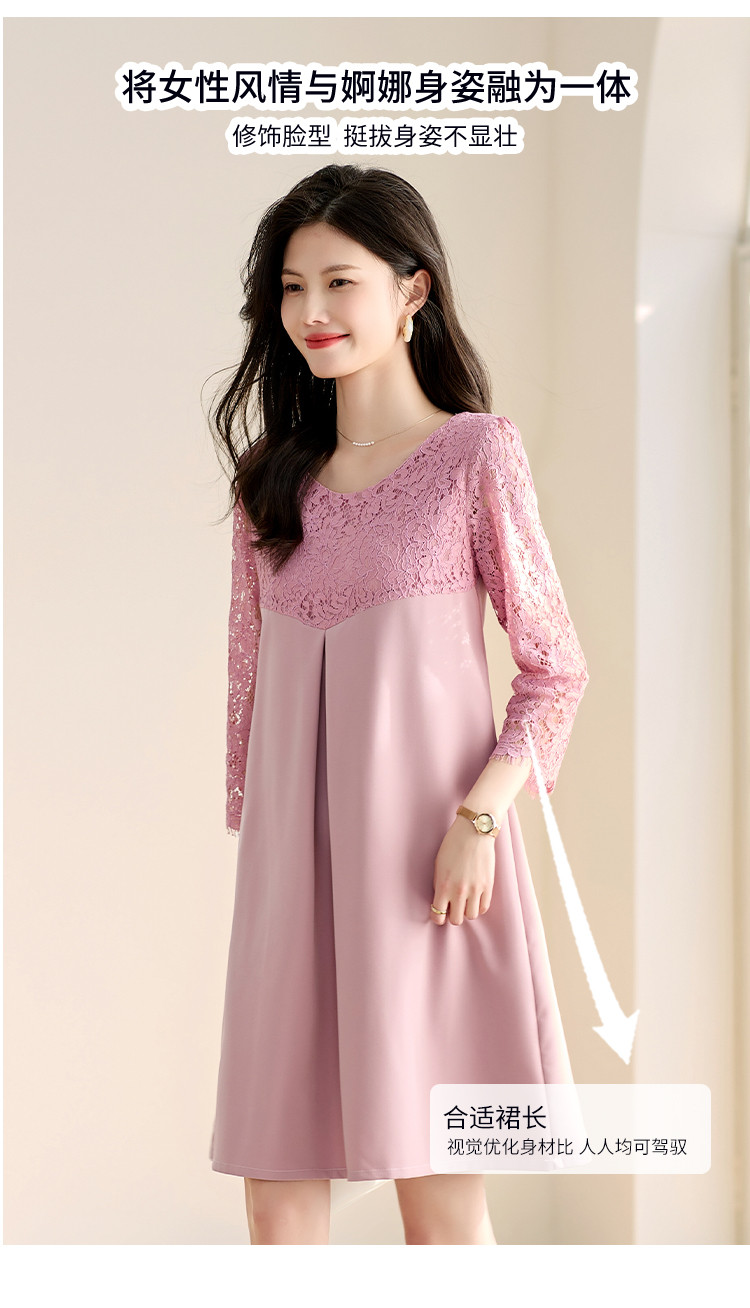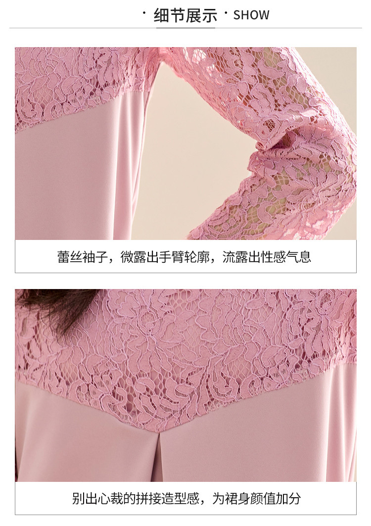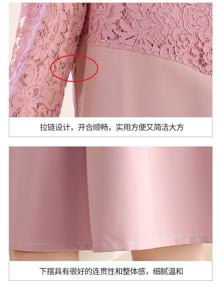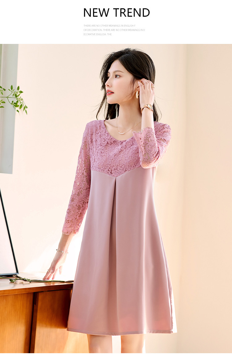 春装七分袖女装蕾丝拼接修身显瘦气质休闲连衣裙 458456