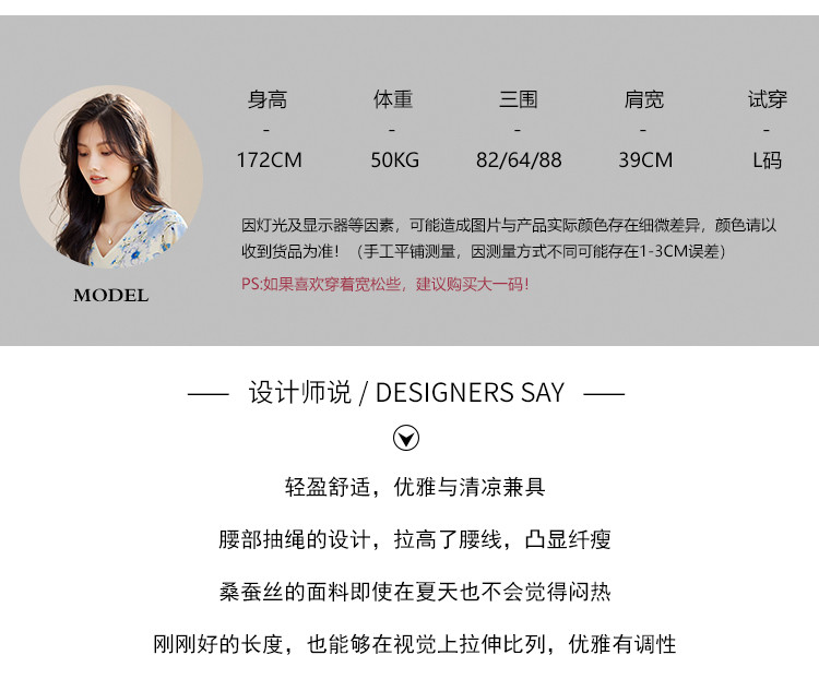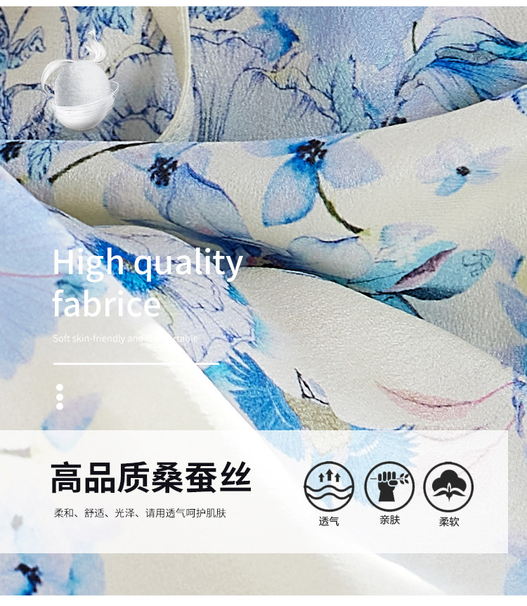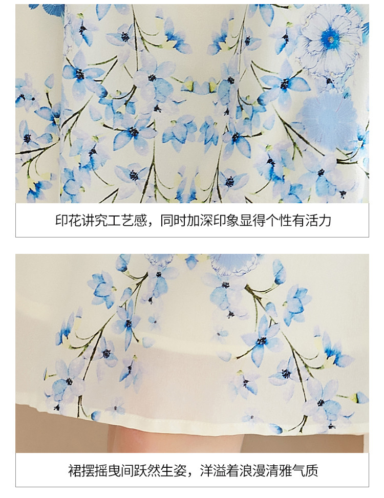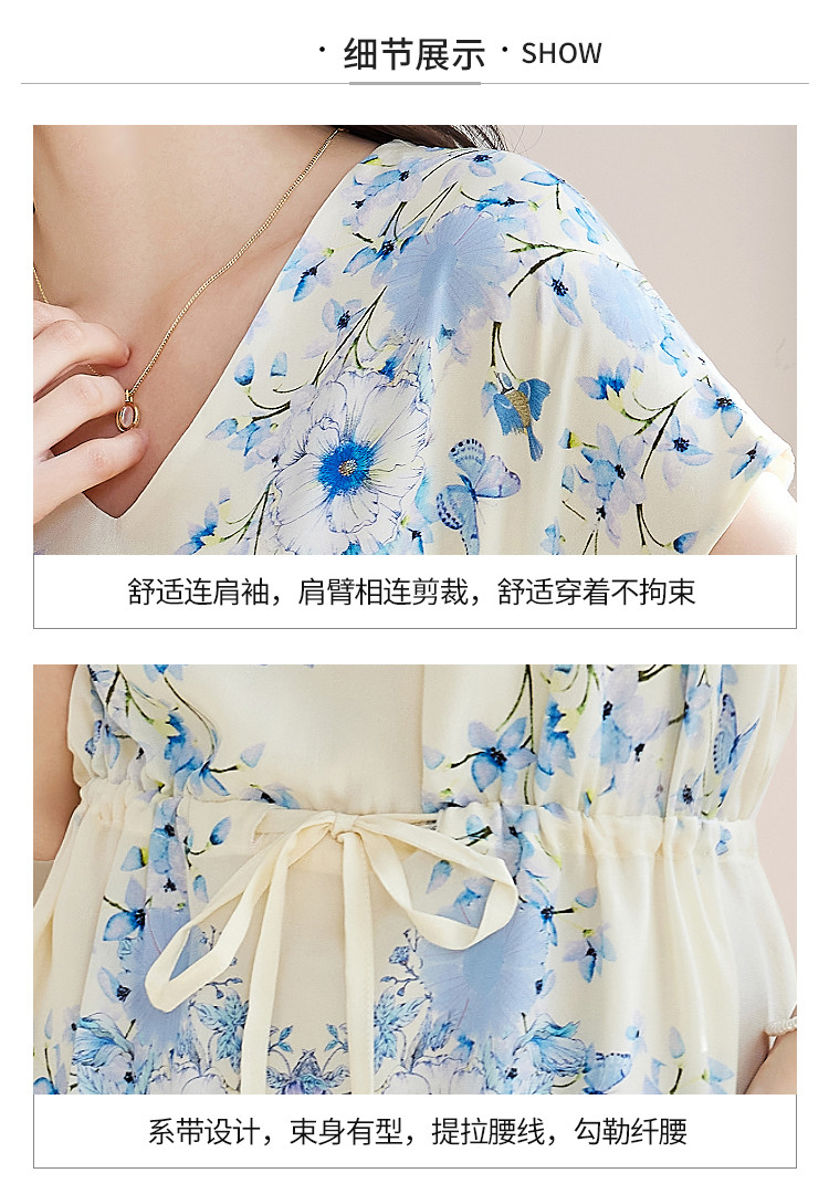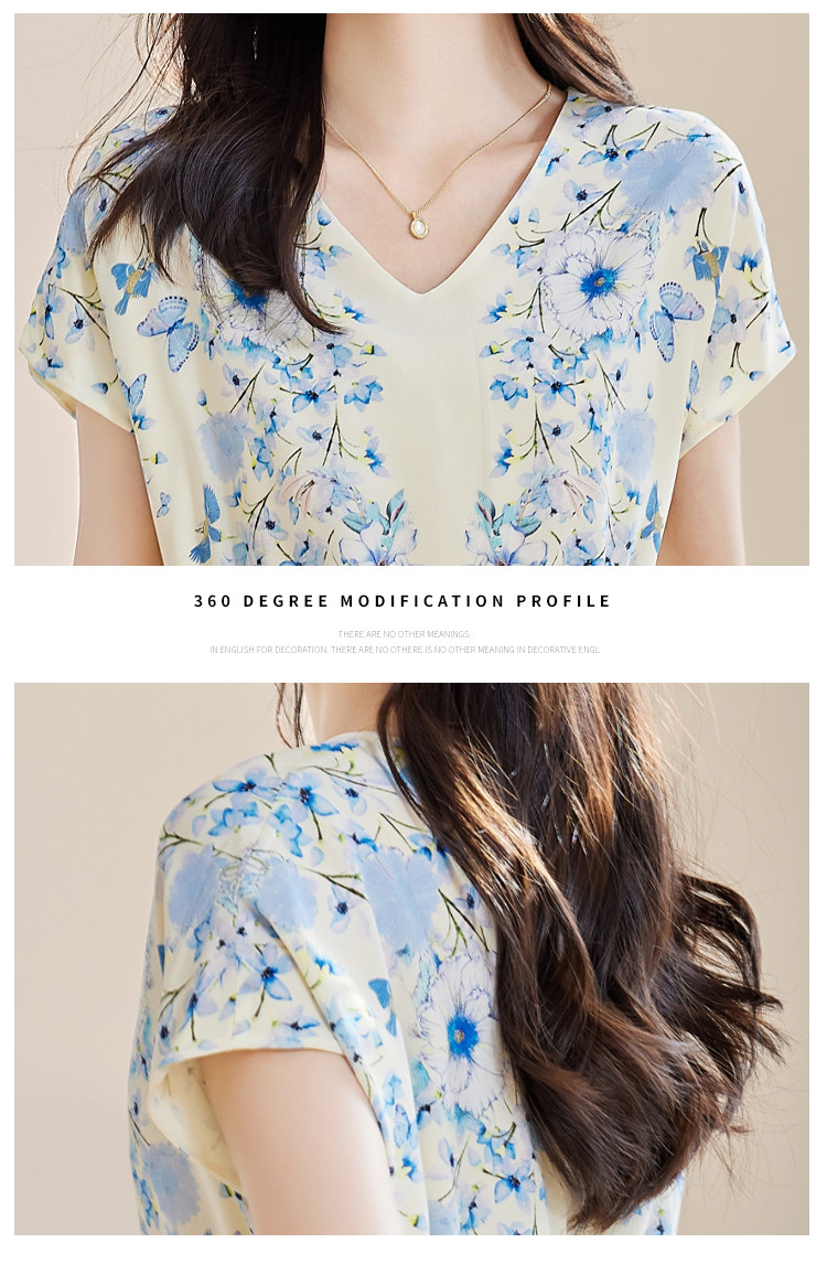 商品名称:2025春夏女装清新印花优雅时尚淑女V领真丝桑蚕丝连衣裙 533976