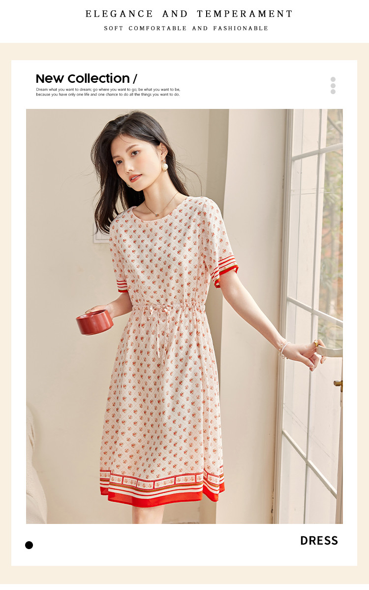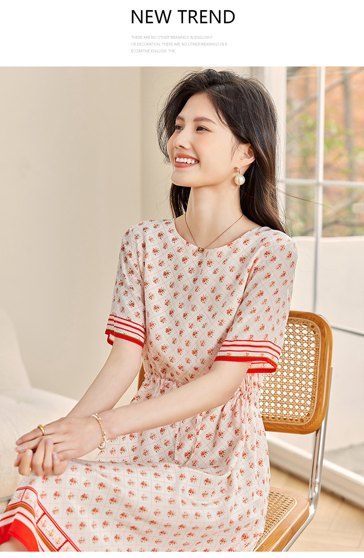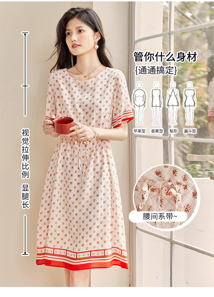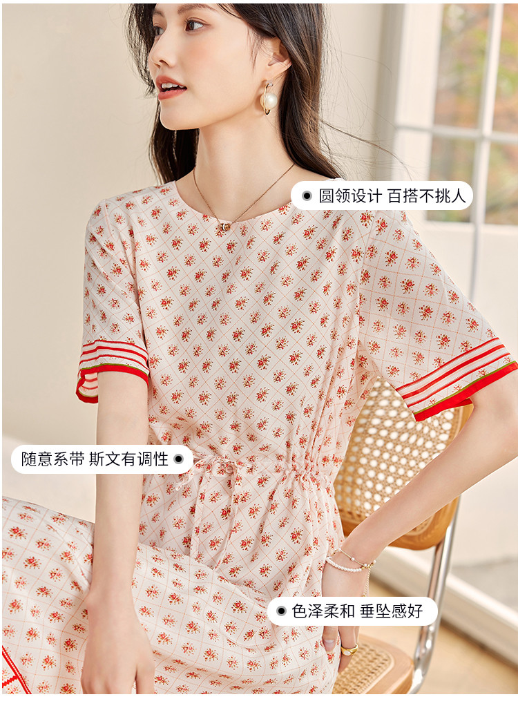 商品名称:2025春夏女装时尚浪漫印花淑女气质真丝圆领桑蚕丝连衣裙 086936