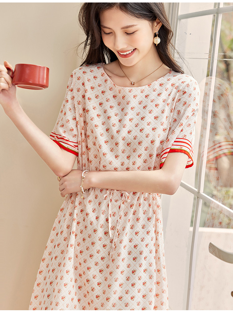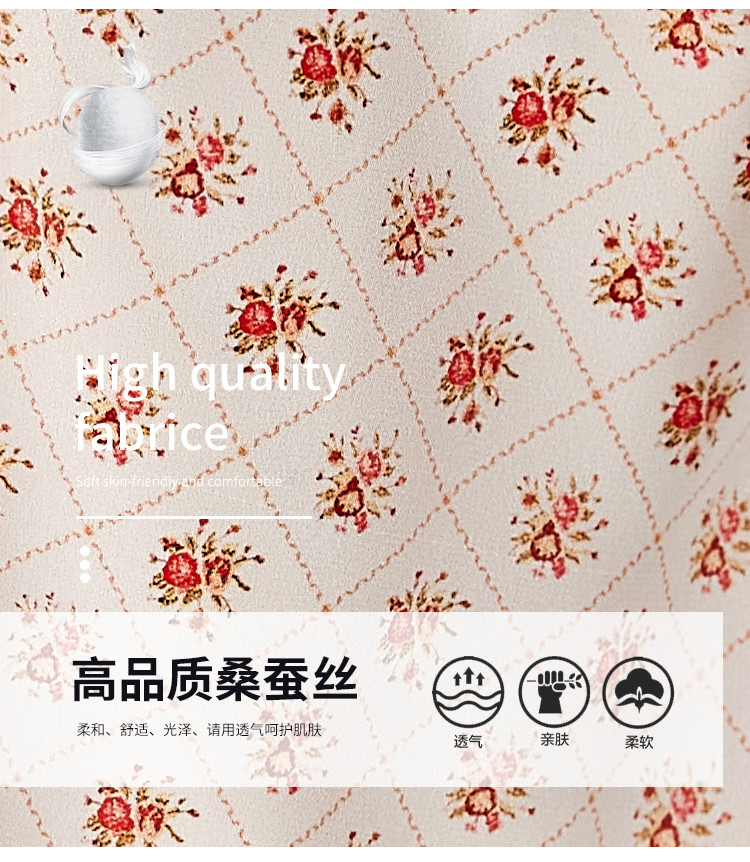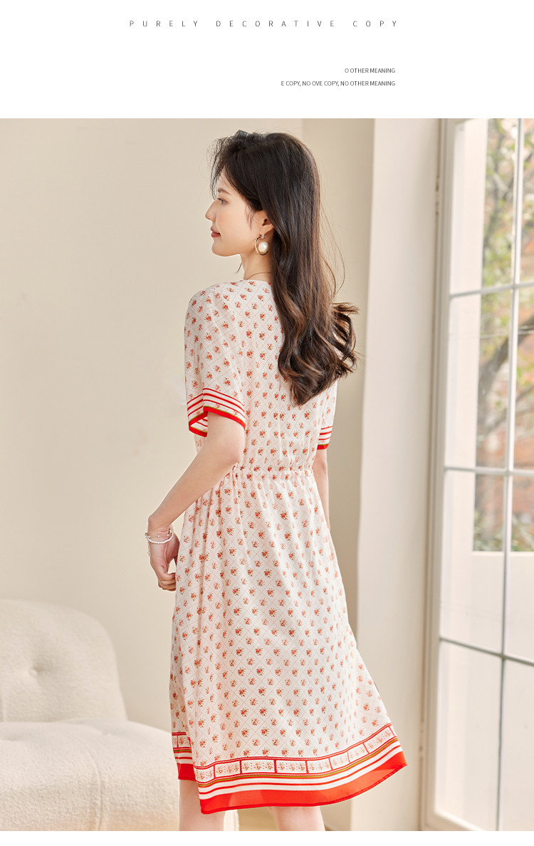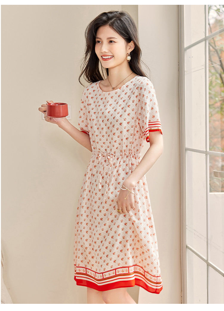 商品名称:2025春夏女装时尚浪漫印花淑女气质真丝圆领桑蚕丝连衣裙 086936