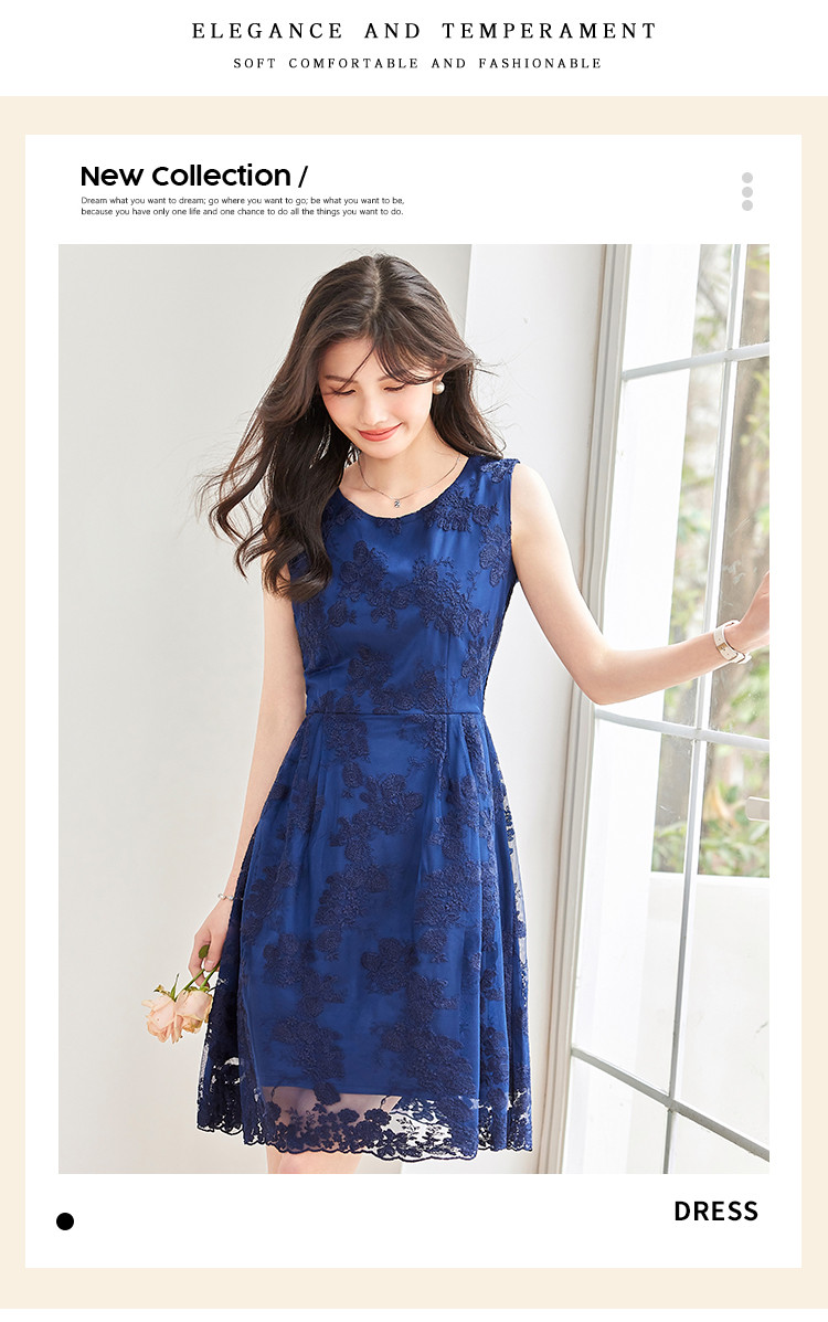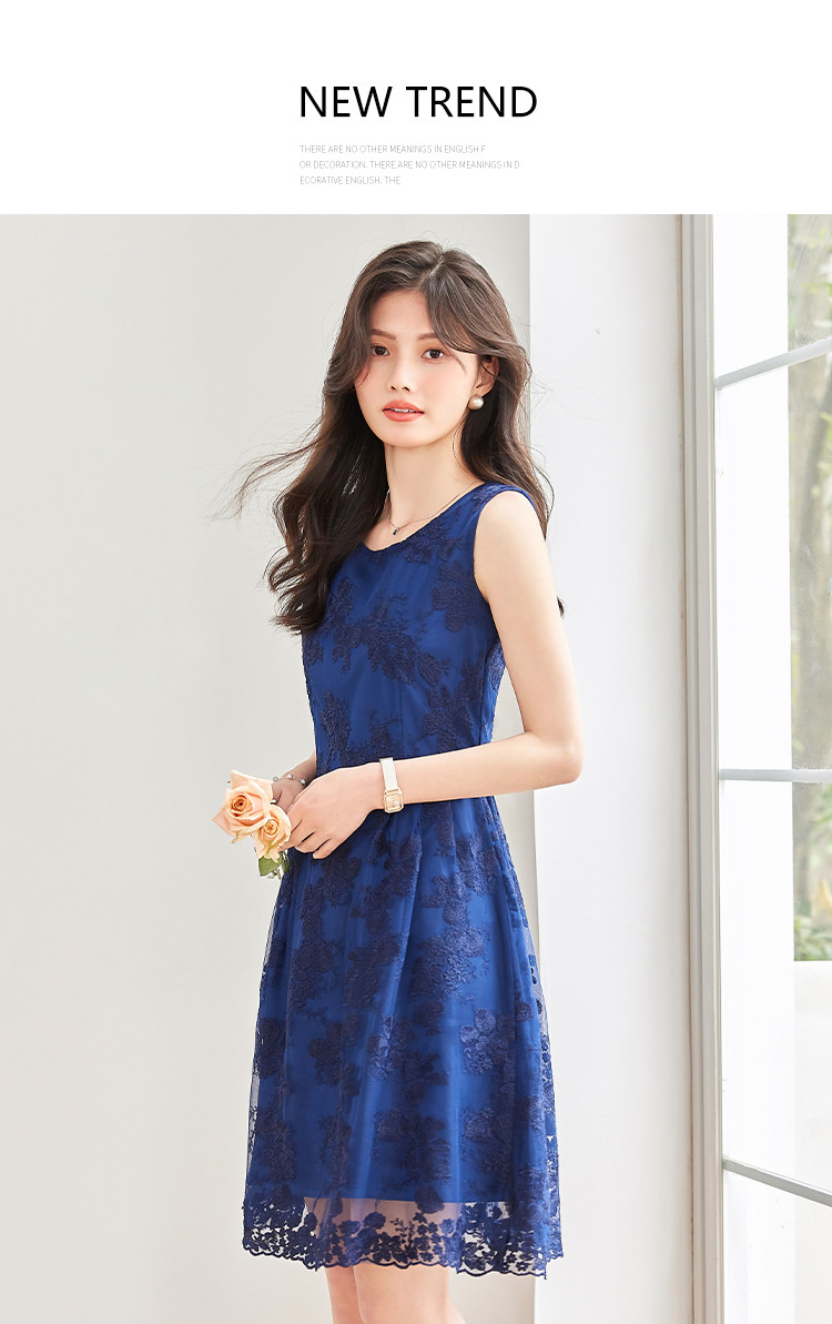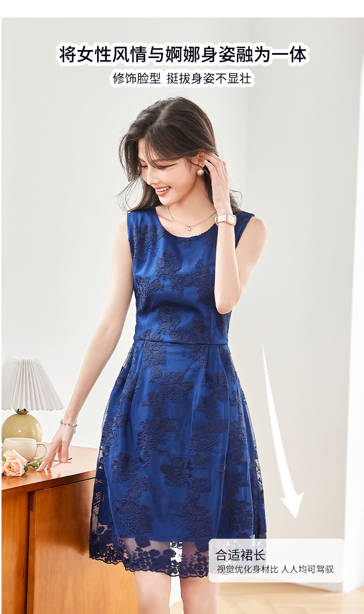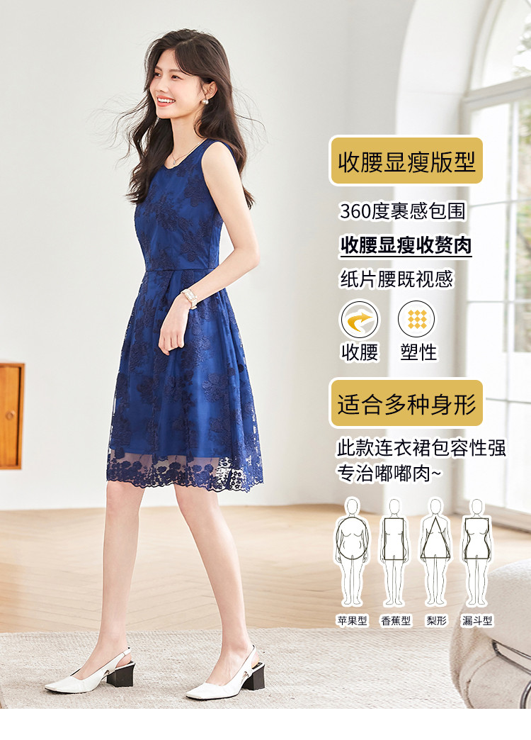 商品名称:2025夏季女装连衣裙子打底优雅纯色蕾丝绣花无袖背心裙 794776