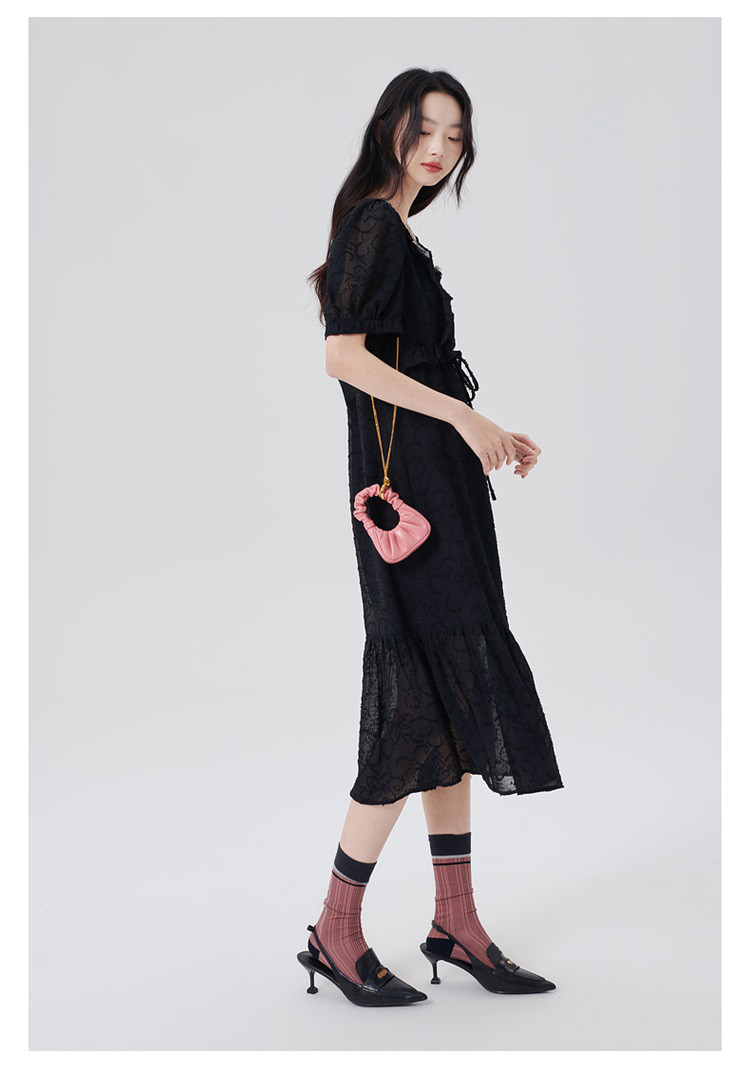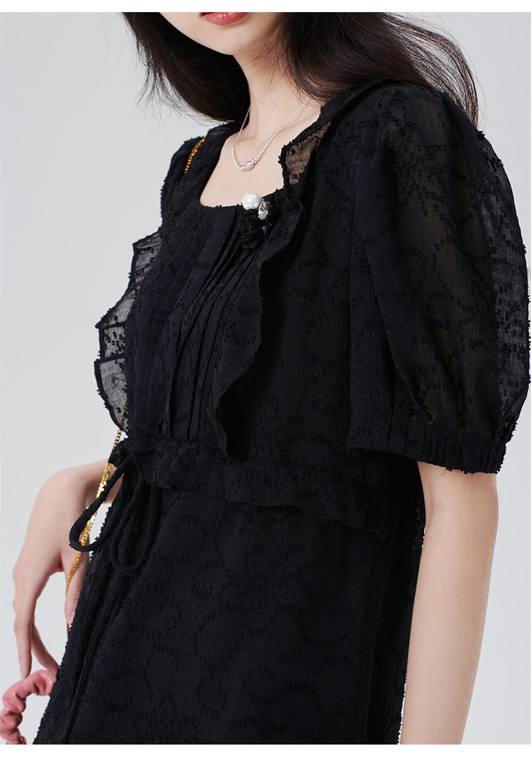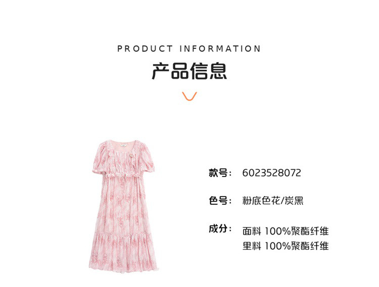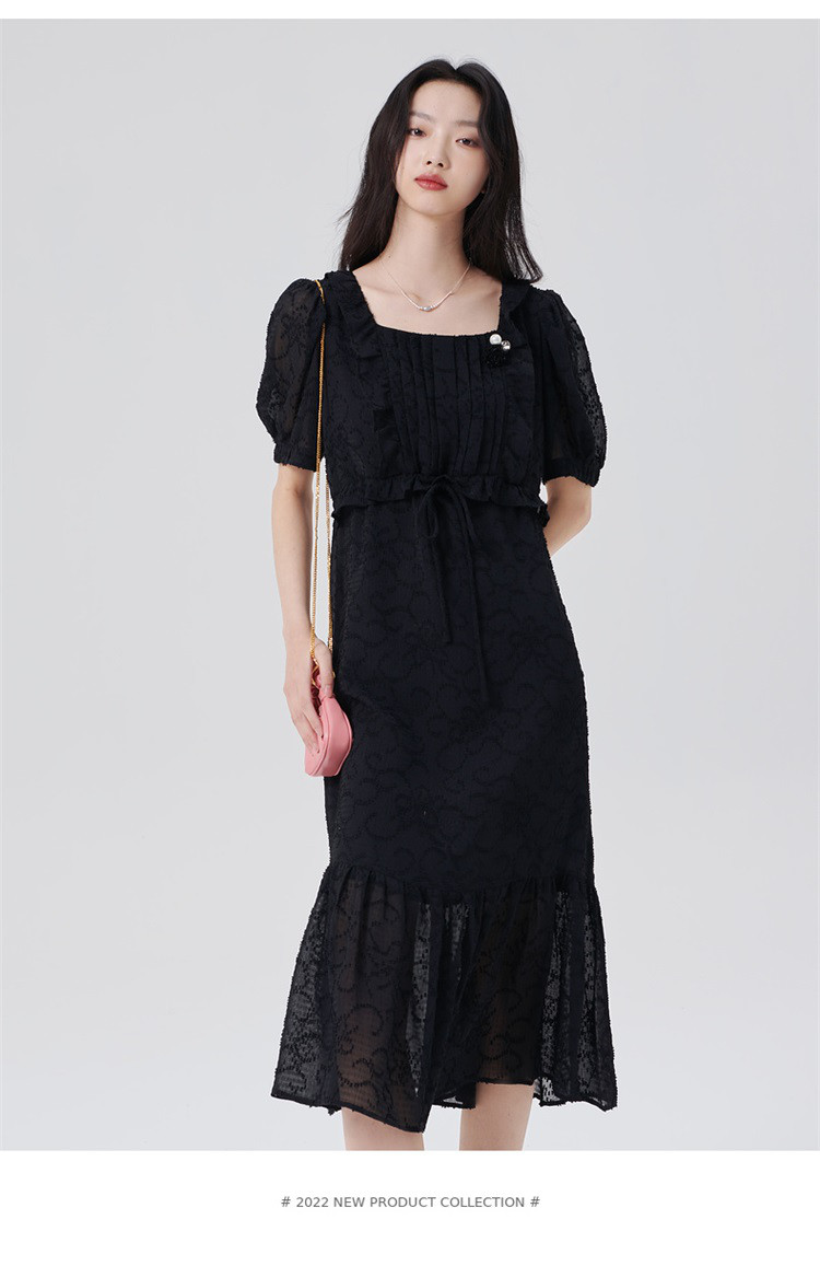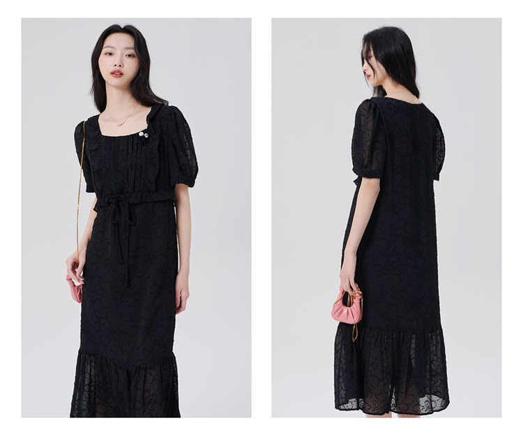 商品名称:【商场同款】时尚气质方领浪漫A字裙夏季短袖连衣裙子女长裙 170582