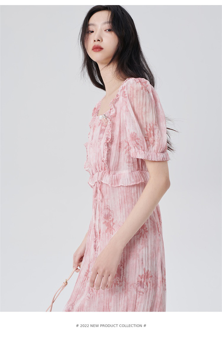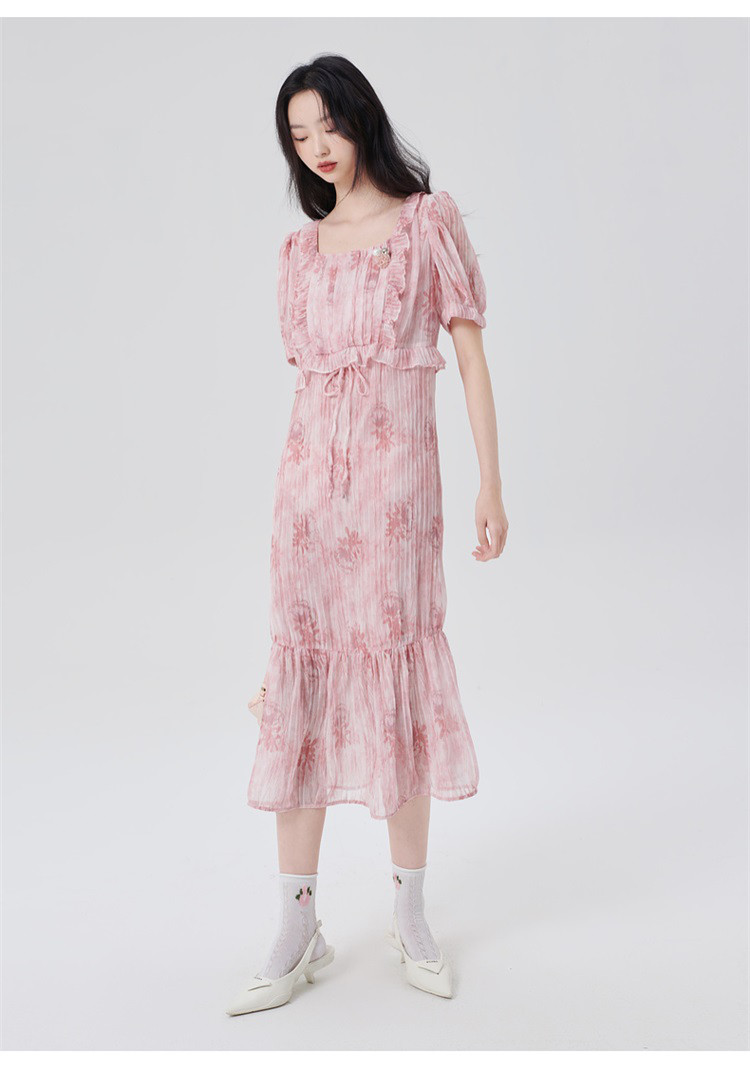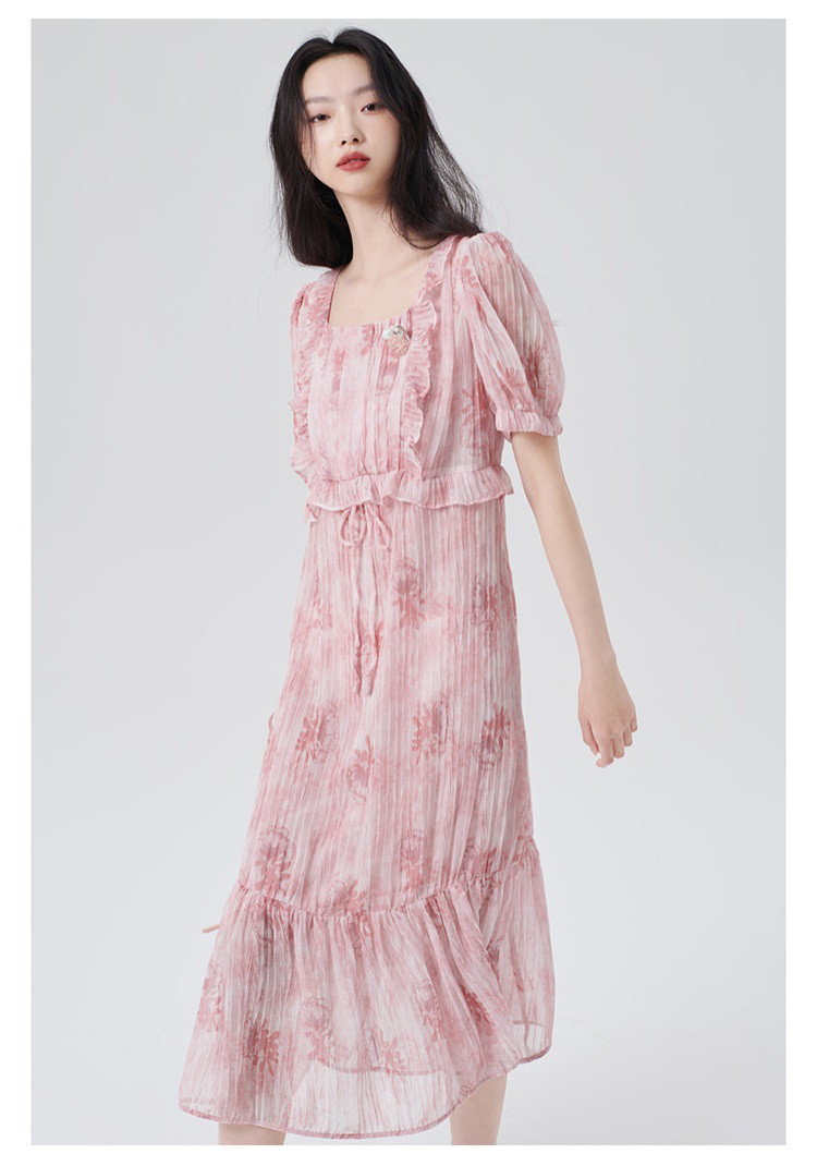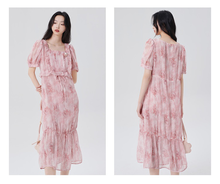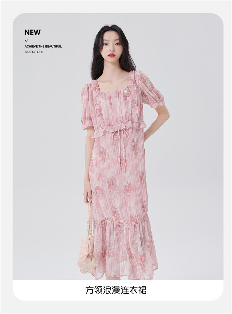 【商场同款】时尚气质方领浪漫A字裙夏季短袖连衣裙子女长裙 170582