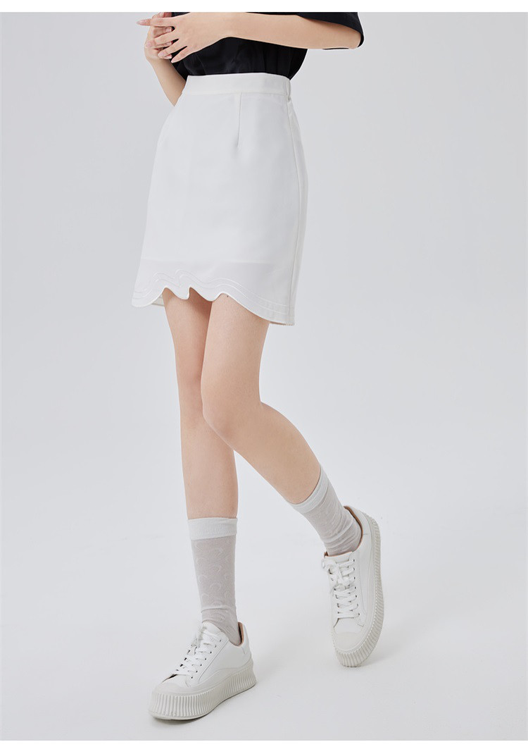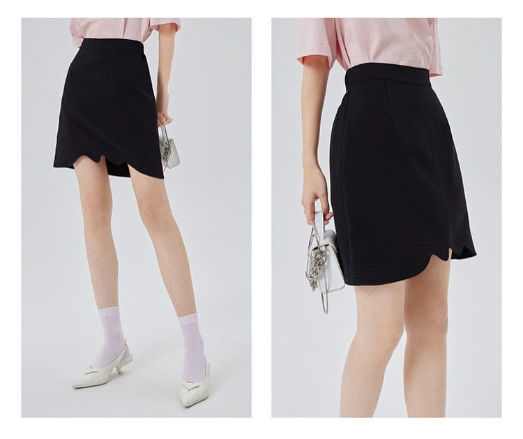 商品名称:【商场同款】波浪下摆不规则设计半截裙高腰显瘦修身A字短裙女 751702