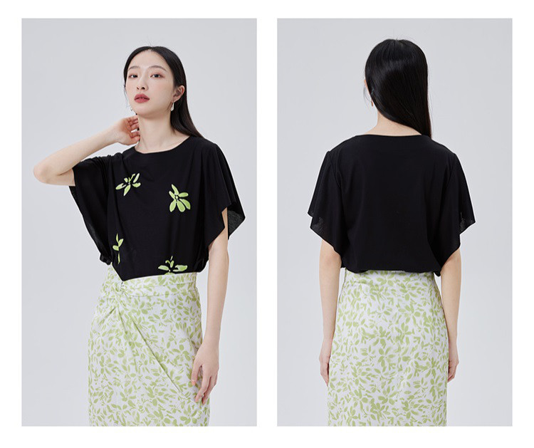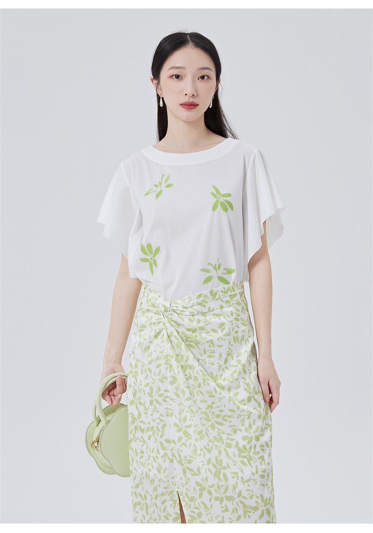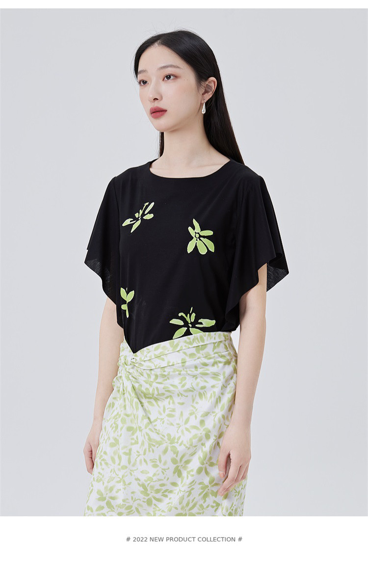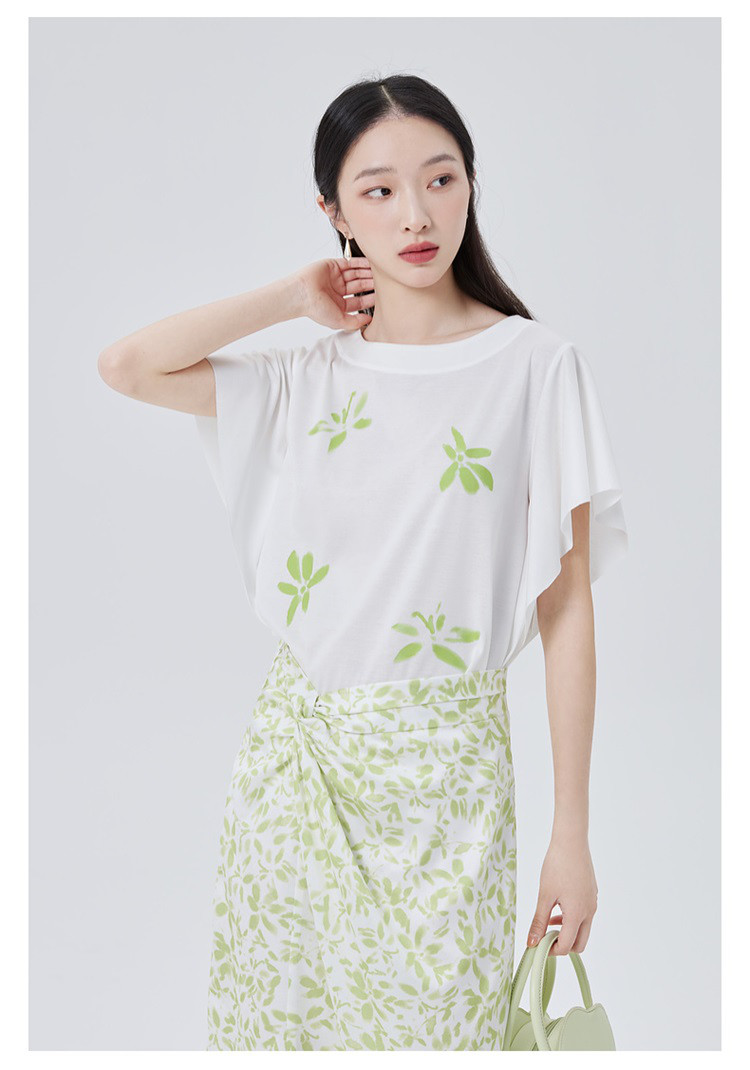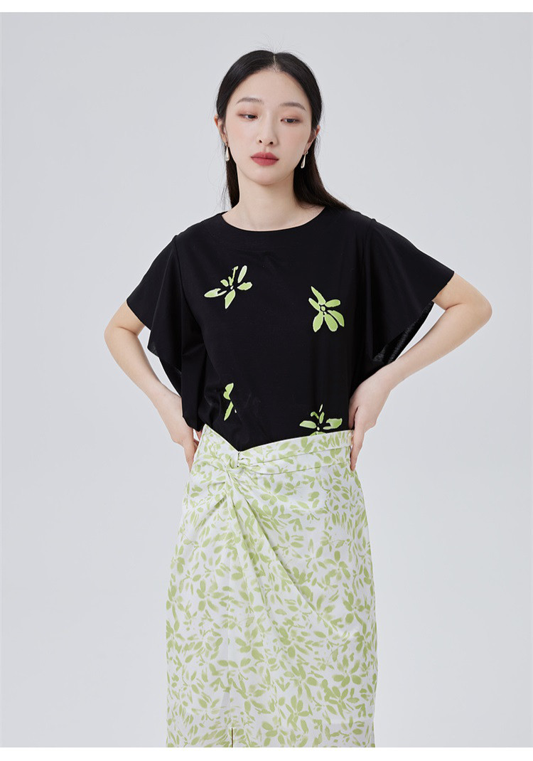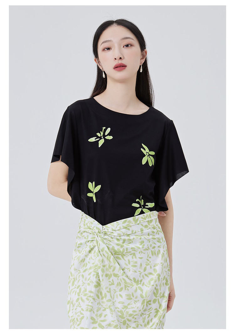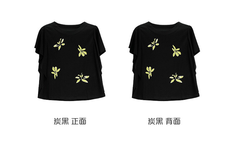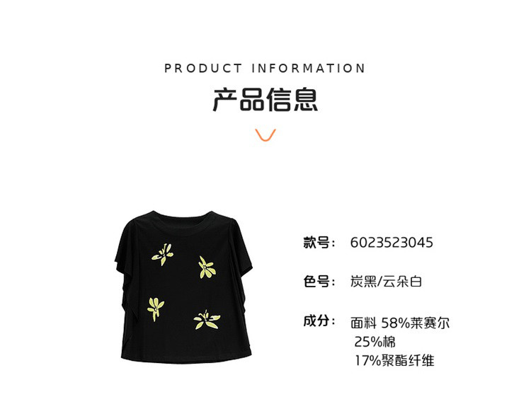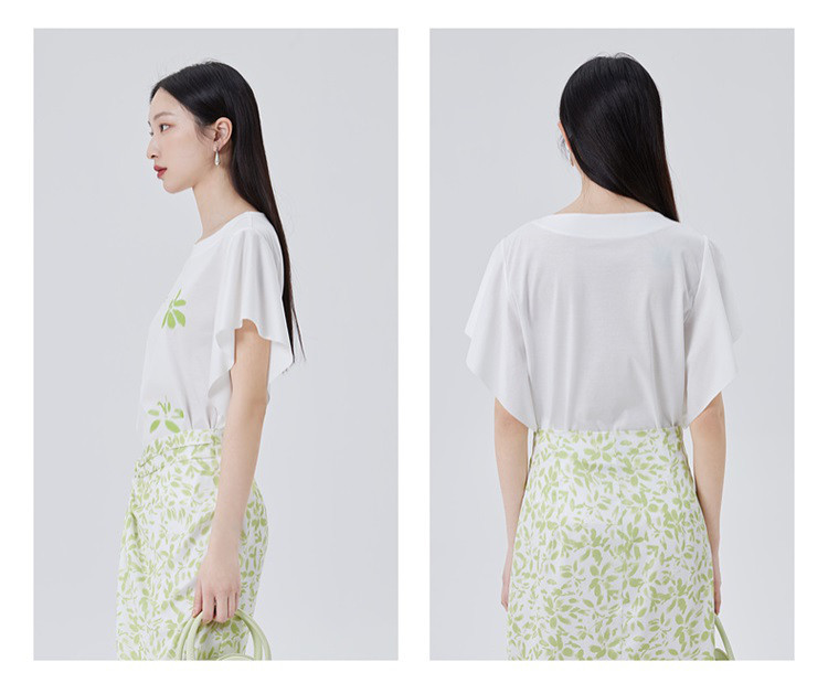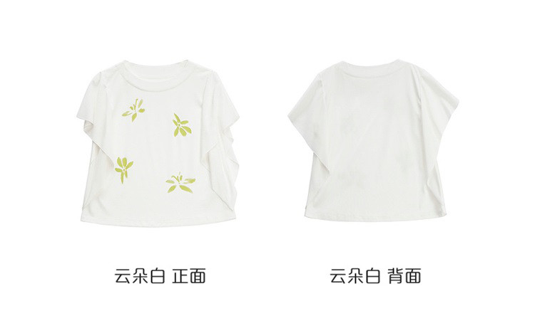 商品名称:【商场同款】浪漫飞边优雅气质短袖女夏季短款时尚印花女式T恤 057878