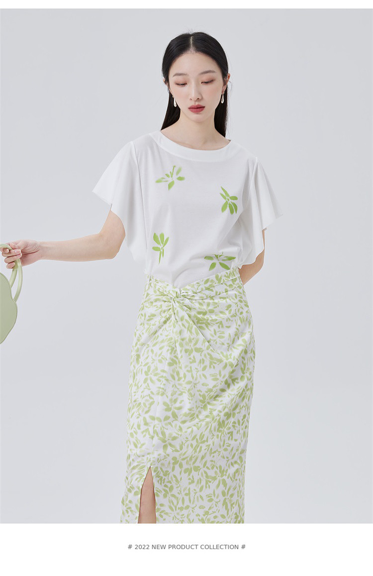 【商场同款】浪漫飞边优雅气质短袖女夏季短款时尚印花女式T恤 057878