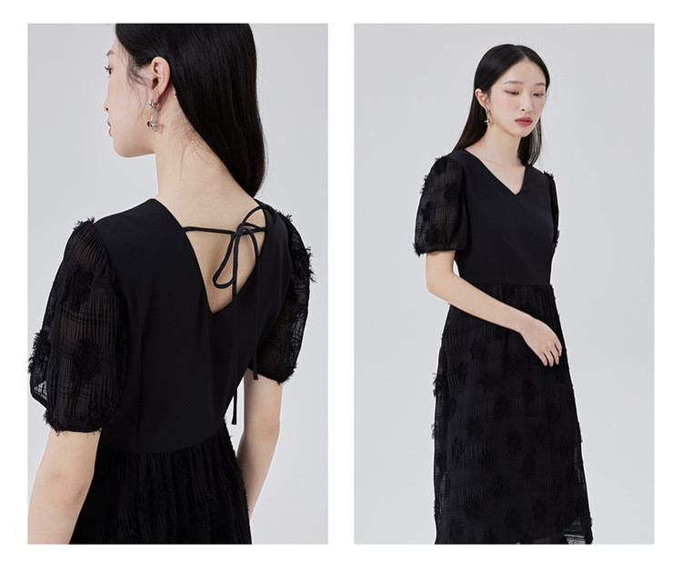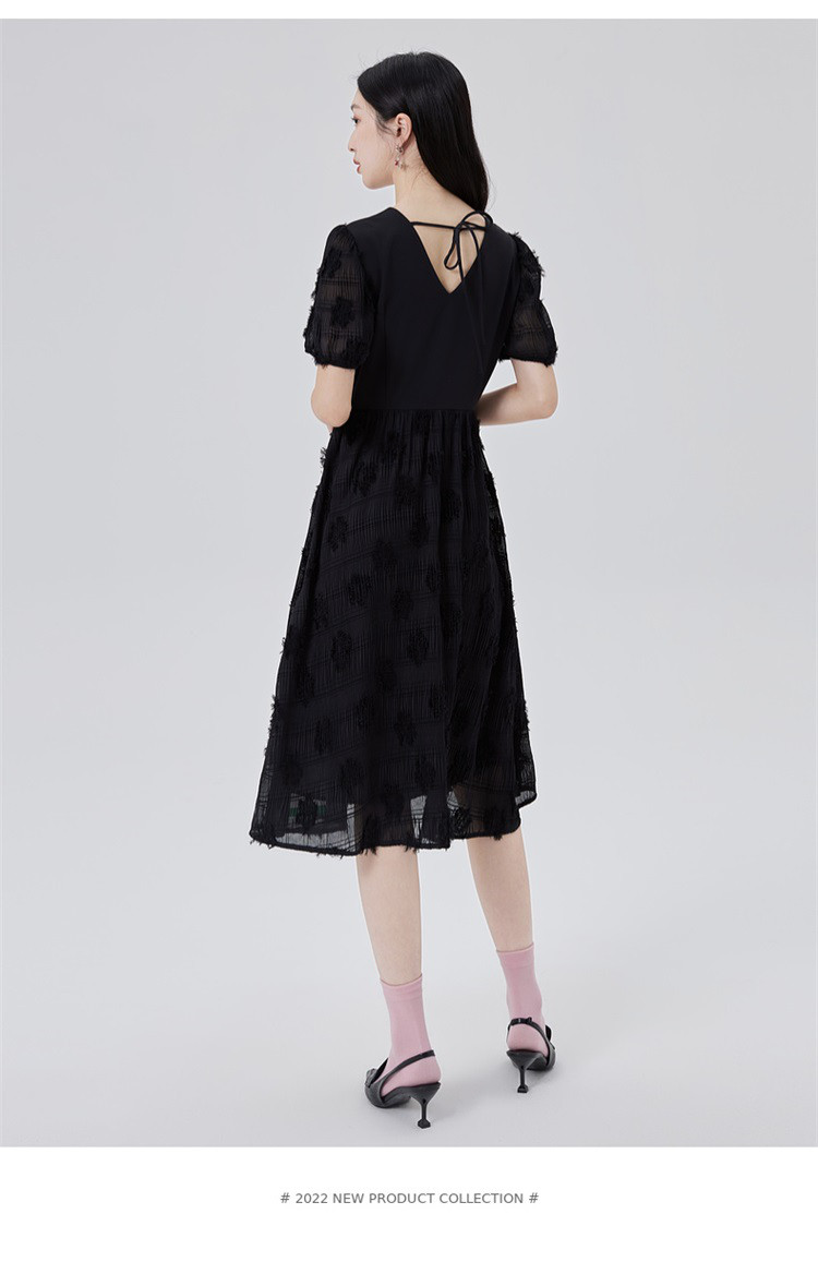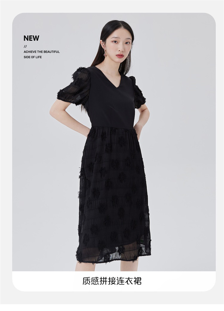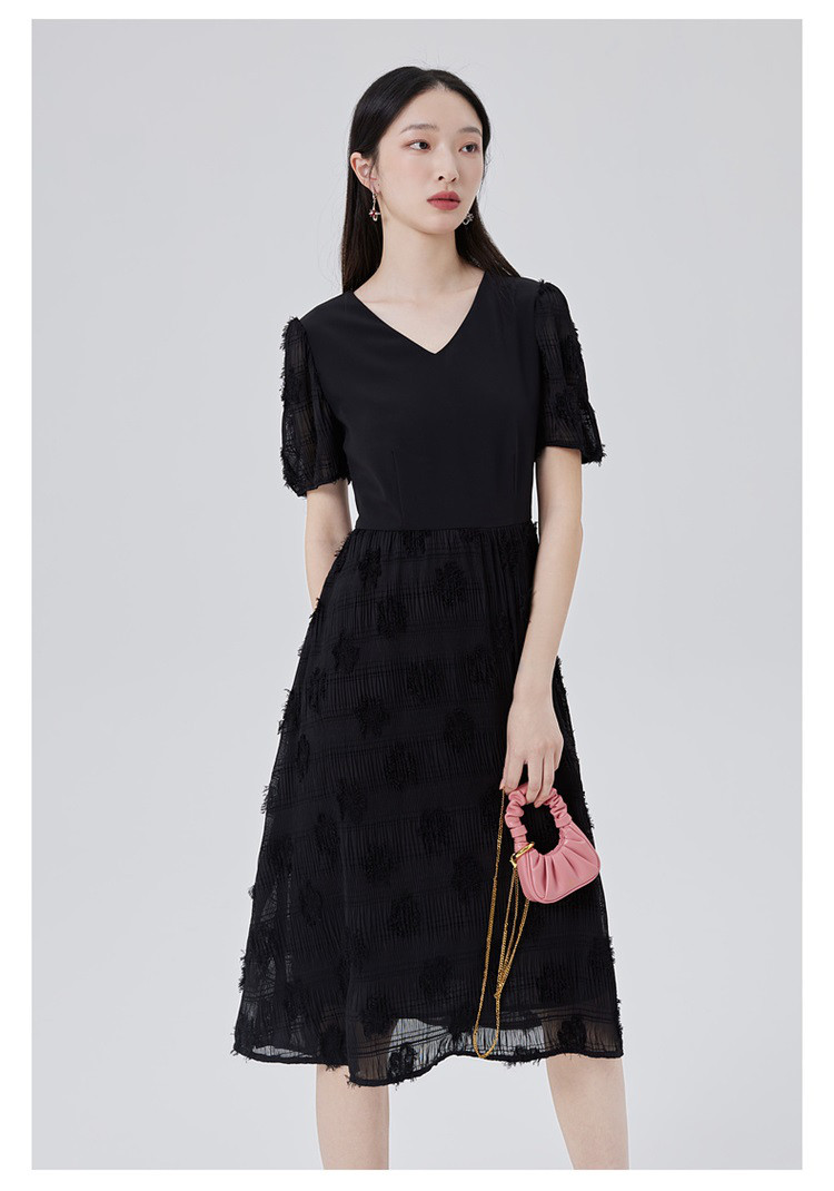 商品名称:【商场同款】性感蕾丝裙质感拼接短袖连衣裙子显瘦收腰A字裙 473686
