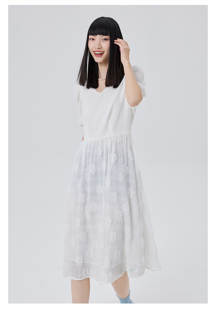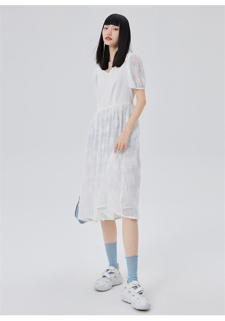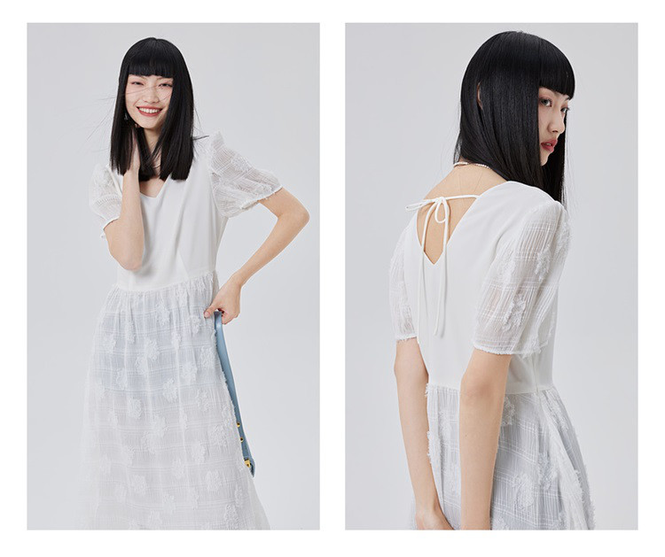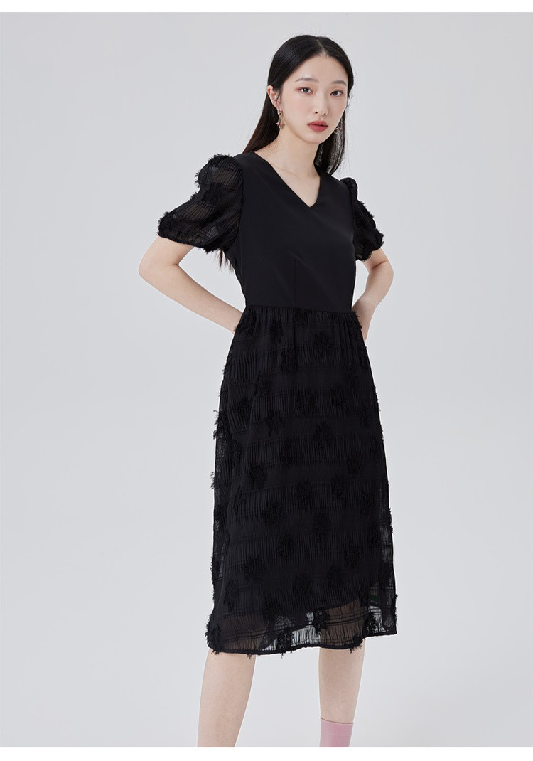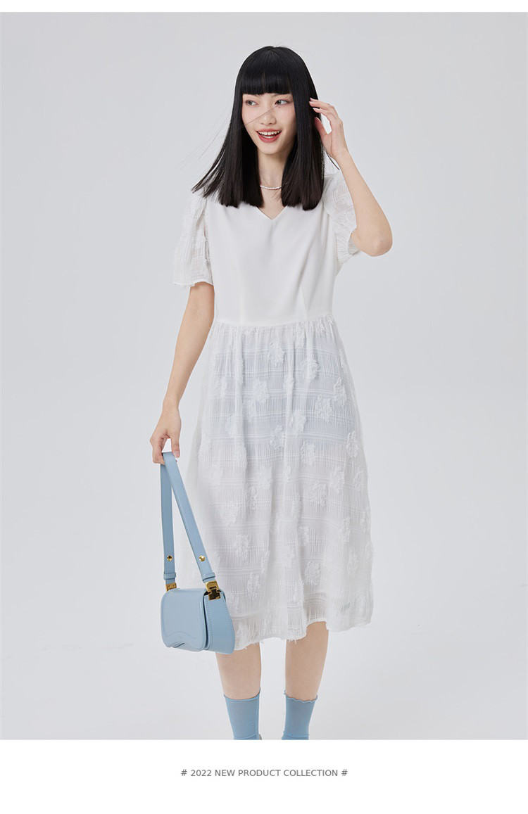 商品名称:【商场同款】性感蕾丝裙质感拼接短袖连衣裙子显瘦收腰A字裙 473686