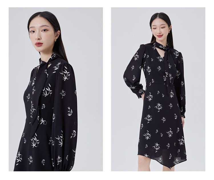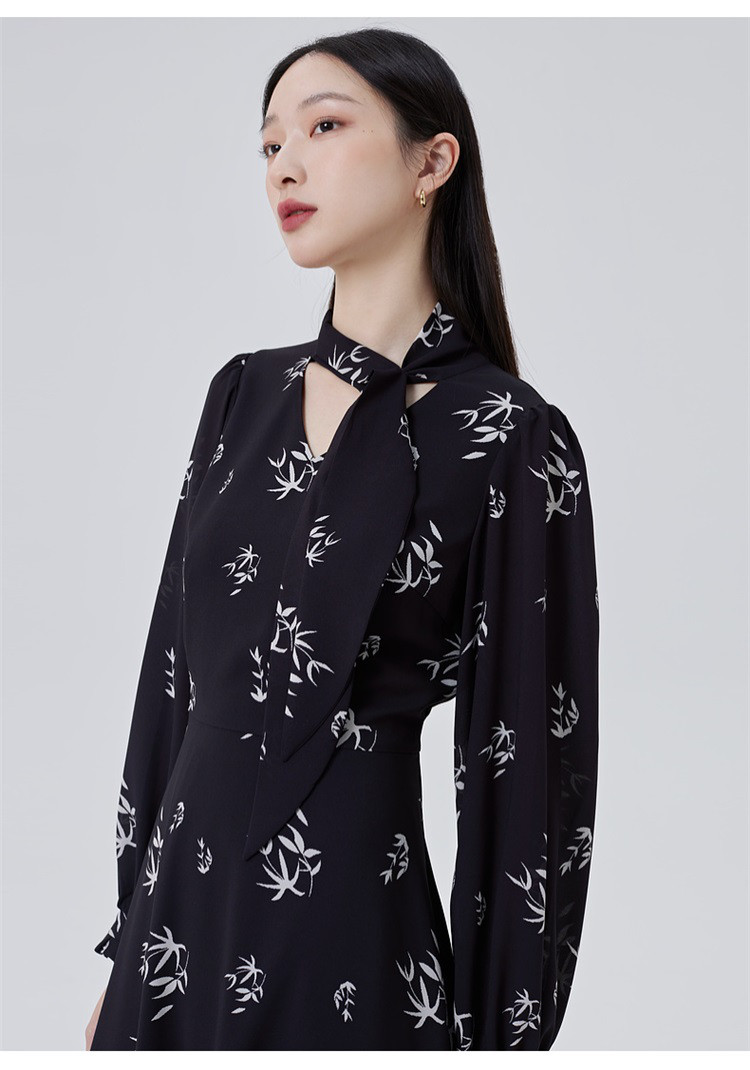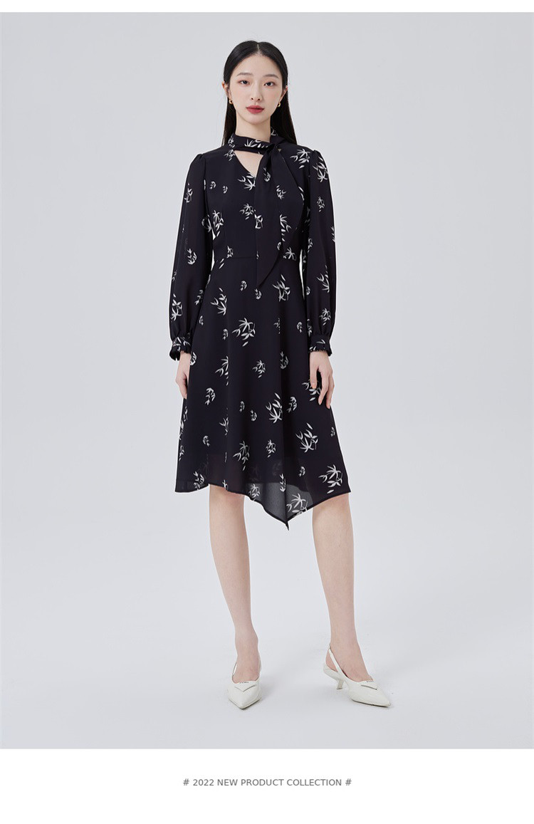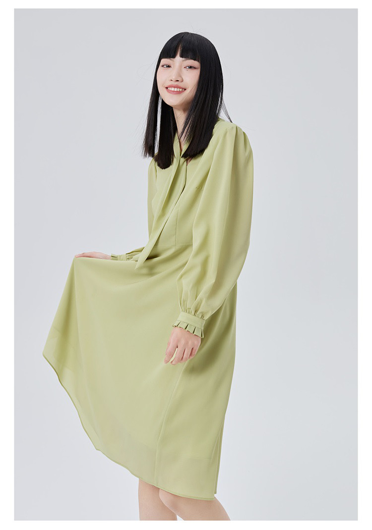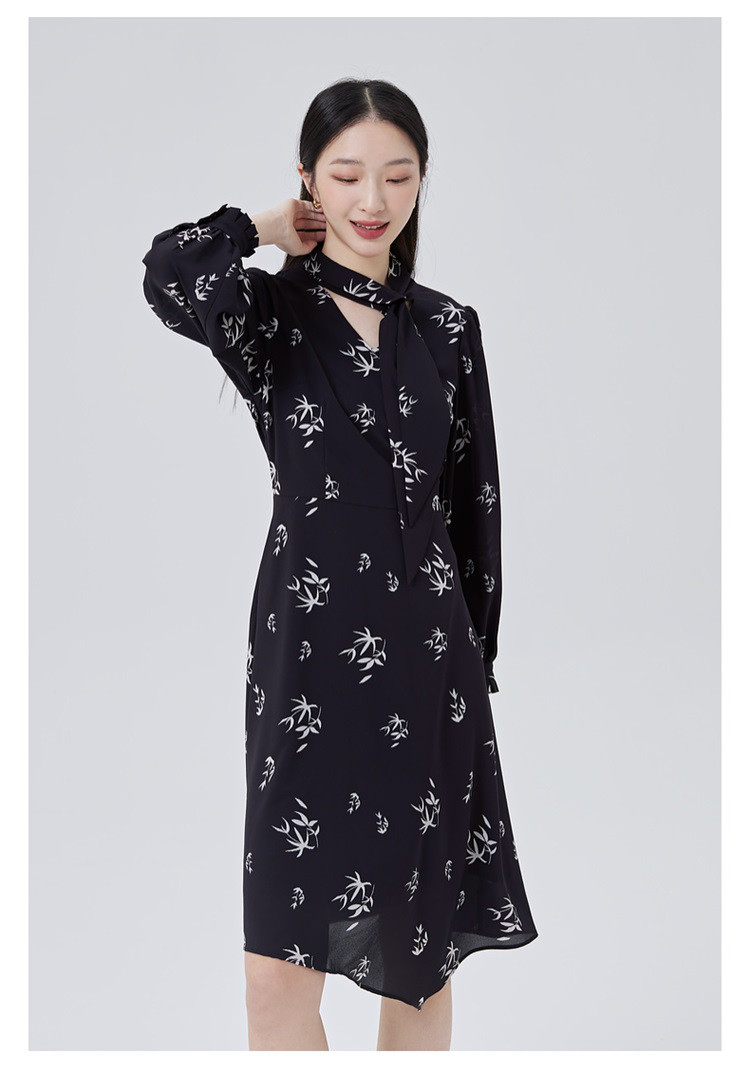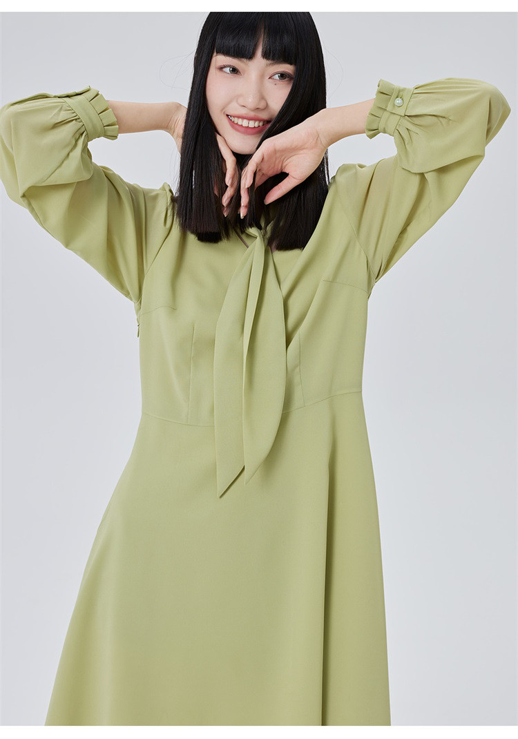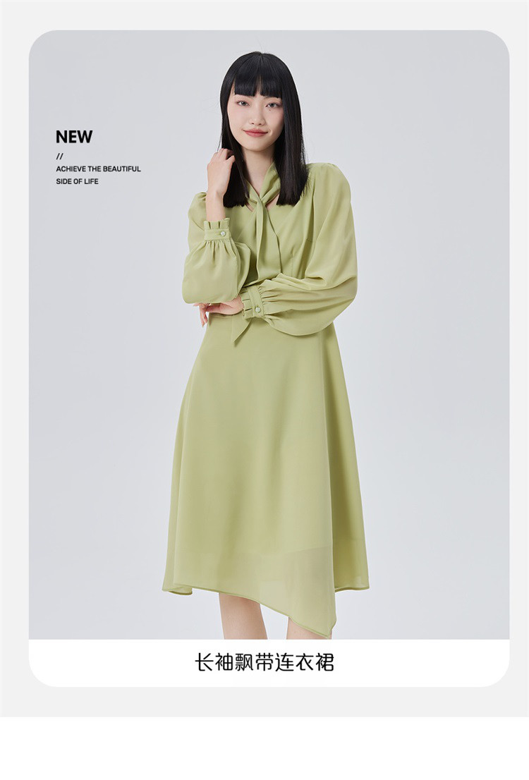 商品名称:【商场同款】优雅气质衬衫裙子女长袖飘带修身显瘦连衣裙 080470