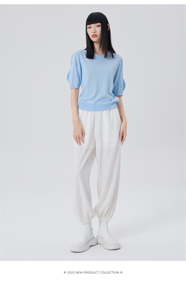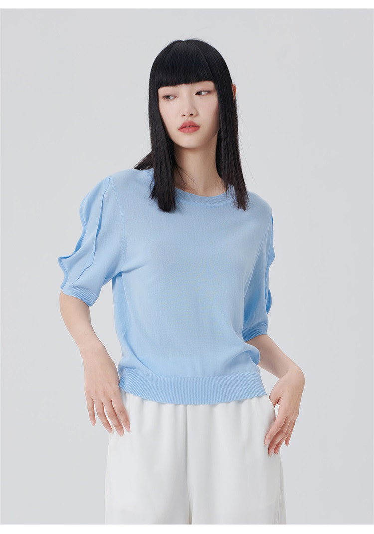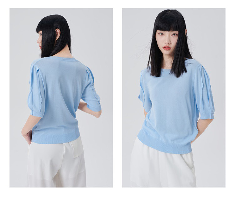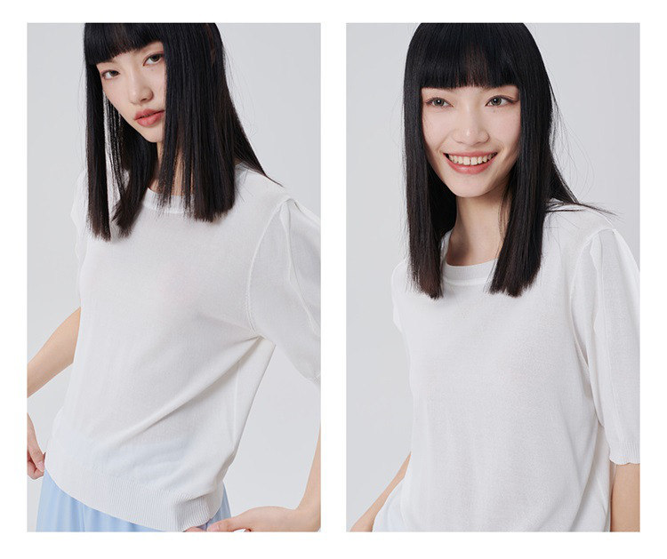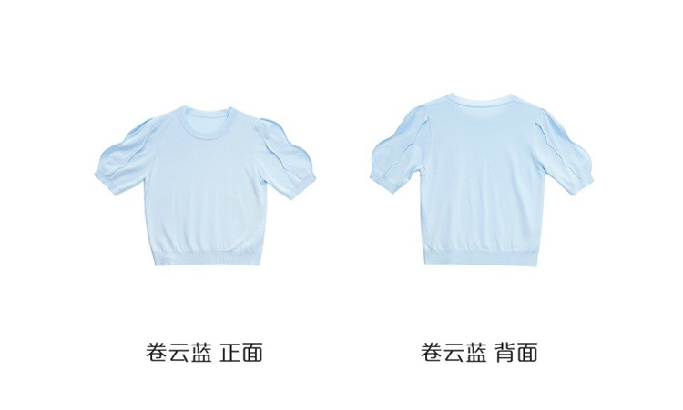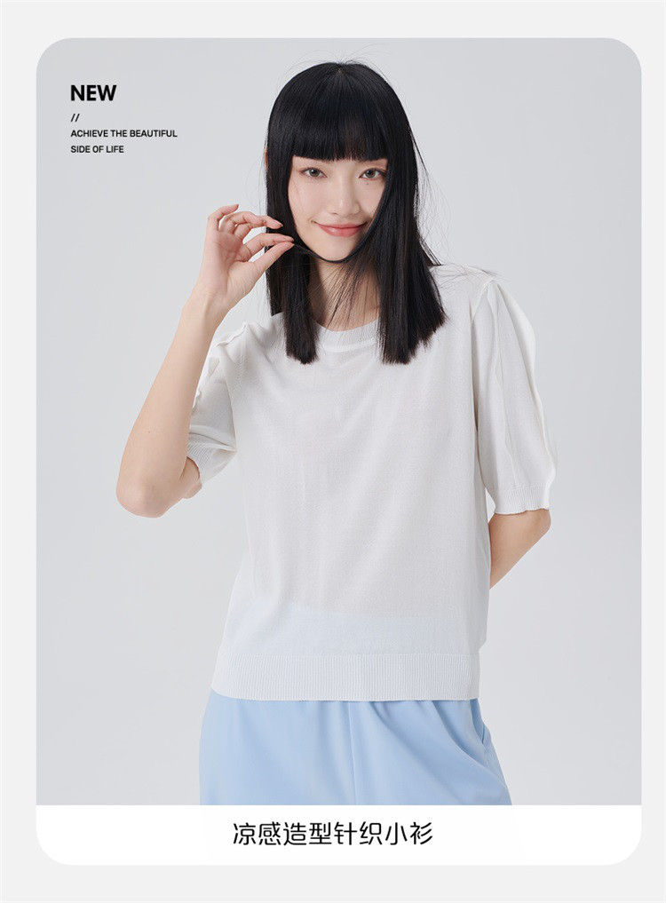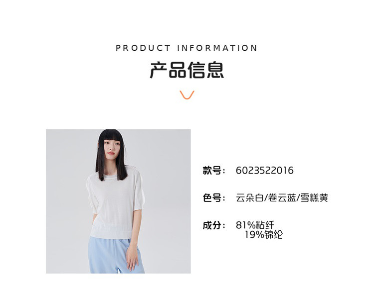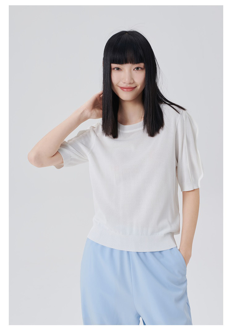 商品名称:【商场同款】时尚轻薄透气五分袖T恤女短款圆领夏季短袖针织衫 061974