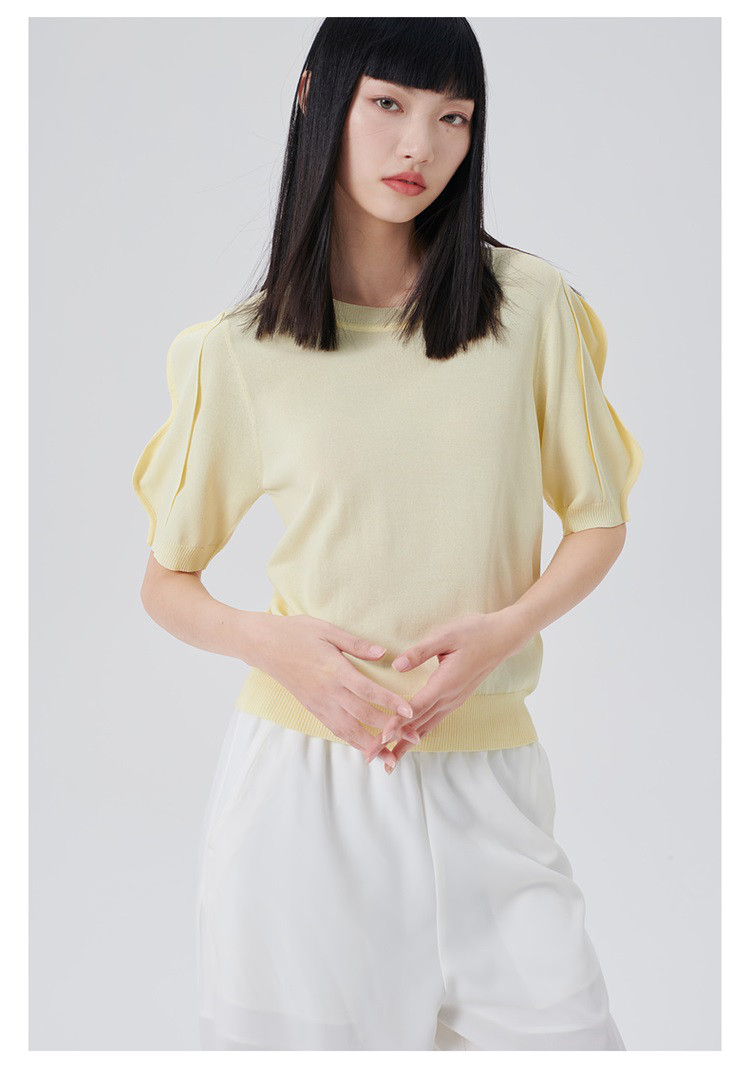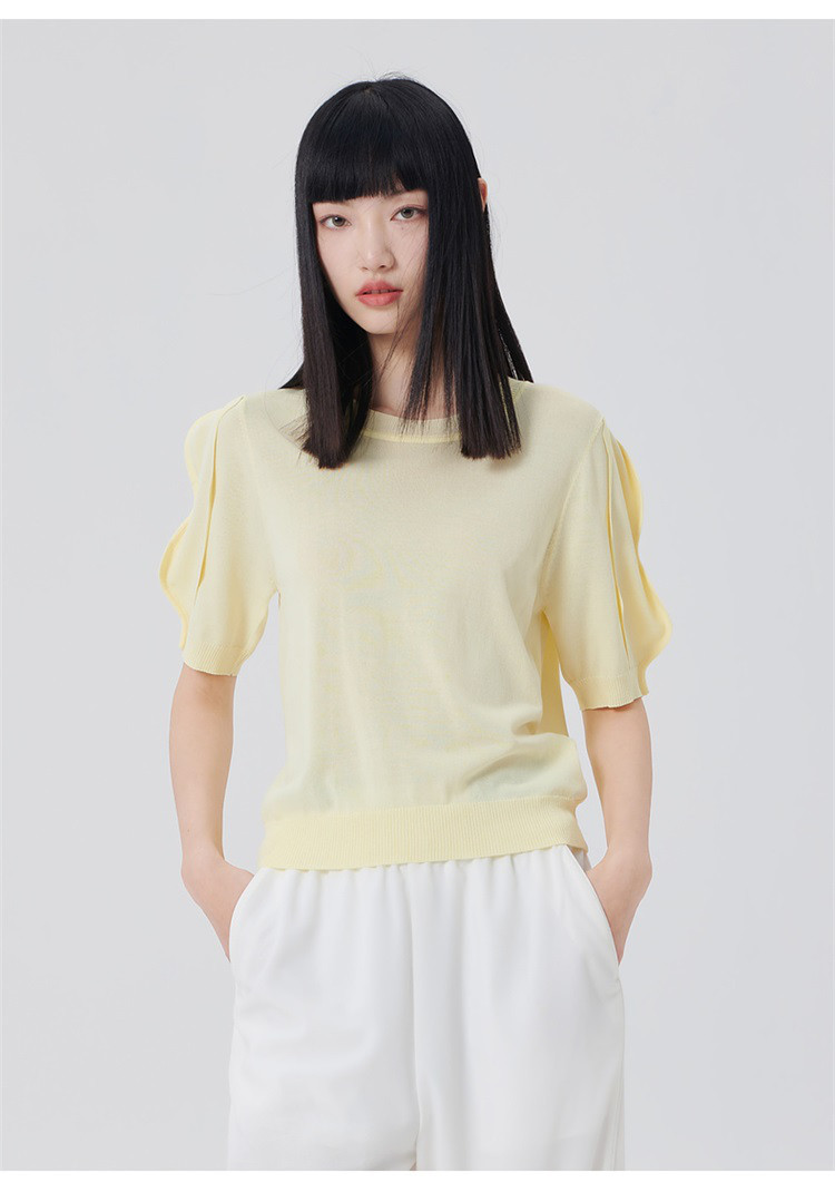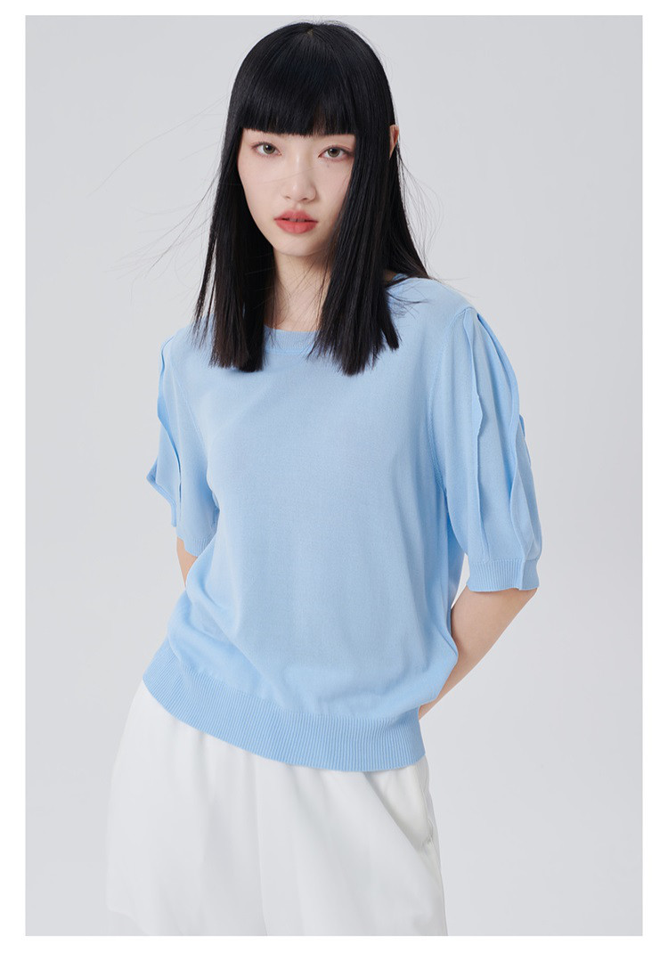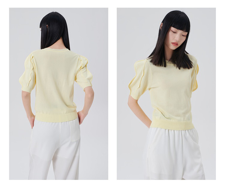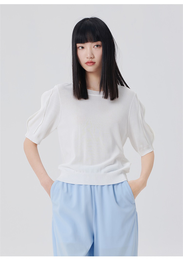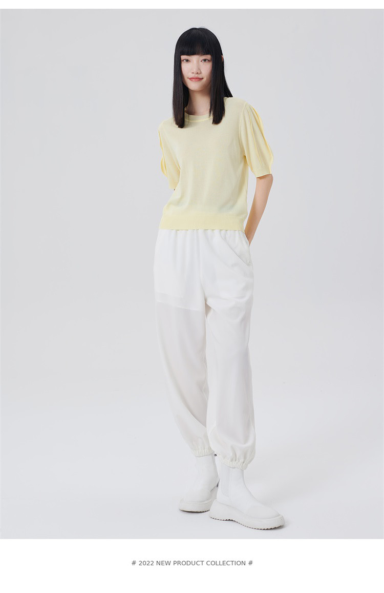 商品名称:【商场同款】时尚轻薄透气五分袖T恤女短款圆领夏季短袖针织衫 061974