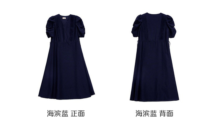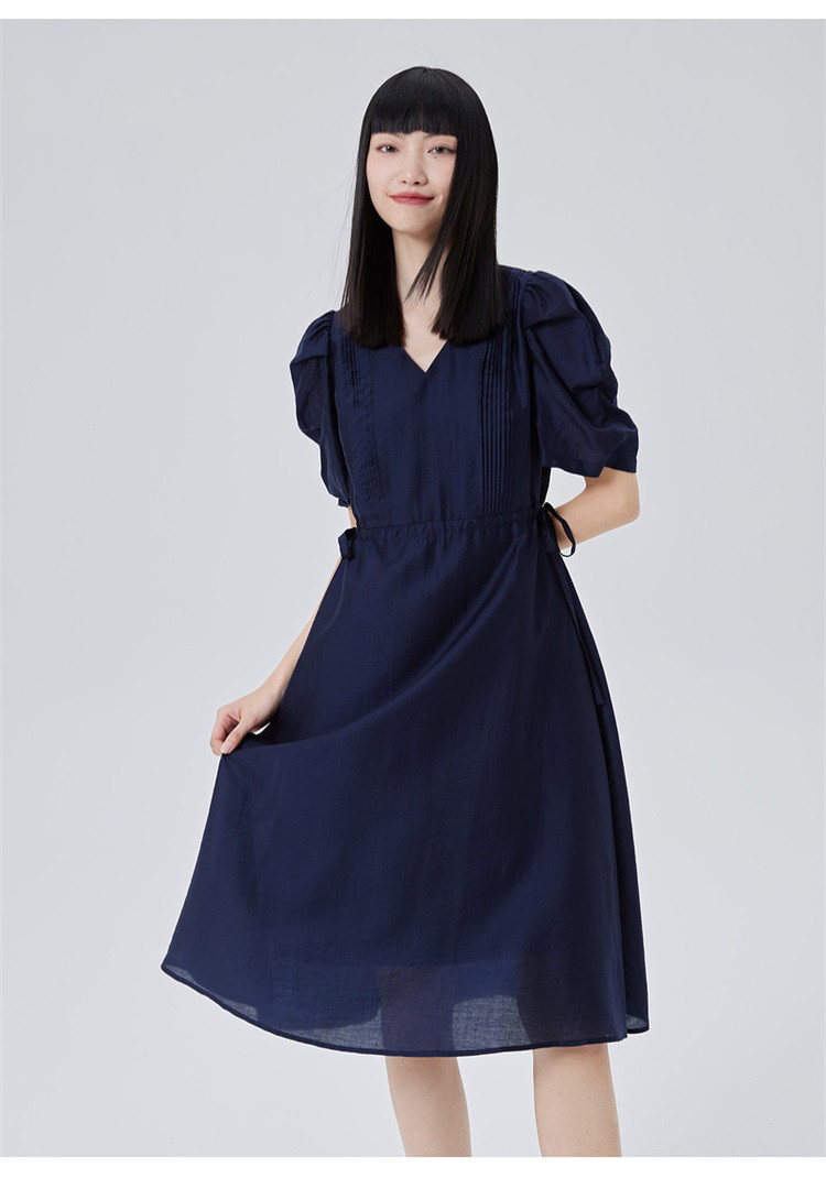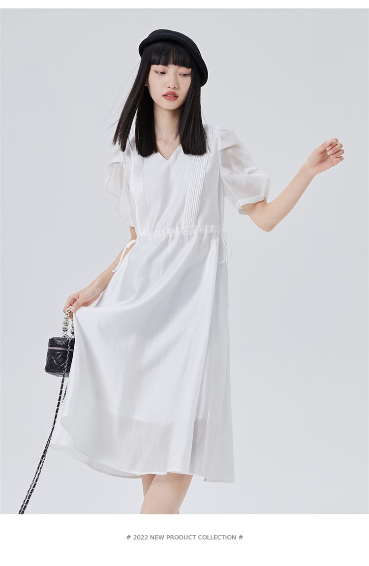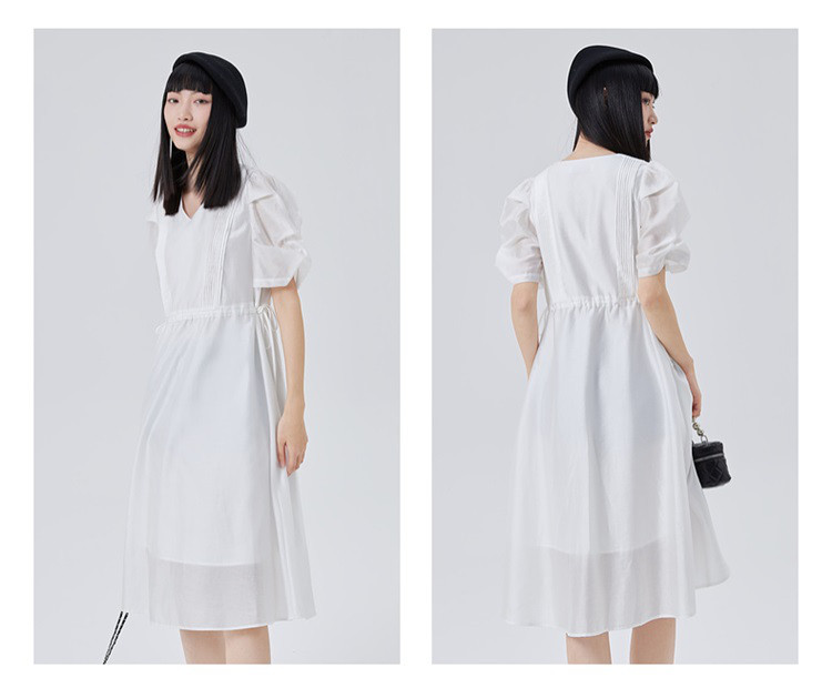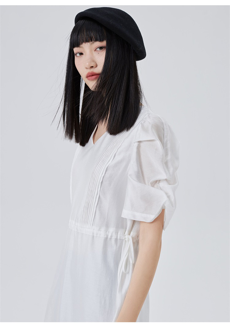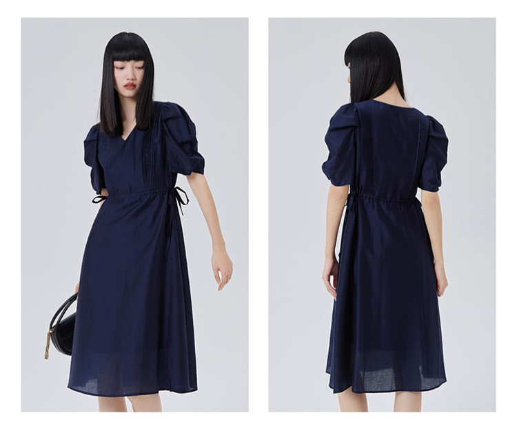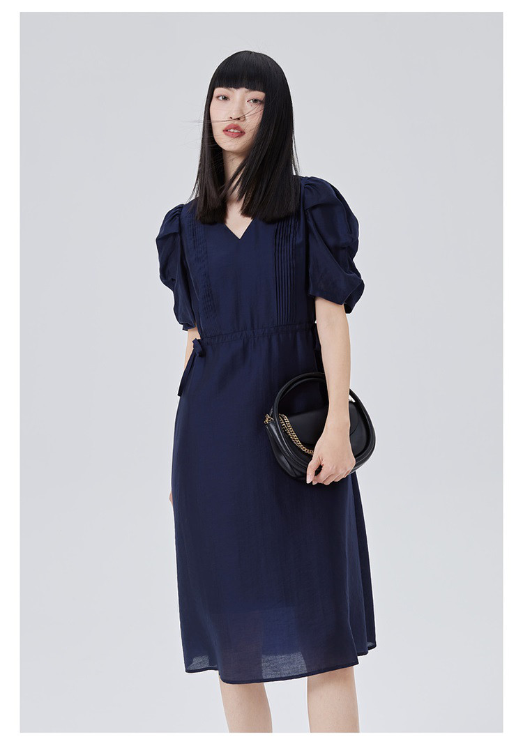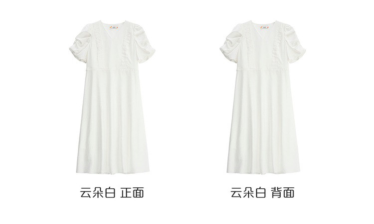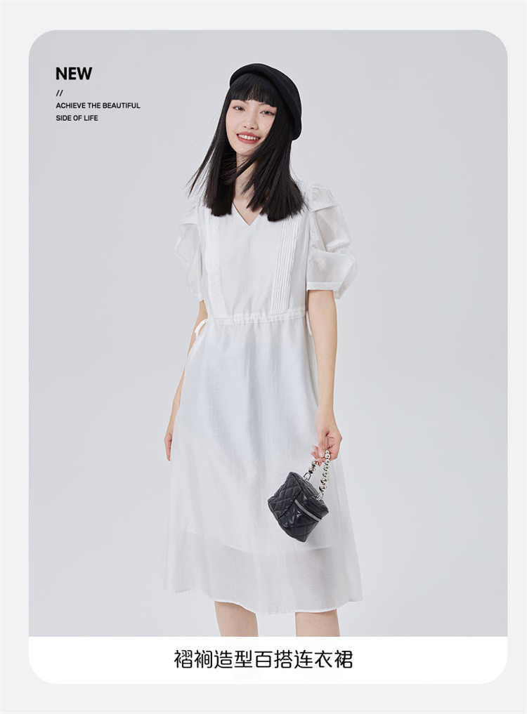 商品名称:【商场同款】褶裥造型时尚百搭短袖连衣裙子女夏季轻薄收腰长裙 190550