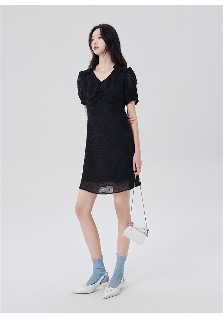 商品名称:【商场同款】法式修身连衣裙子女A字裙优雅气质短袖中长裙 731670
