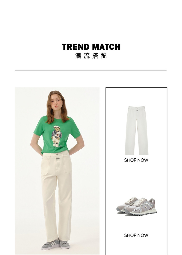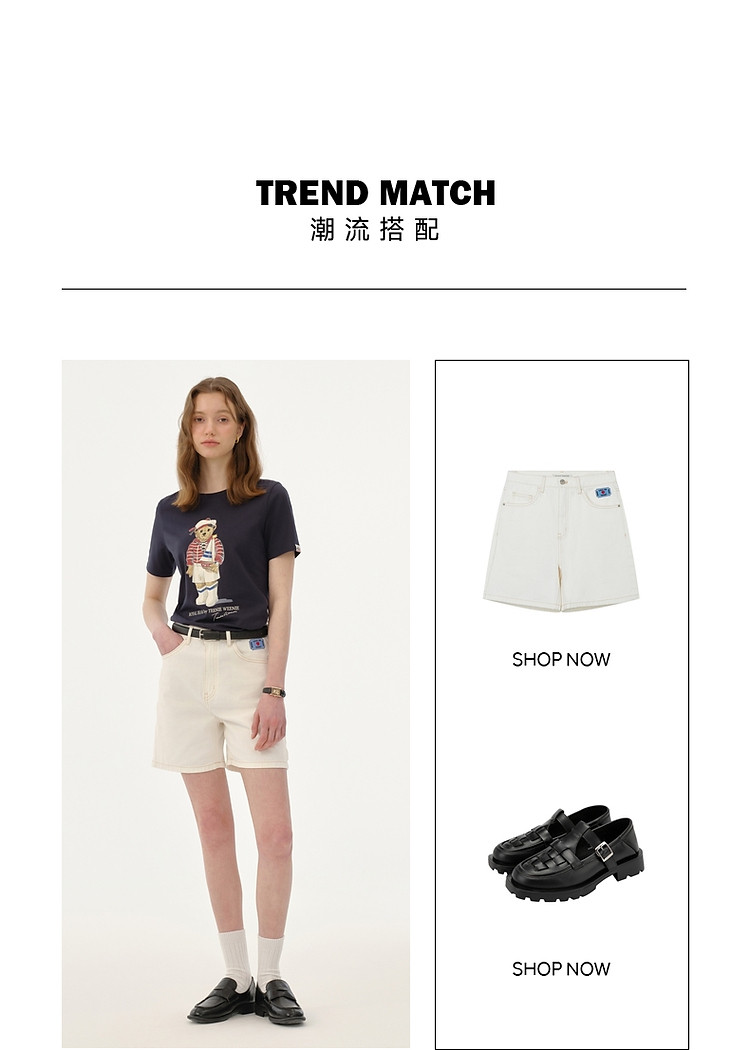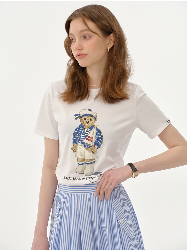 【大熊印花】短袖T恤女夏季活力海军风圆领T恤上衣女 455425