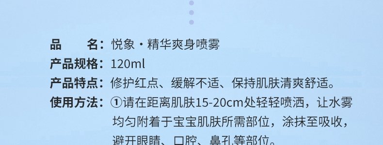 商品名称:悦象 芦荟精华液体爽身露 120ml 3月+