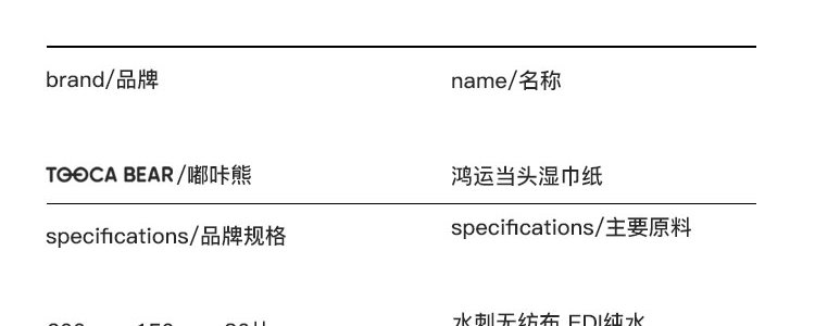 商品名称:嘟咔熊(TOOCABEAR)鸿运当头湿纸巾 80抽*5包