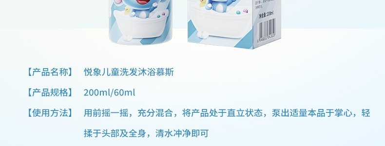 商品名称:悦象 儿童洗发沐浴奶泡慕斯 200ml