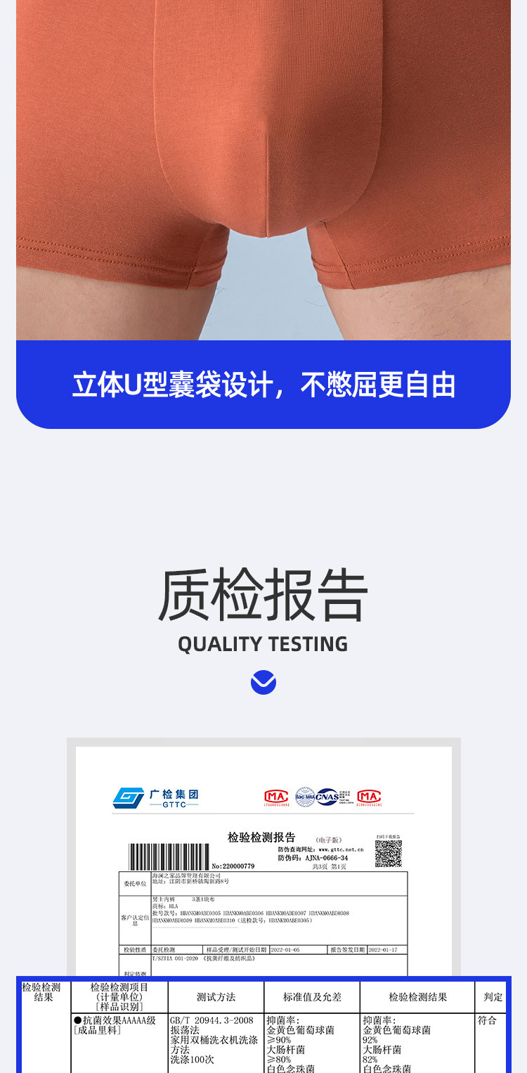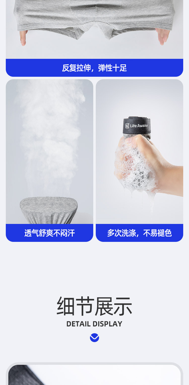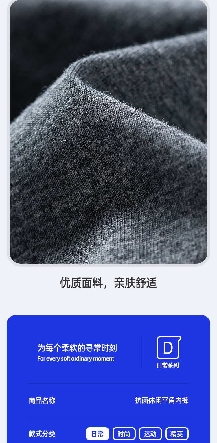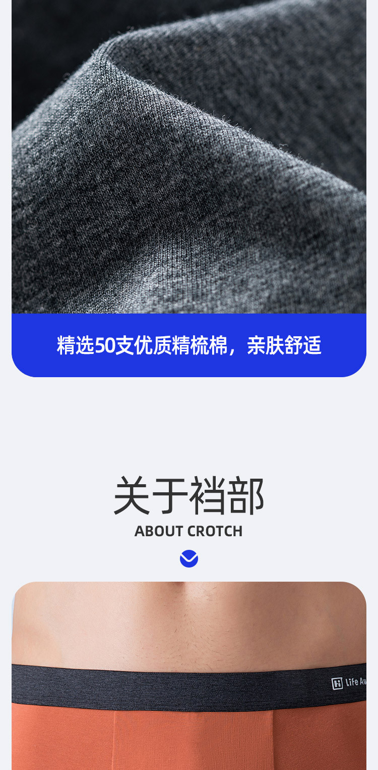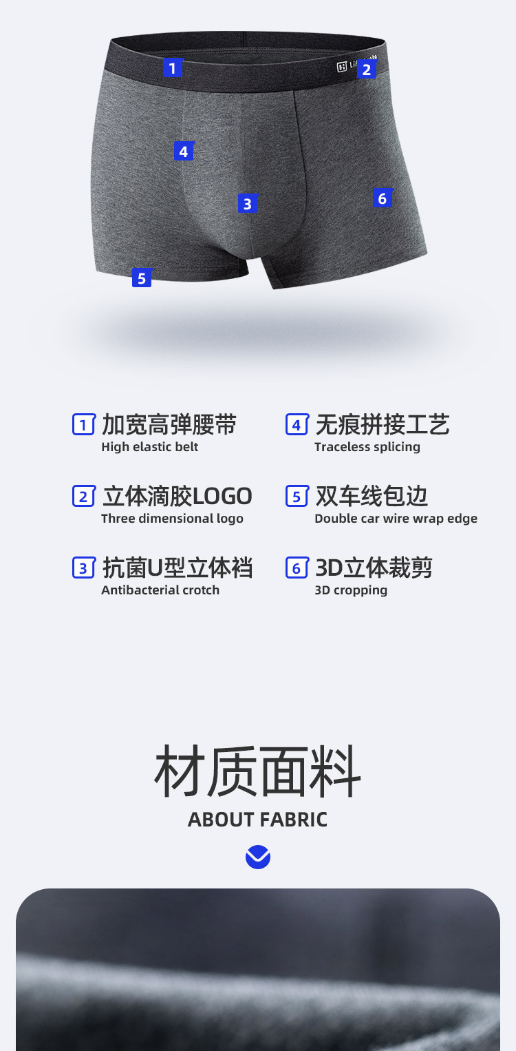 商品名称:【5A抑菌 95%棉】3条装男士内裤男透气四角裤头平角短裤衩 689818
