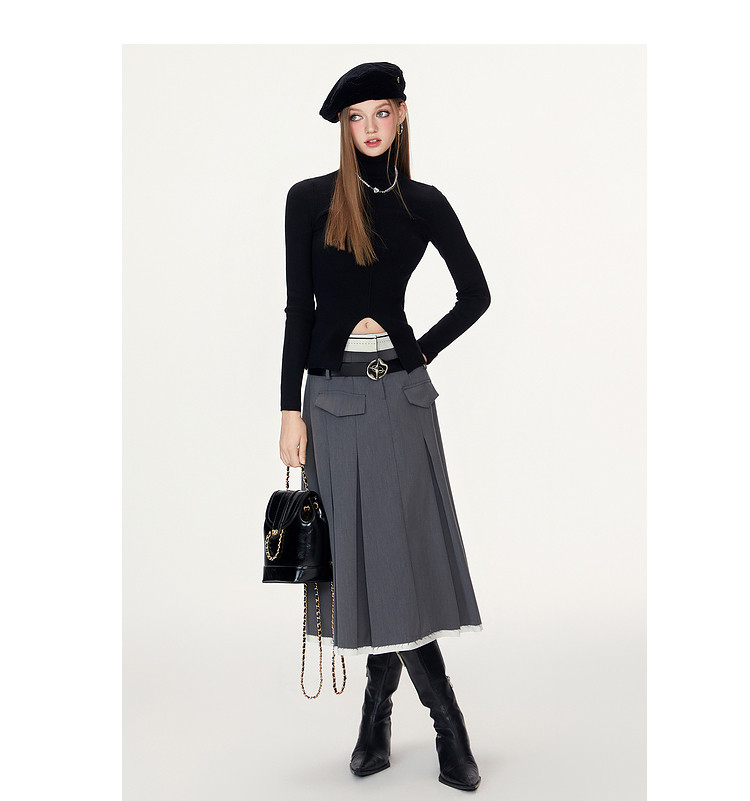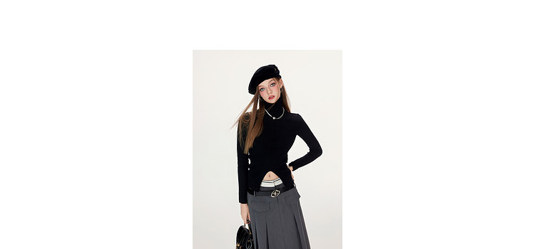 【特卖福利】高领开叉下摆打底毛衣女修身优雅气质针织衫上衣 672916