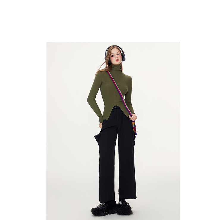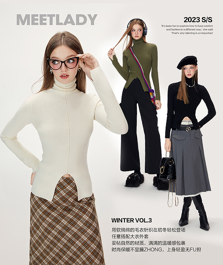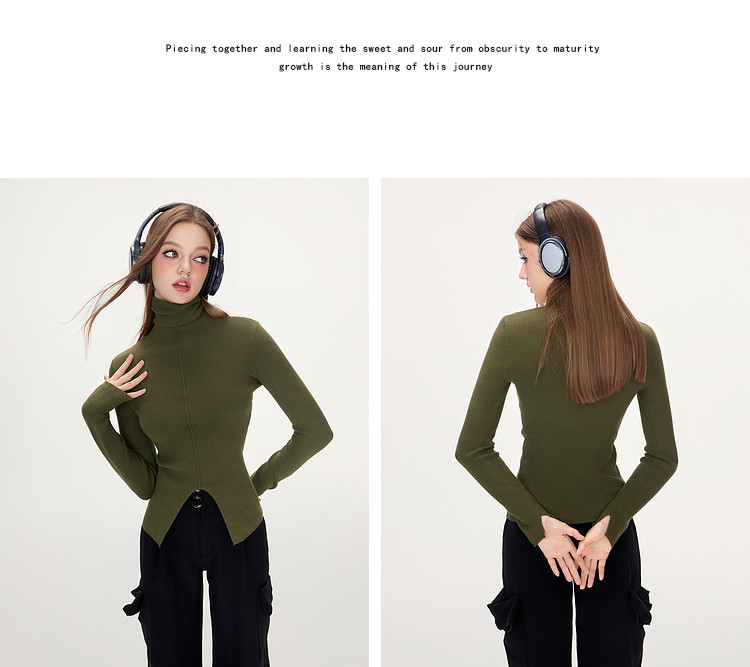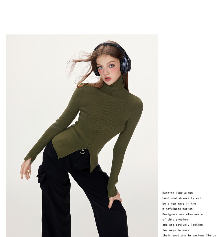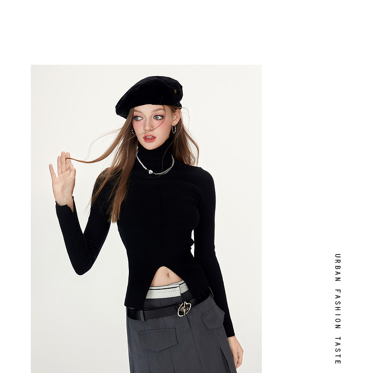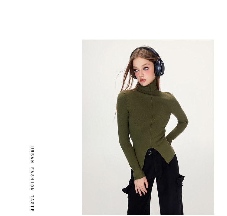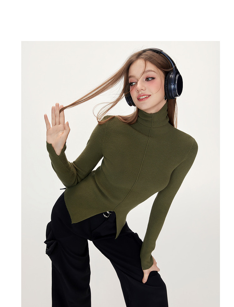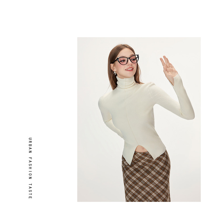 商品名称:【特卖福利】高领开叉下摆打底毛衣女修身优雅气质针织衫上衣 672916