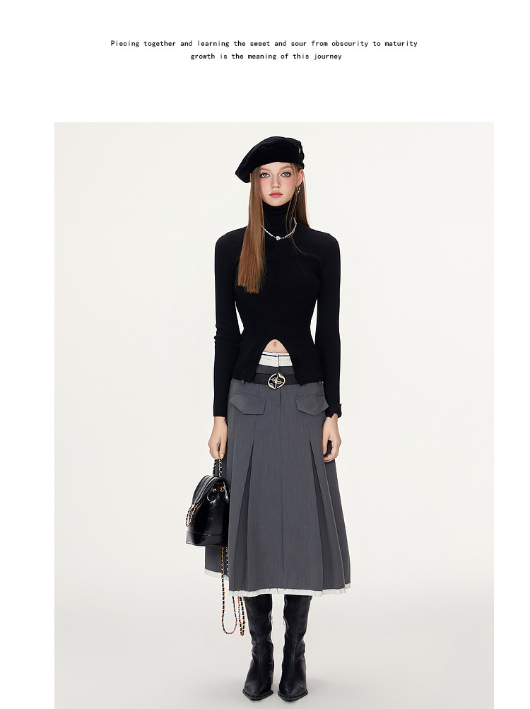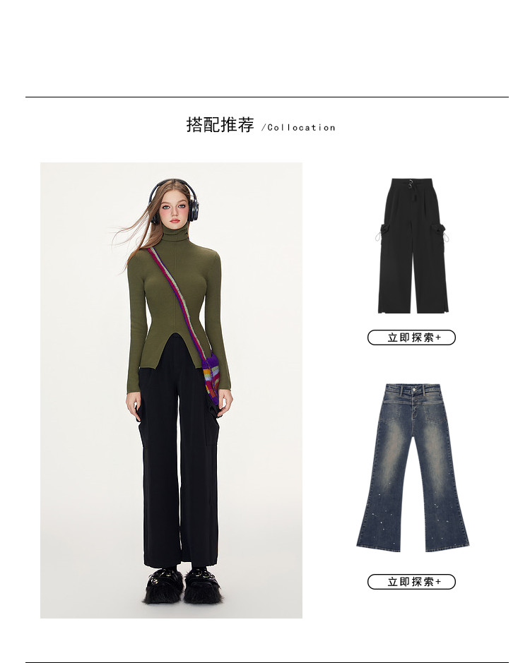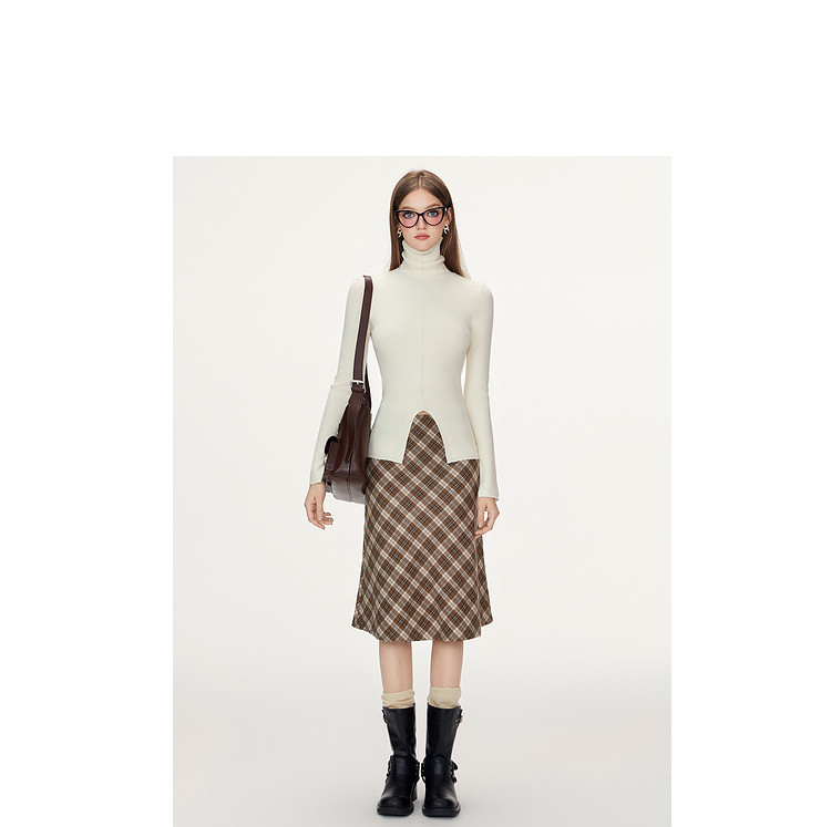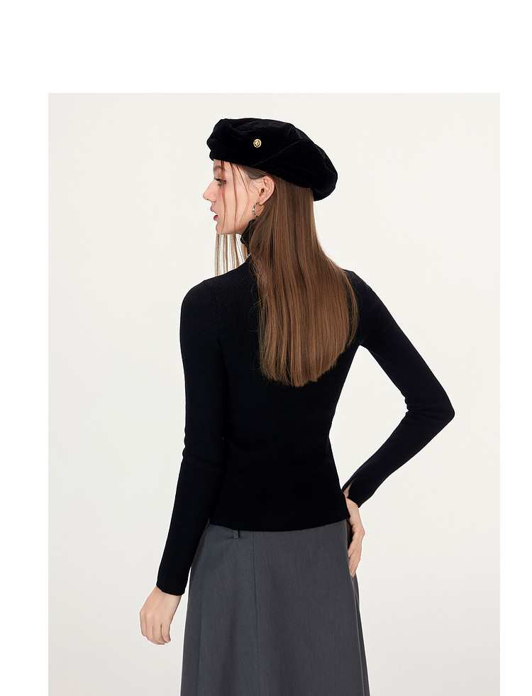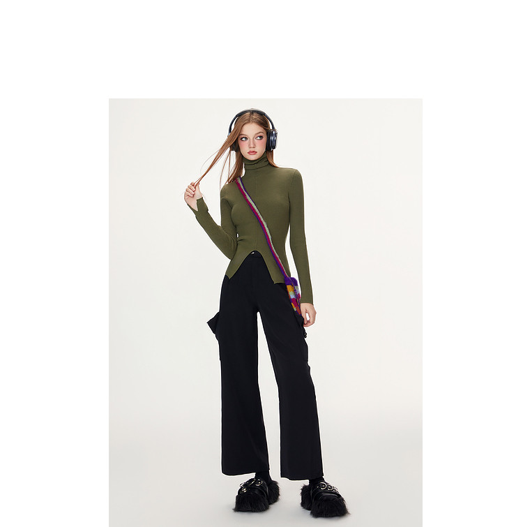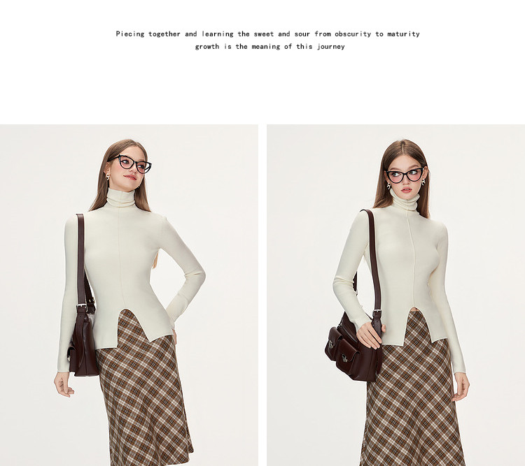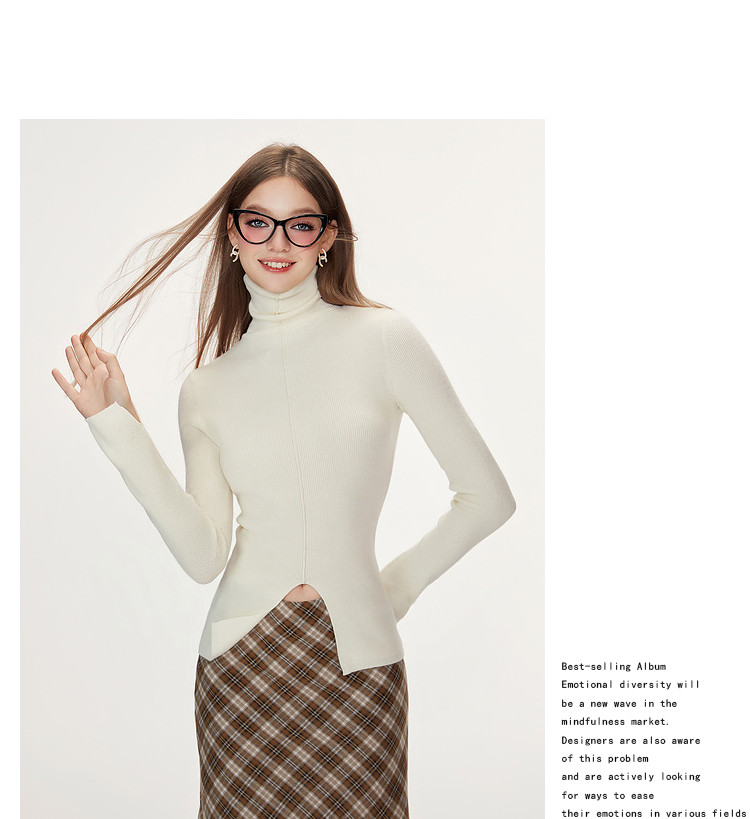 商品名称:【特卖福利】高领开叉下摆打底毛衣女修身优雅气质针织衫上衣 672916