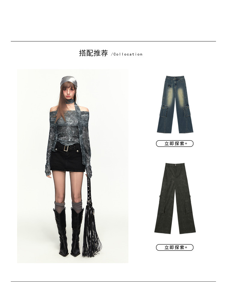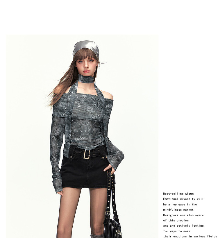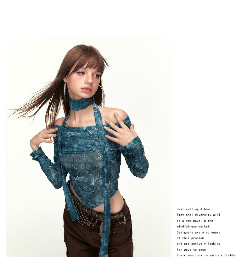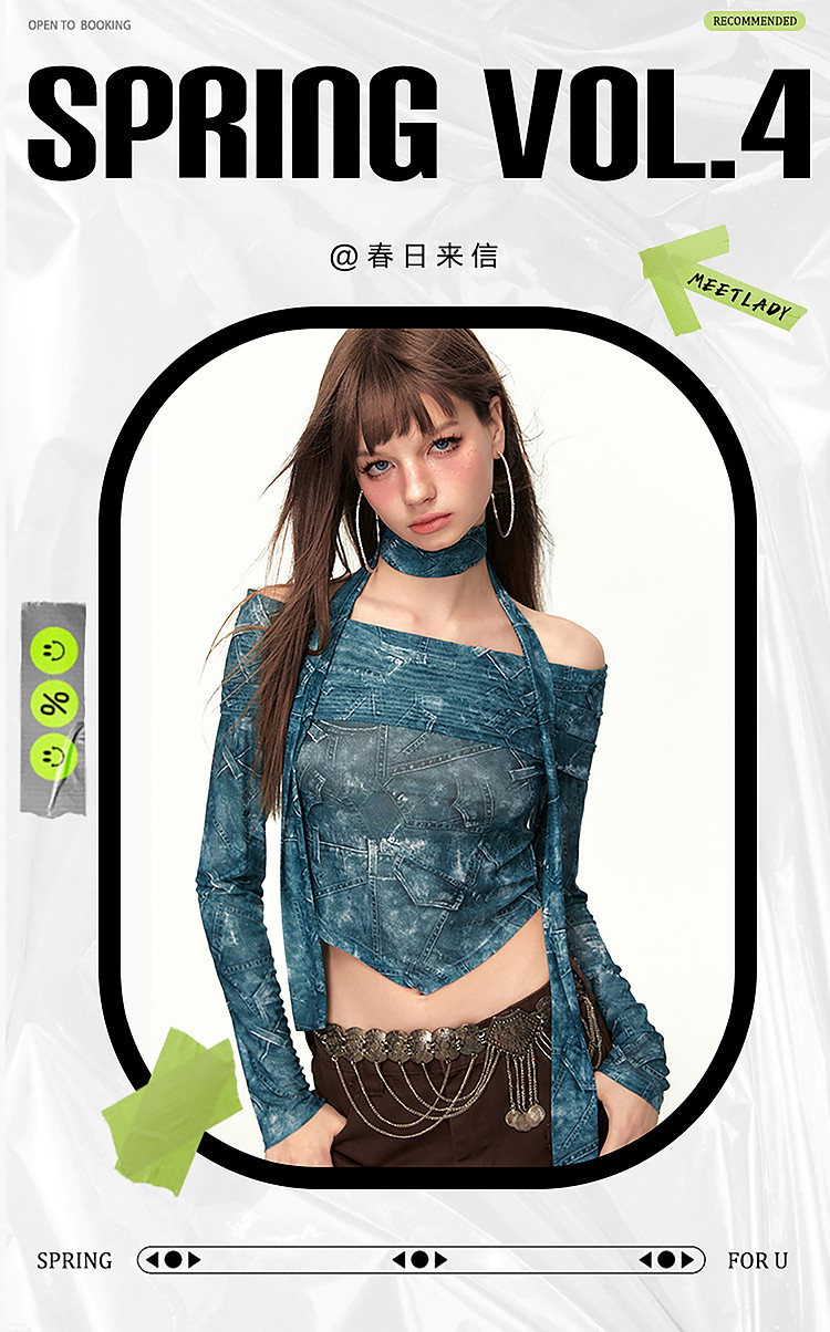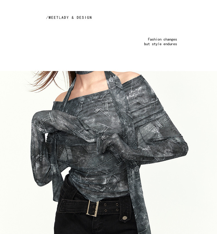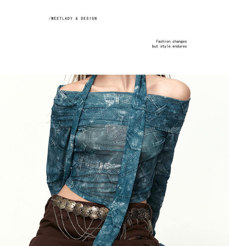 商品名称:【2024春季】甜酷风印花不规则长袖T恤女一字肩修身打底上衣 284180