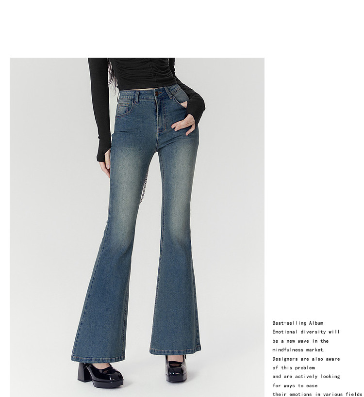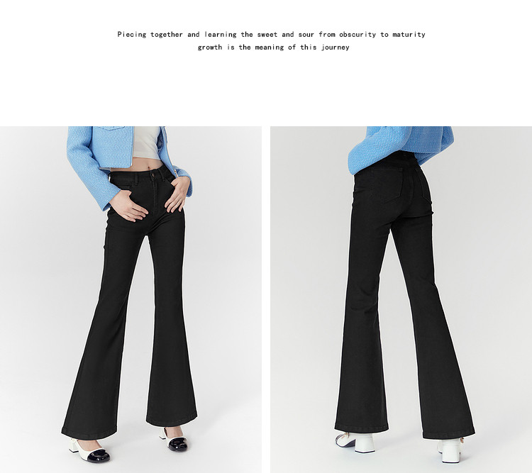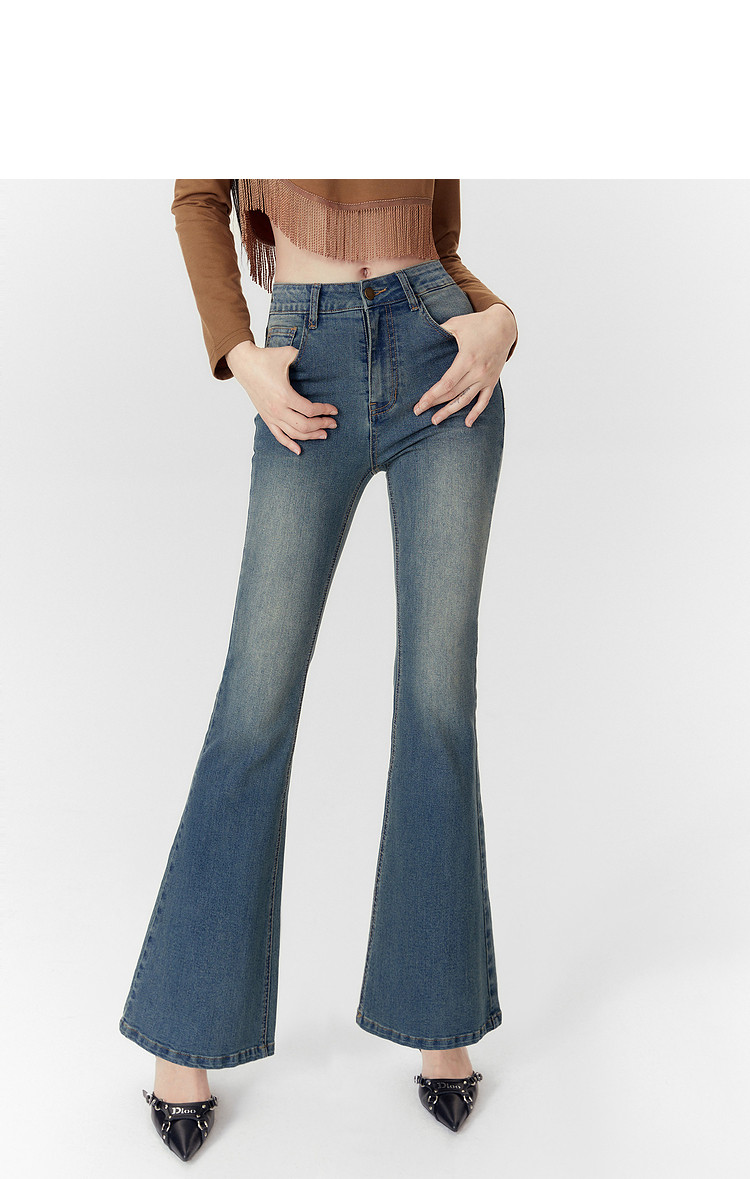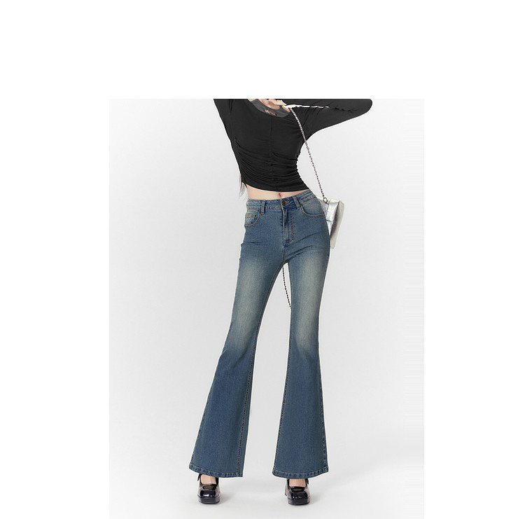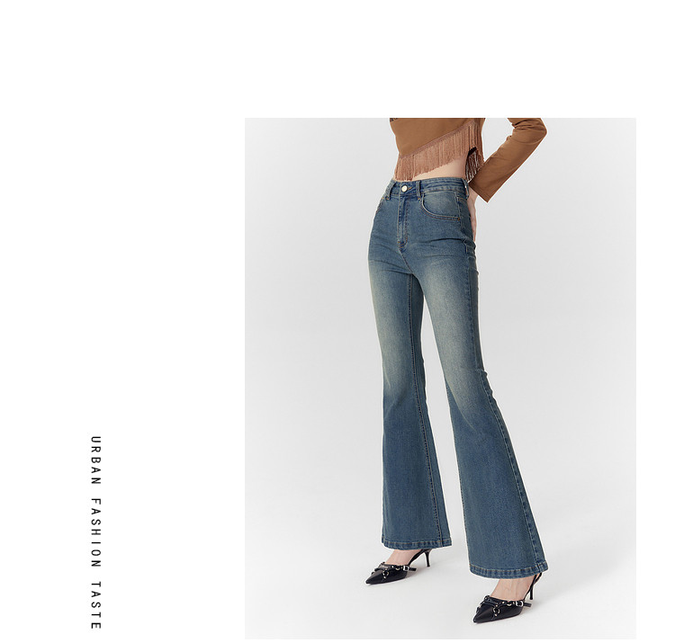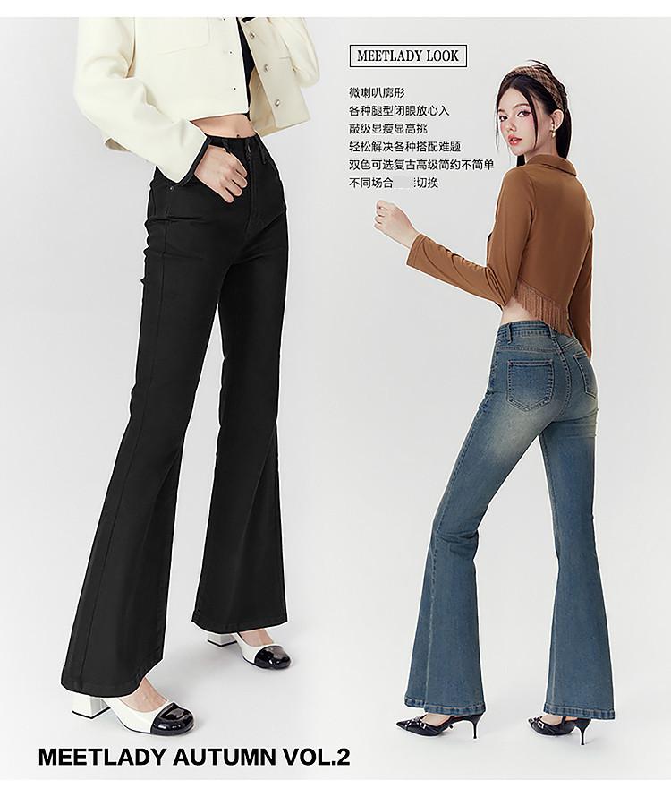 商品名称:春秋高腰显瘦微喇复古牛仔长裤女小个子喇叭裤 188628