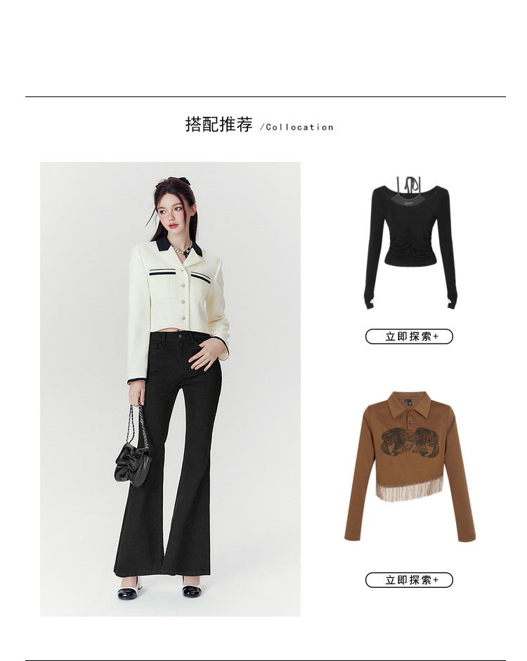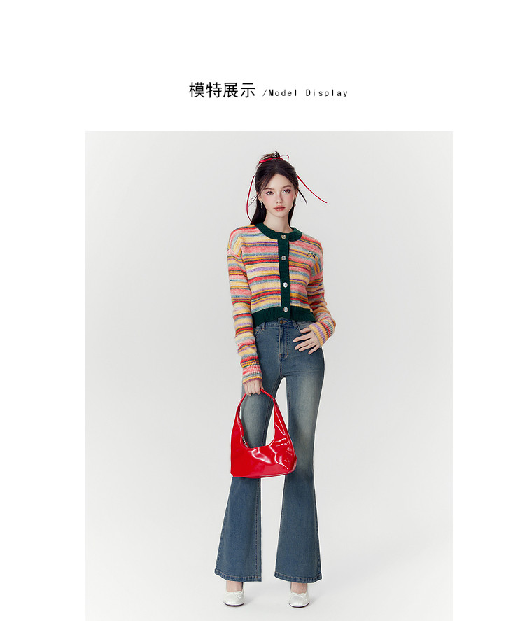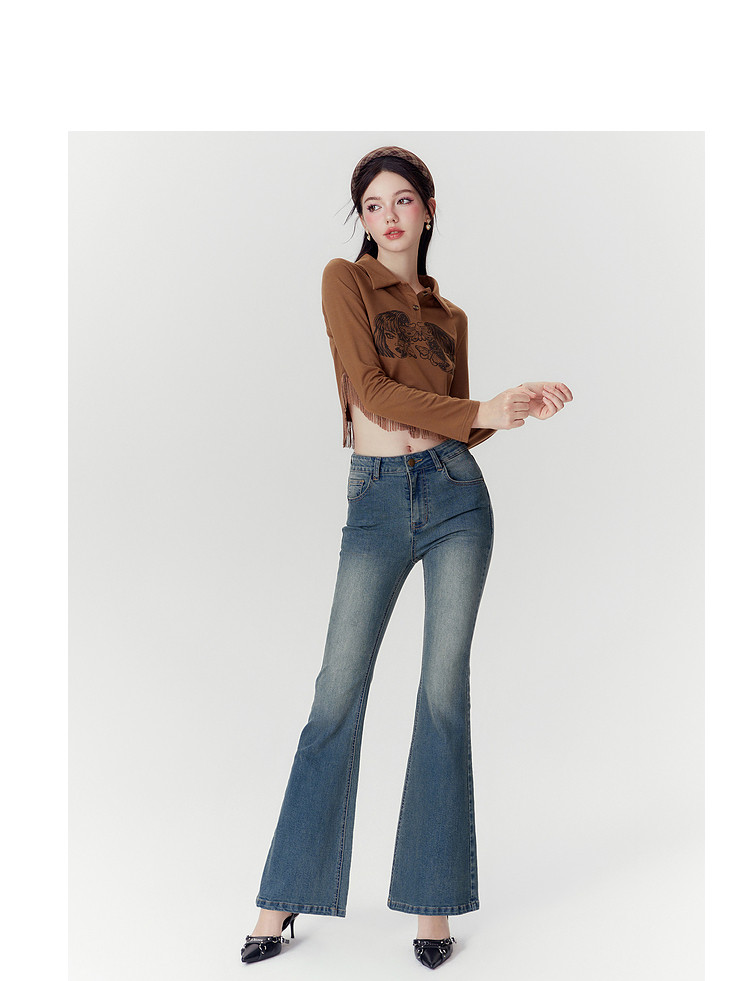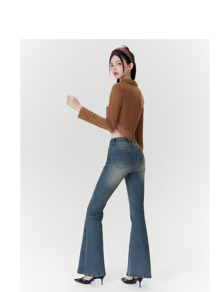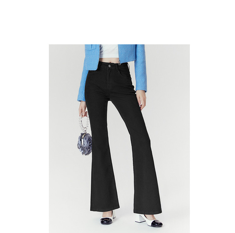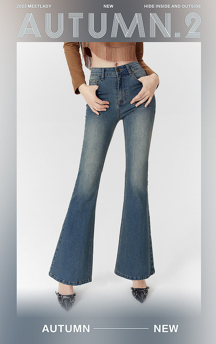 商品名称:春秋高腰显瘦微喇复古牛仔长裤女小个子喇叭裤 188628