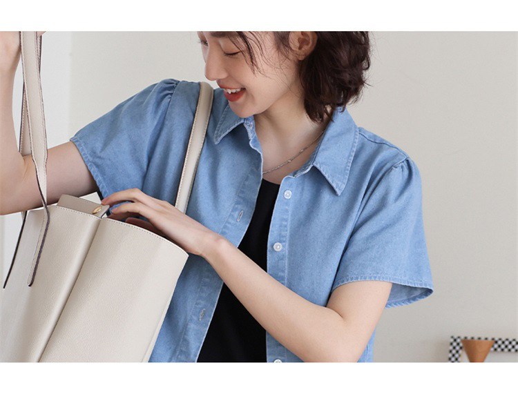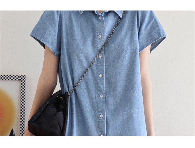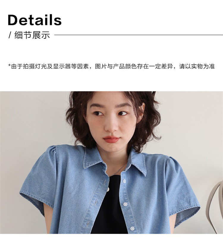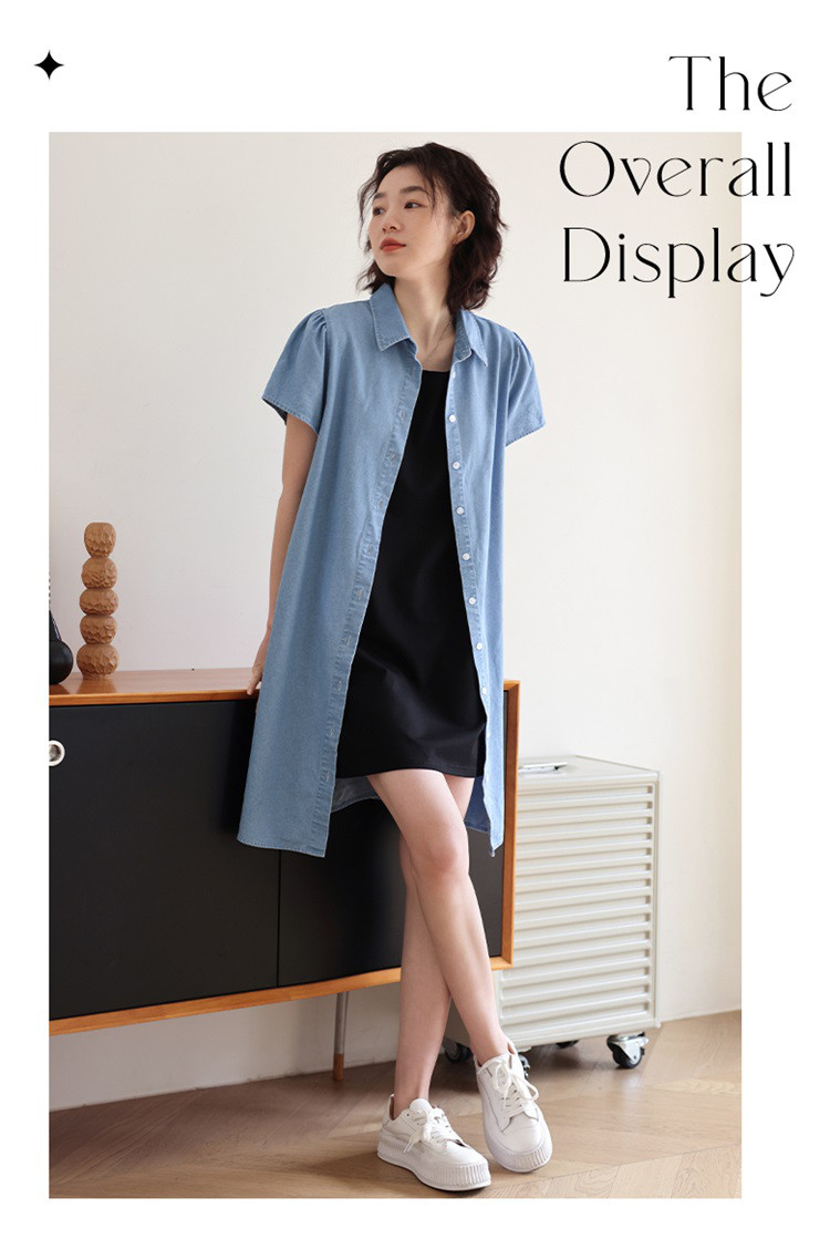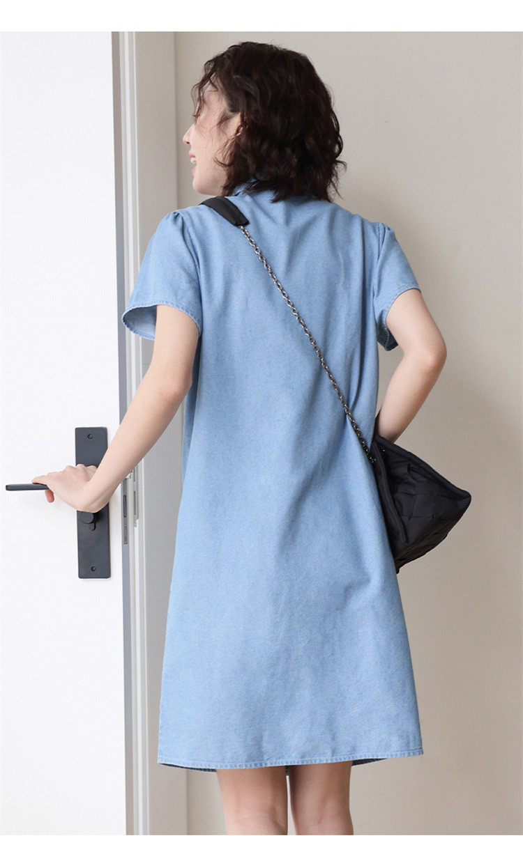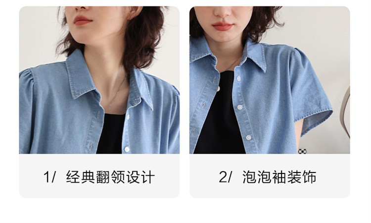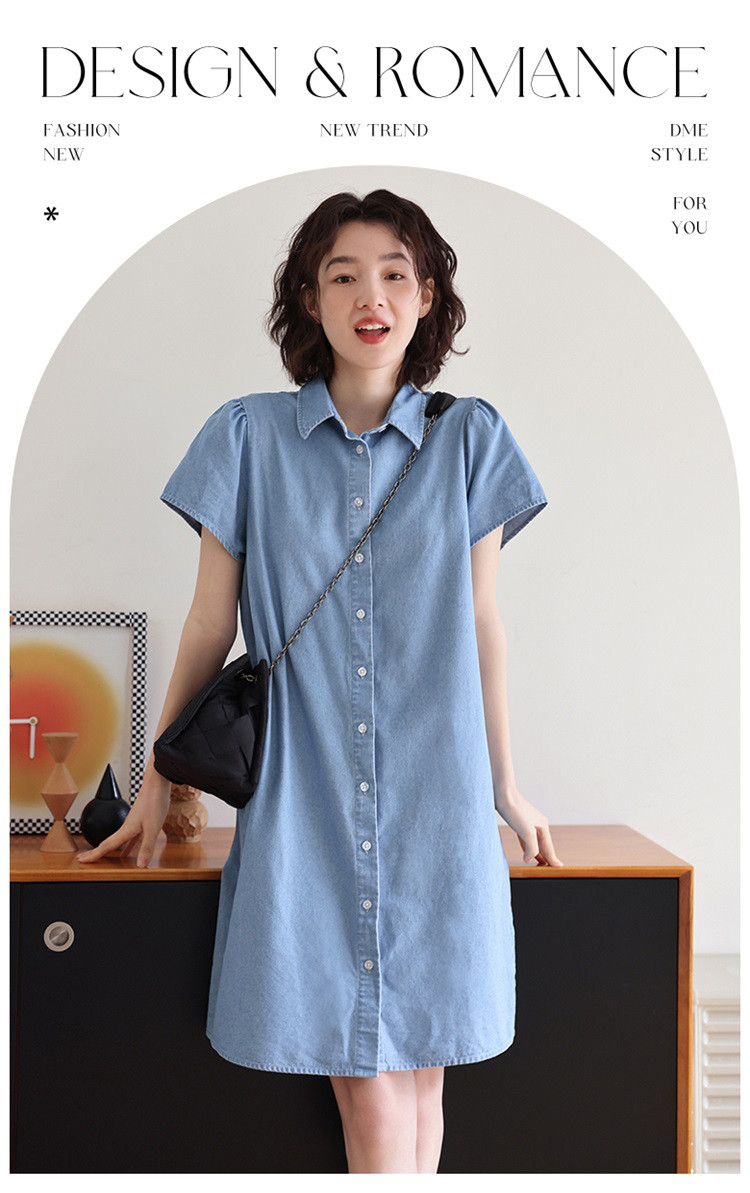 商品名称:【泡泡袖牛仔裙】夏款休闲气质单排扣衬衫式牛仔连衣裙 542722