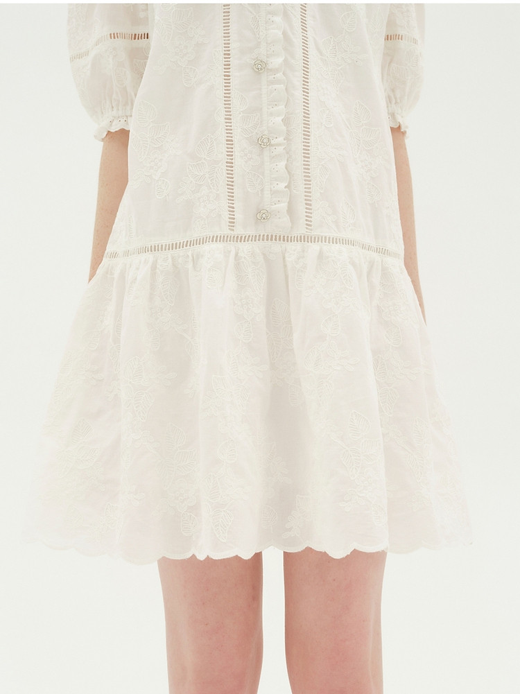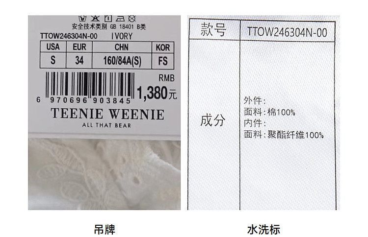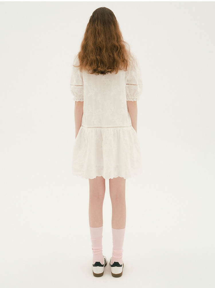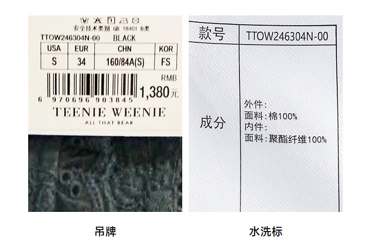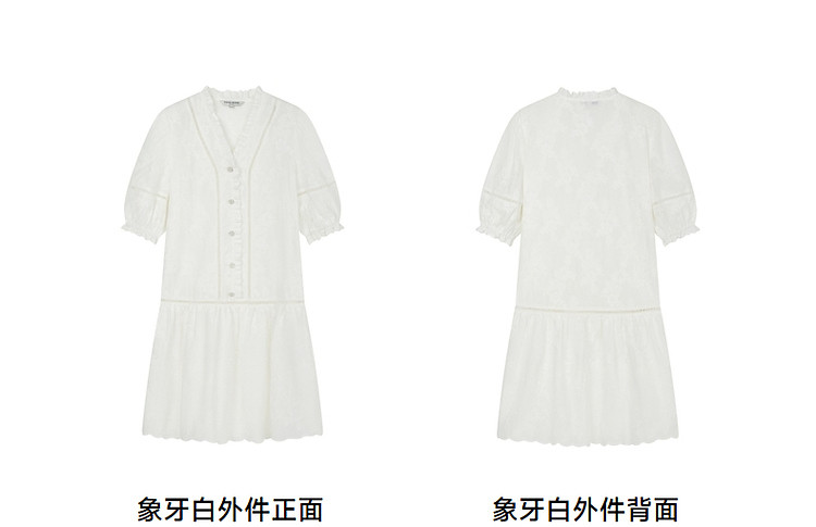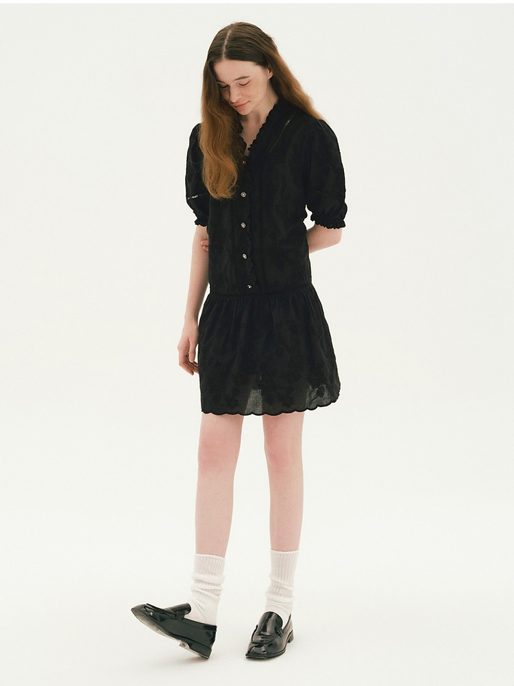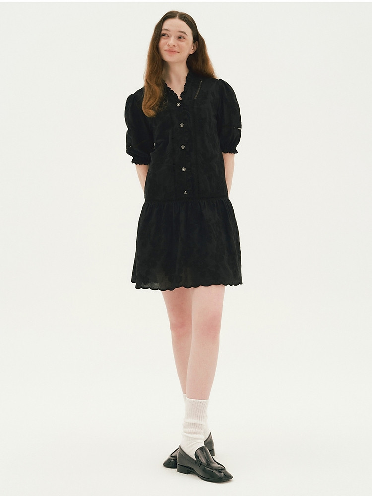 商品名称:小熊设计感镂空花边宽松灯笼袖连衣裙黑色女 587649