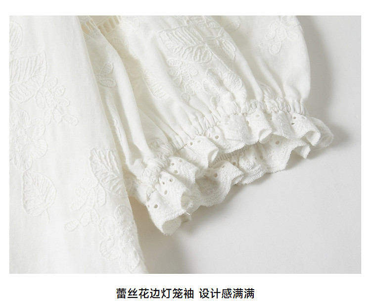 小熊设计感镂空花边宽松灯笼袖连衣裙黑色女 587649