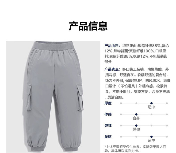 商品名称:Gap男幼童春秋款多口袋加绒保暖工装长裤836612童装束脚裤 962522